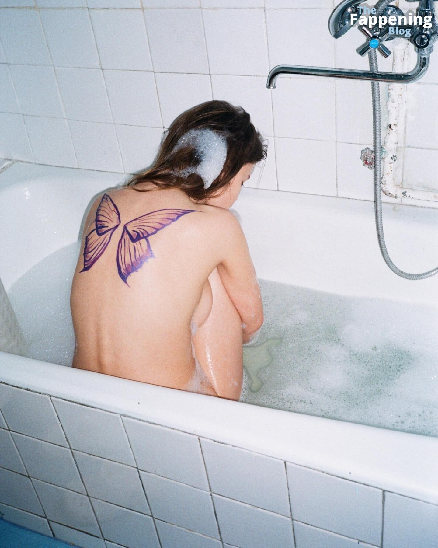 Linda mulher peluda com buceta que parece bastante gostosa, mesmo com aquela horrível tatuagem de borboleta nas costas. Hmmm, delicioso...