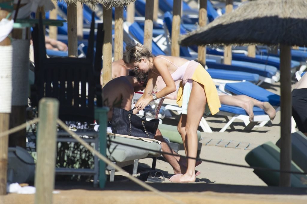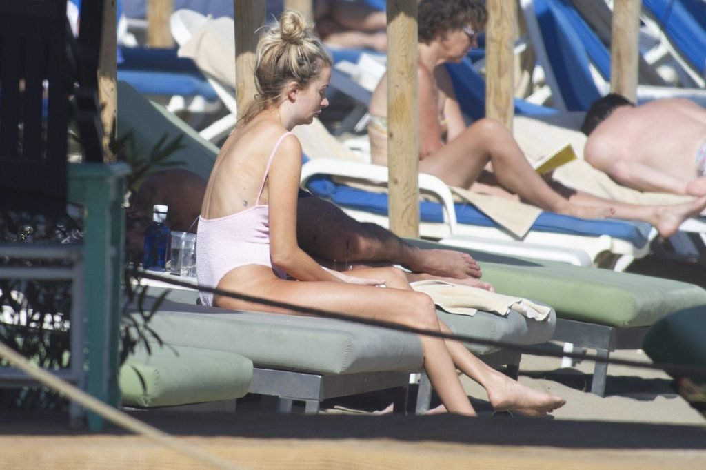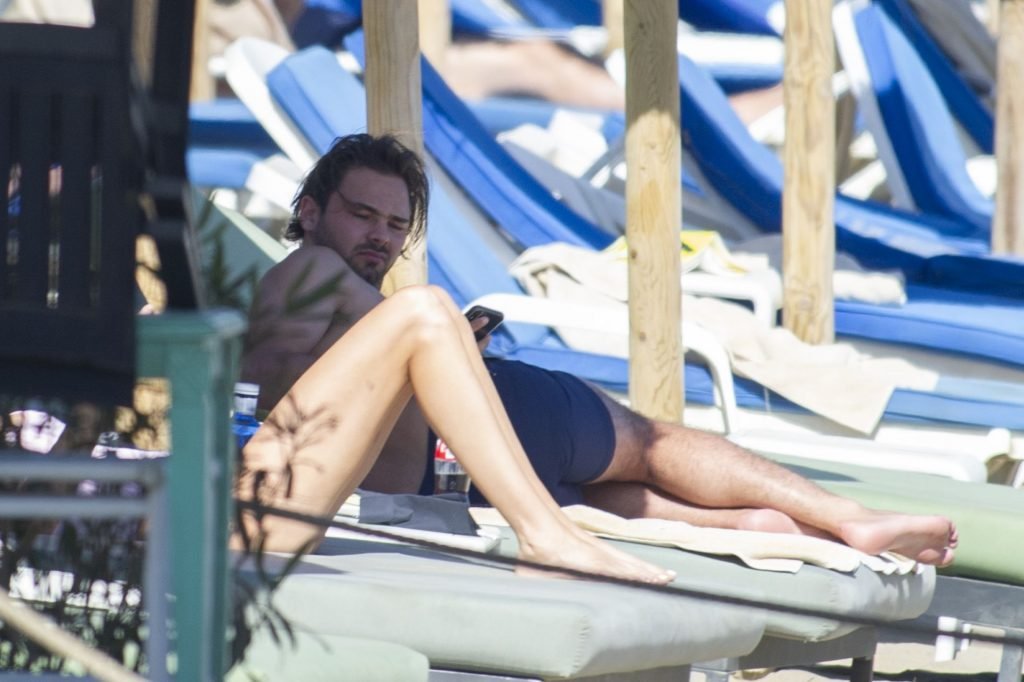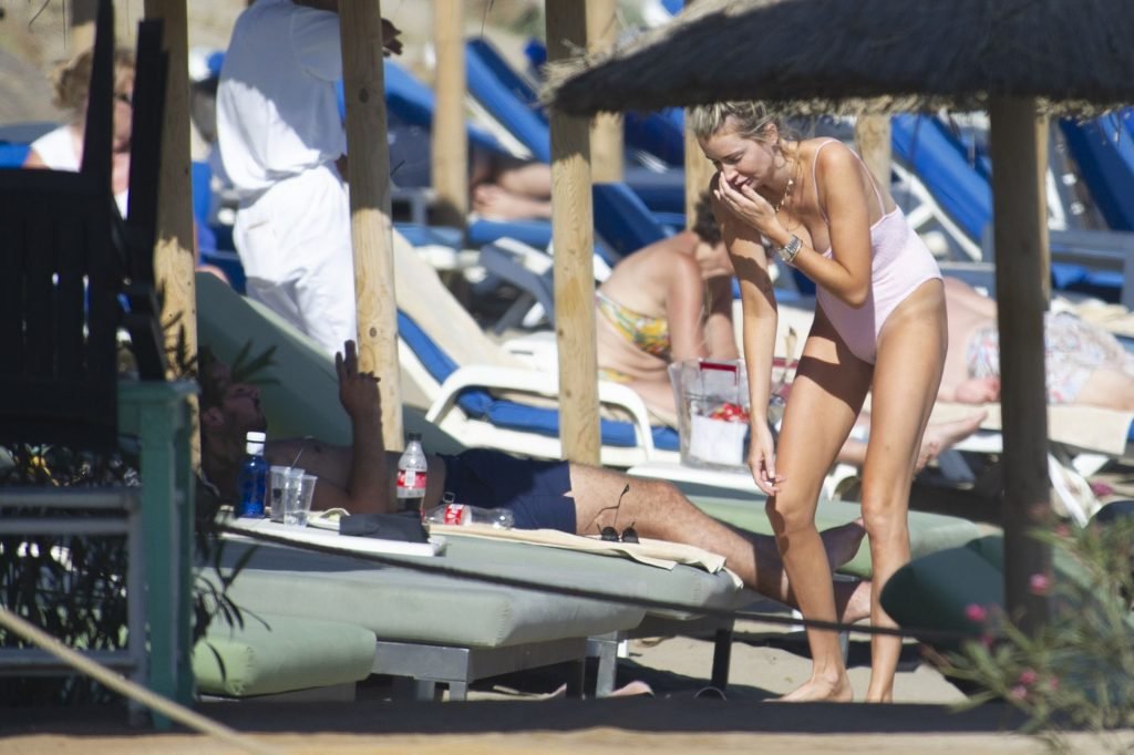 A estrela inglesa de reality show Olivia Attwood e o namorado jogador de futebol Bradley Dack são vistos em uma praia em Marbella, 10/06/2019.