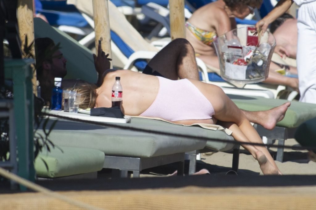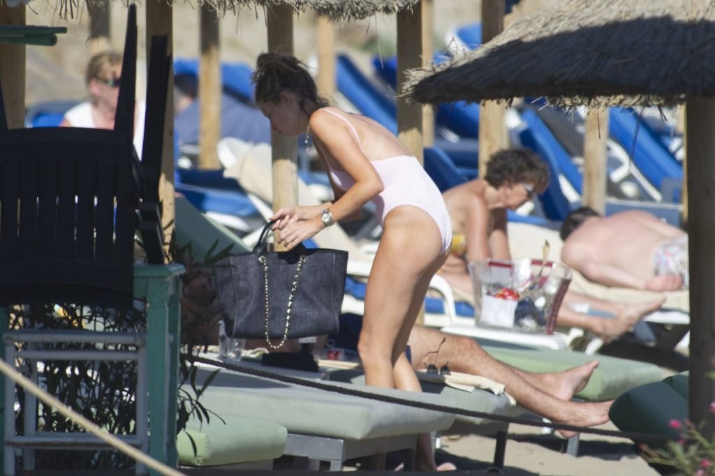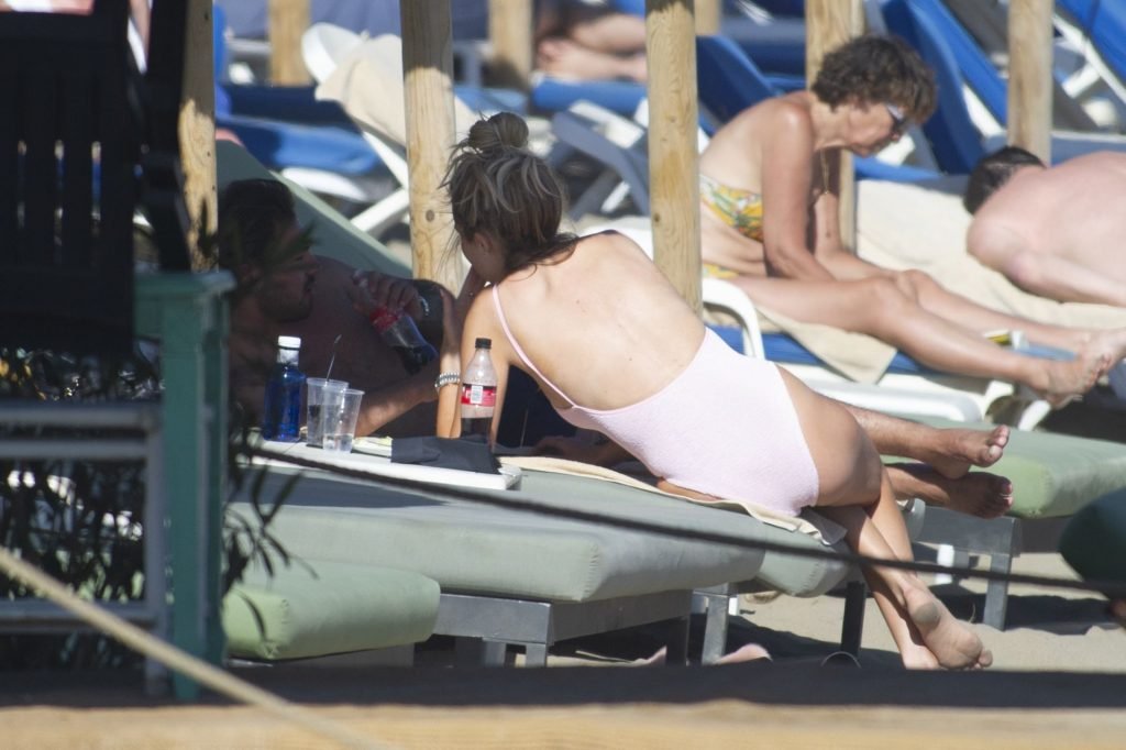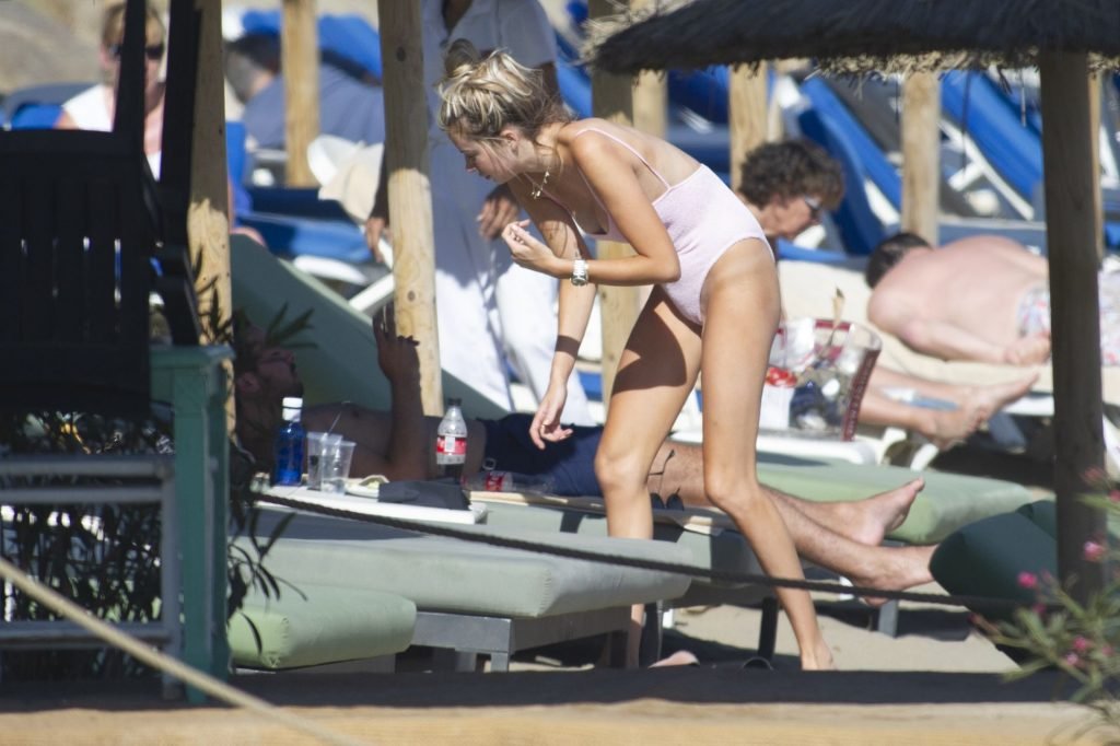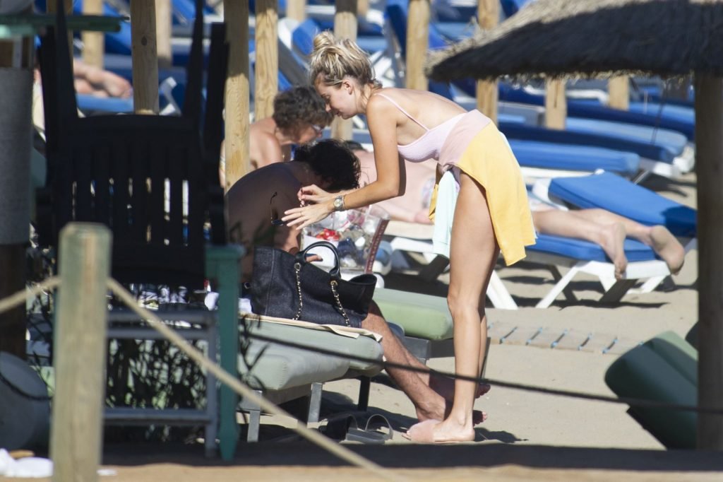 A estrela inglesa de reality show Olivia Attwood e o namorado jogador de futebol Bradley Dack são vistos em uma praia em Marbella, 10/06/2019.