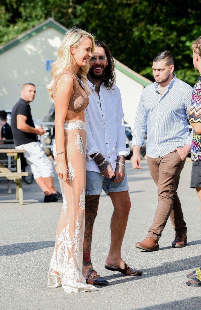 Olivia Attwood e o elenco de The Only Way is Essex (TOWIE) começam a filmar a série 25 com uma festa na piscina em Essex, 22/08/2019.