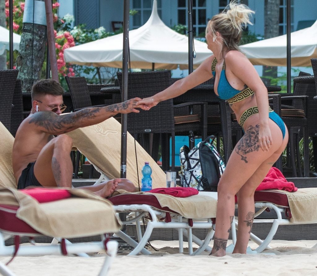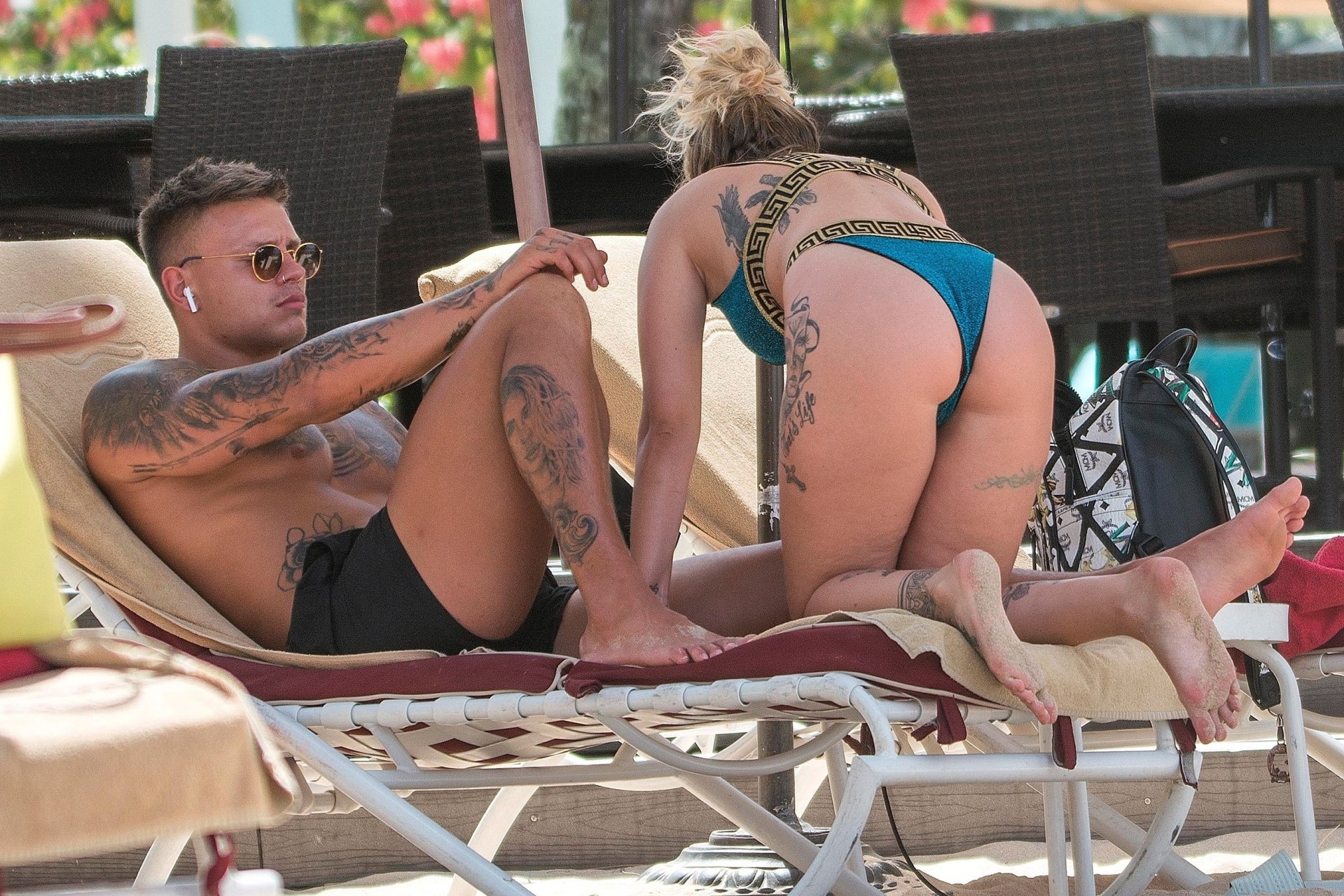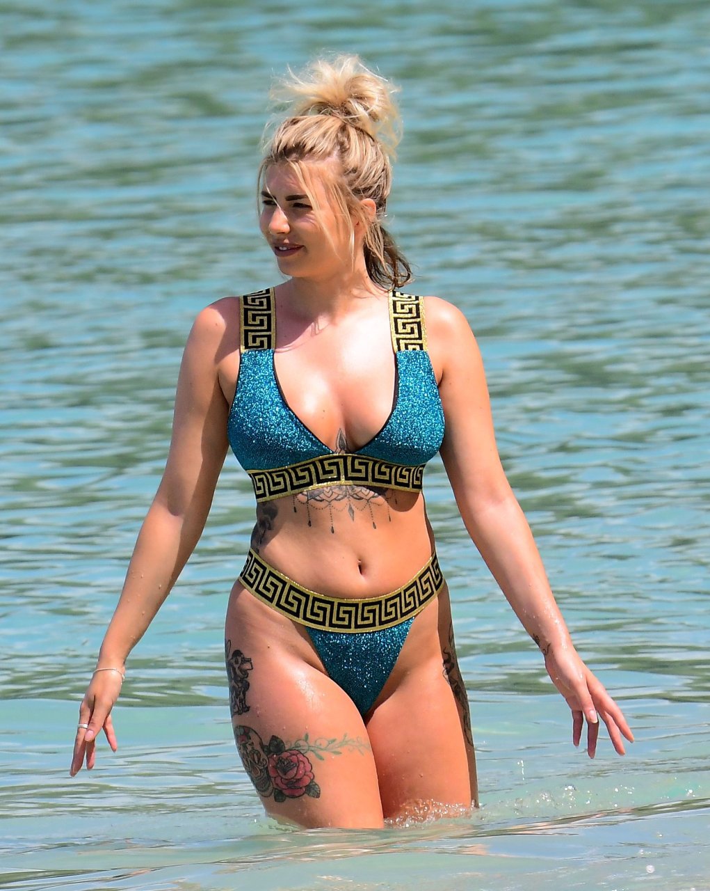 A estrela de Love Island e modelo Olivia Buckland passou um tempo com seu namorado Alex Bowen na praia em Barbados, 19/03/2018. Olivia Buckland exibiu seu grande bumbum em um biquíni azul com ornamento. Ela está trabalhando para os paparazzi.