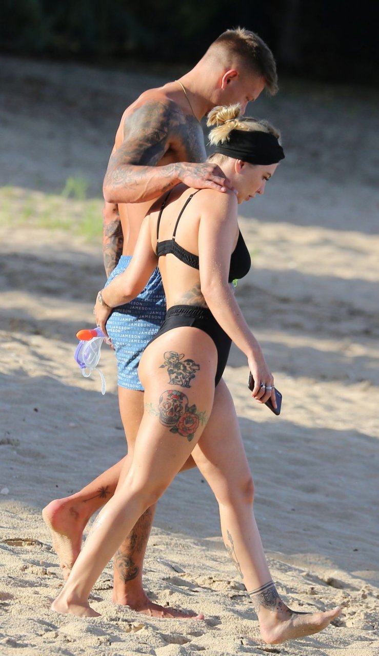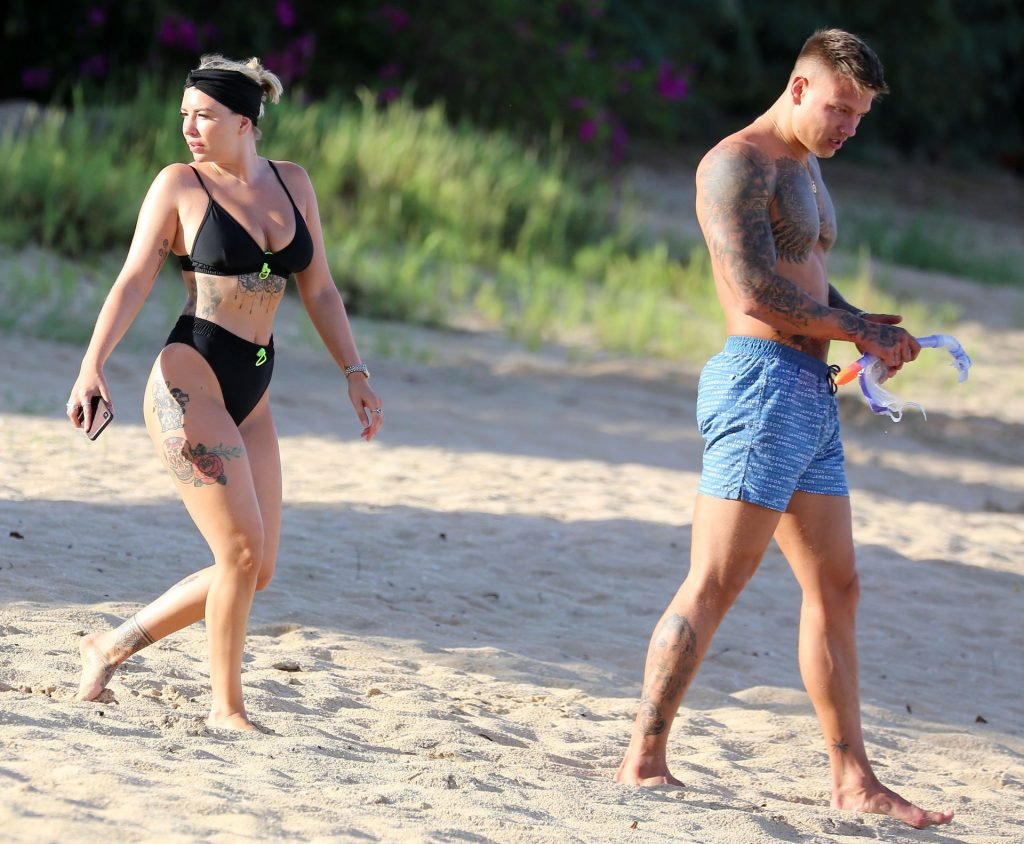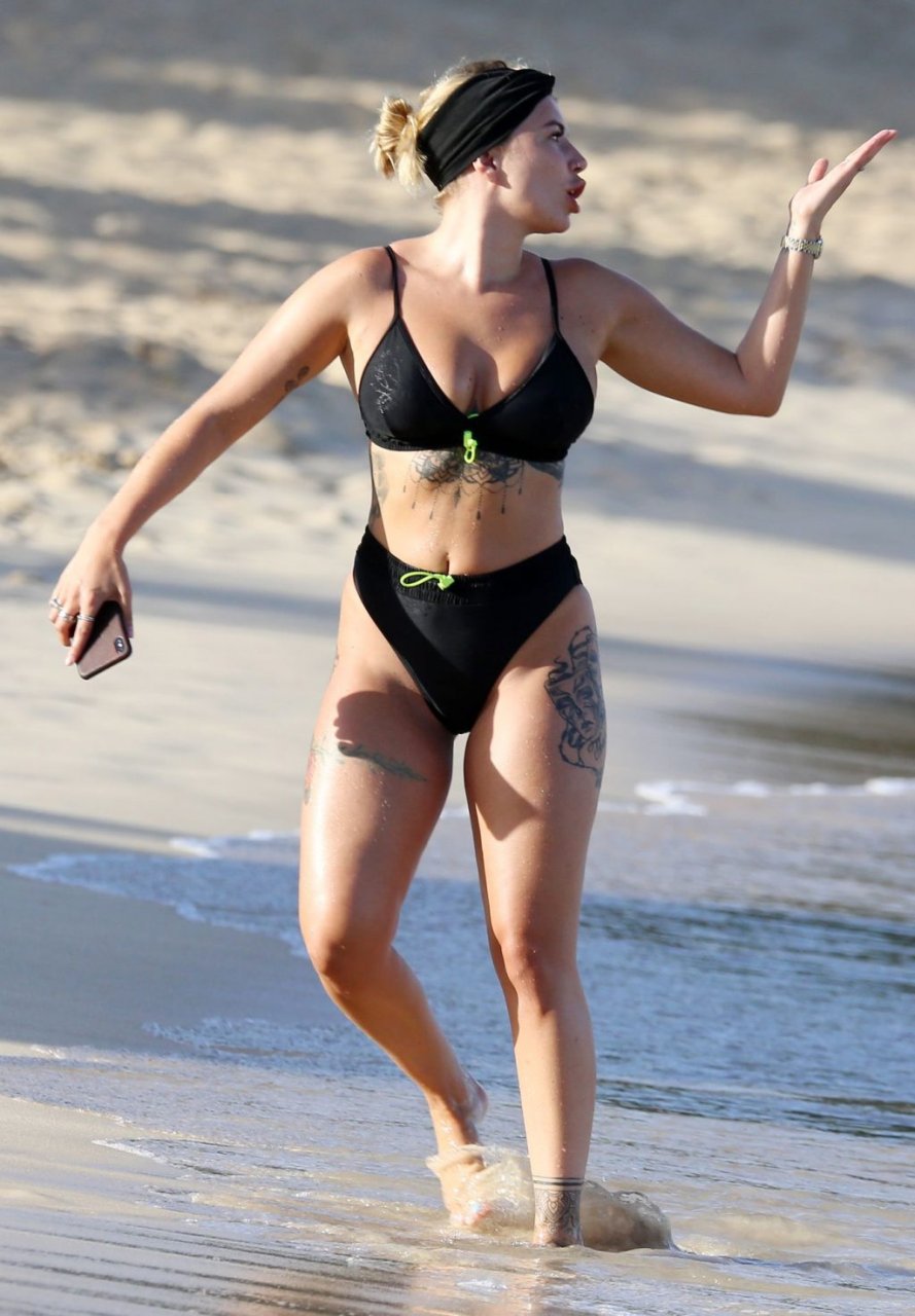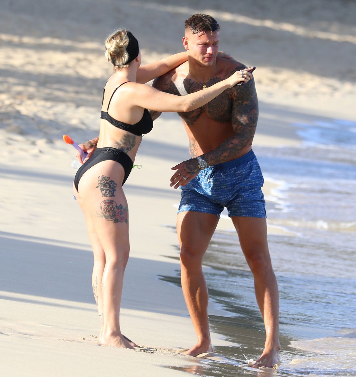 “Love Island” Olivia Buckland parece fenomenal em um biquíni preto enquanto aproveita a praia com o marido Alex para assisti-lo fazer snorkeling em Barbados, 24/07/2019.