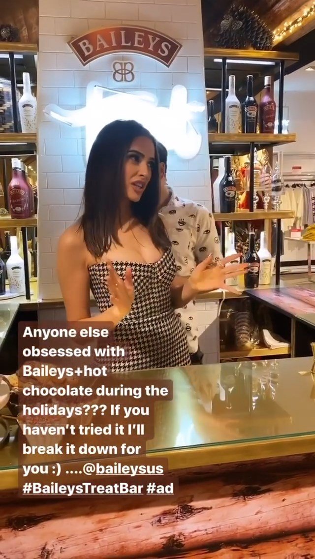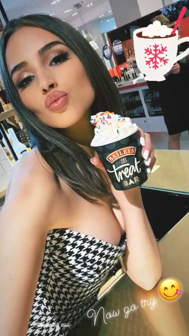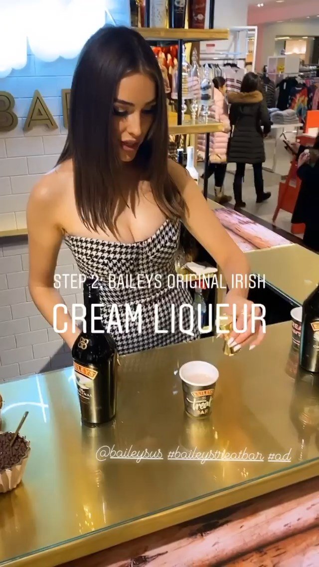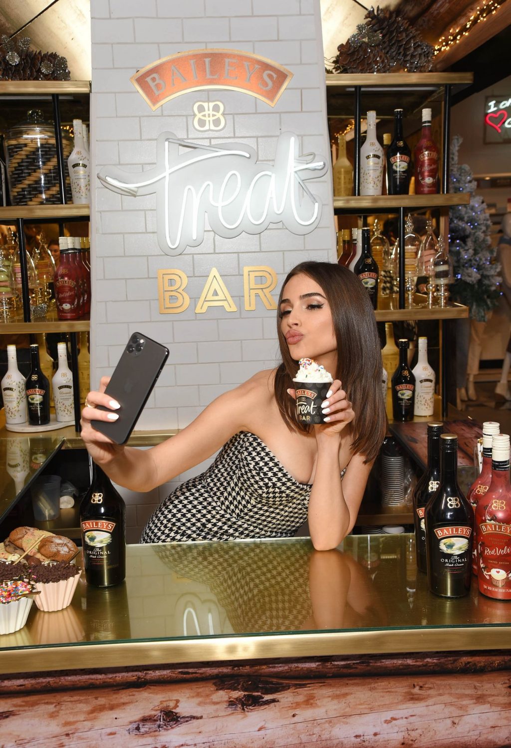 American model/actress Olivia Culpo mostrou seu decote no Baileys Treat Bar na Bloomingdale’s em Nova York, 17/12/2019. Ela fez uma propaganda de sucesso para este lugar.