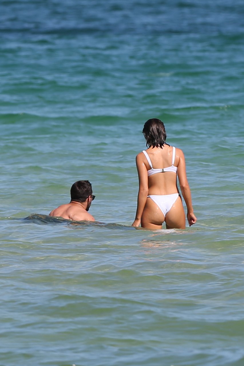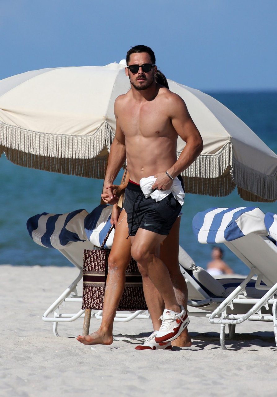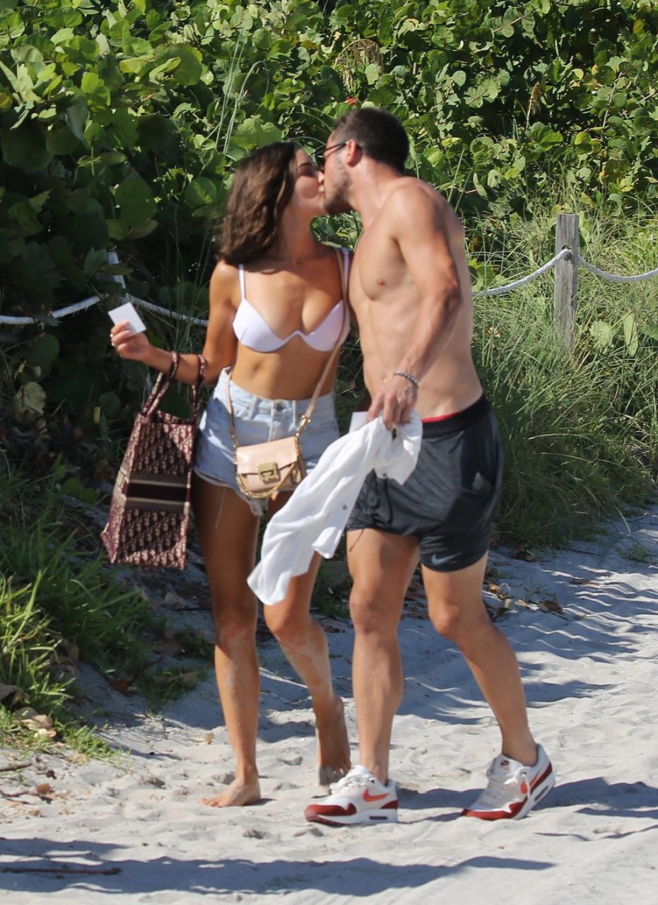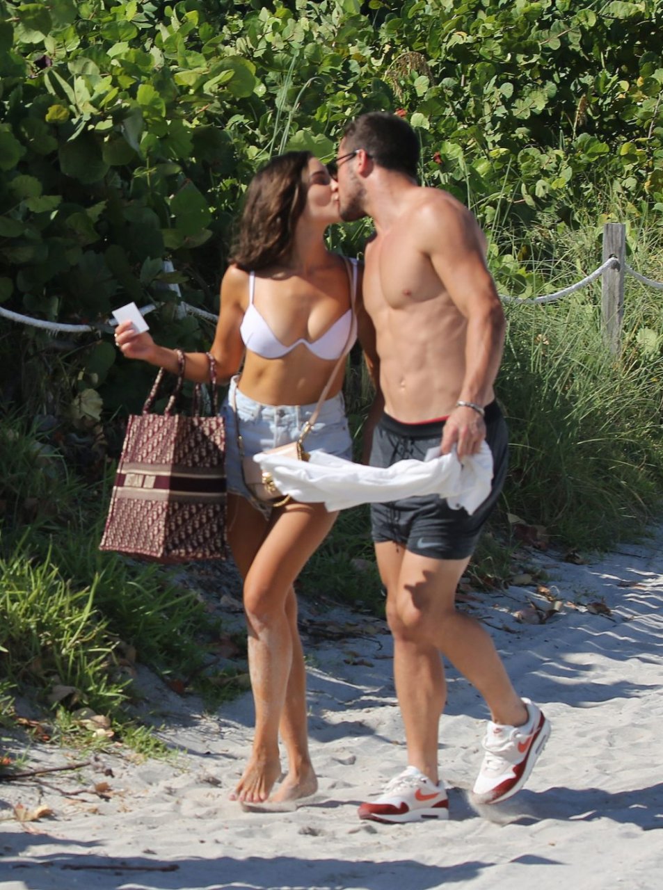 Modelo de biquíni Olivia Culpo e o jogador da NFL Danny Amendola estão claramente juntos novamente enquanto caminham de mãos dadas na praia em Miami, 25/09/2018.