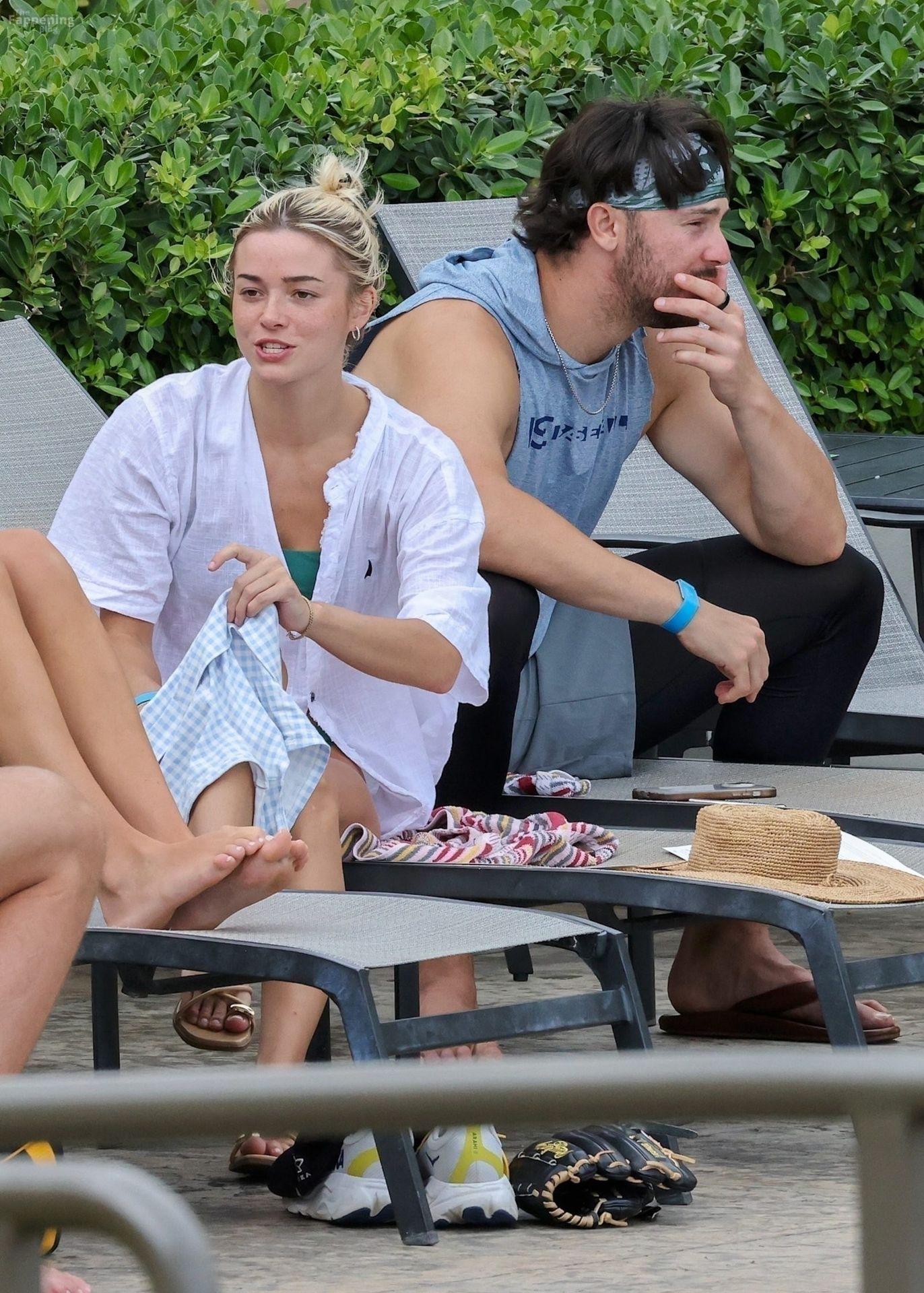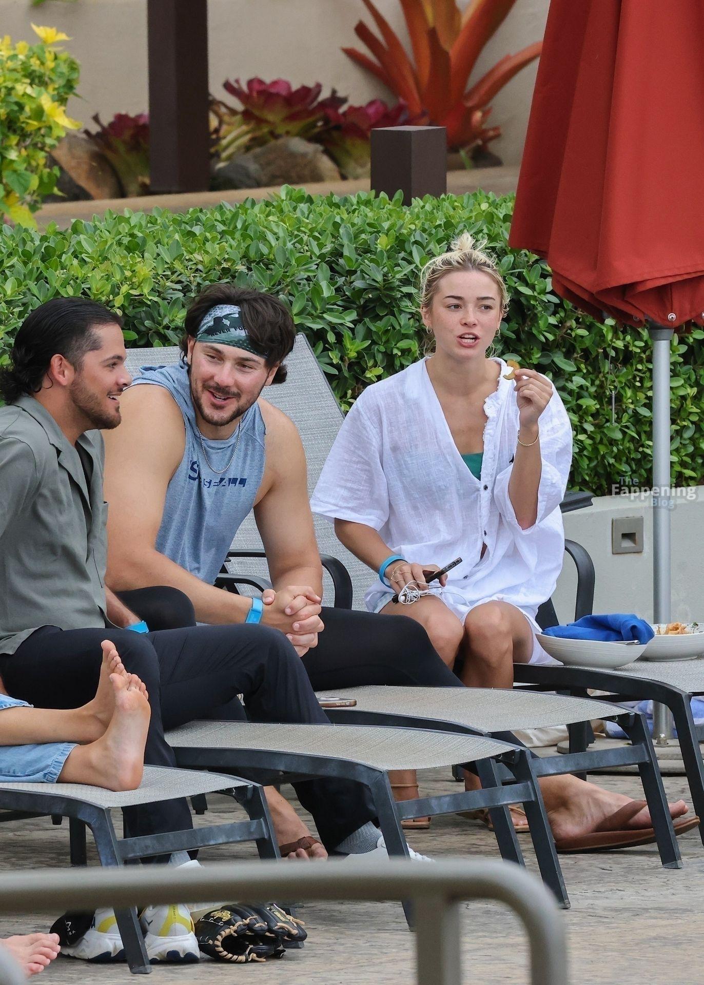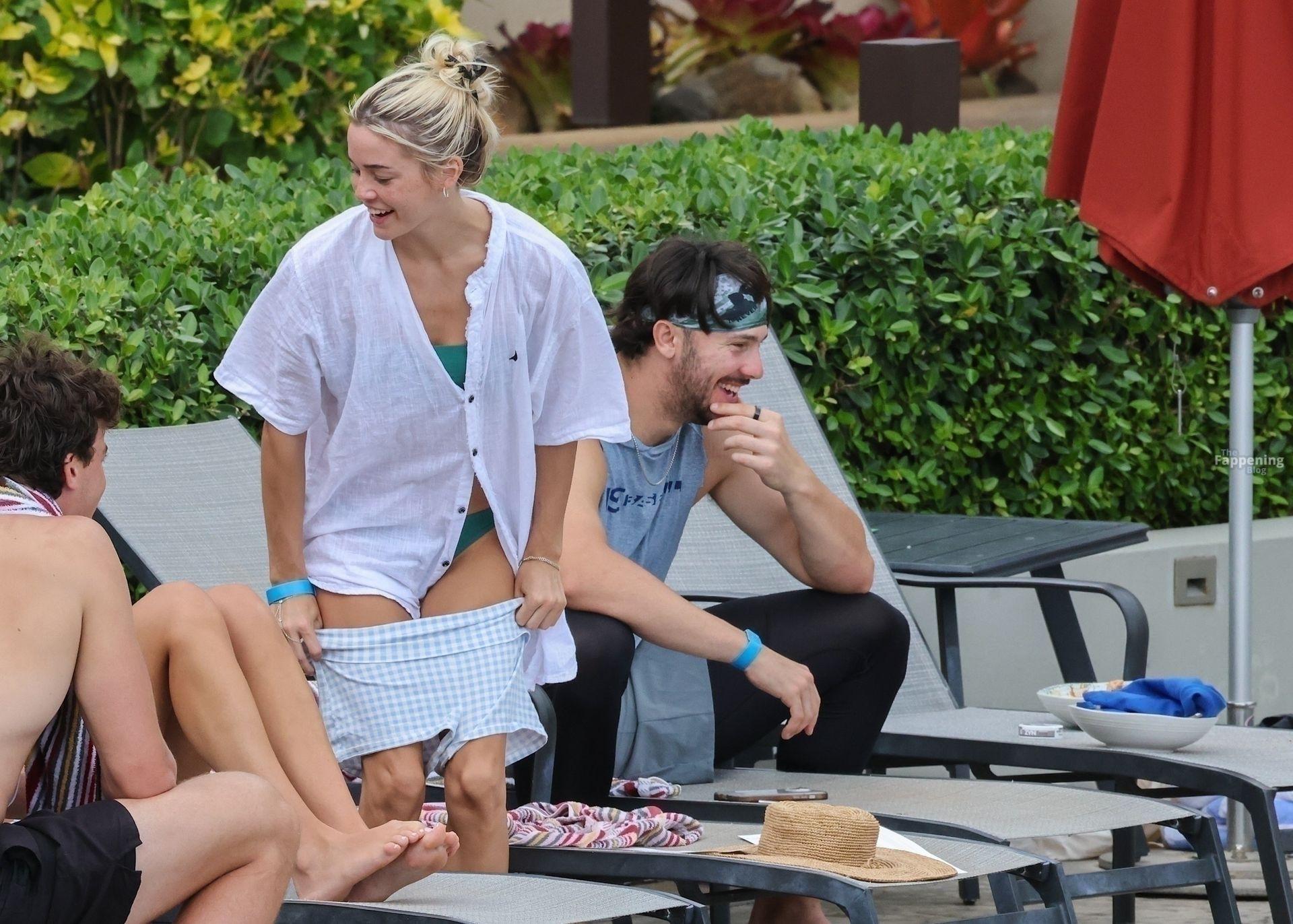 Olivia Dunne e seu namorado, o arremessador da MLB Paul Skenes, relaxam à beira da piscina em Kauai com amigos como o arremessador dos Pirates Jared Jones. A ex-ginasta da LSU de 23 anos arrasa com um biquíni verde e chapéu de palha, enquanto Paul mantém um visual casual com uma camiseta regata.