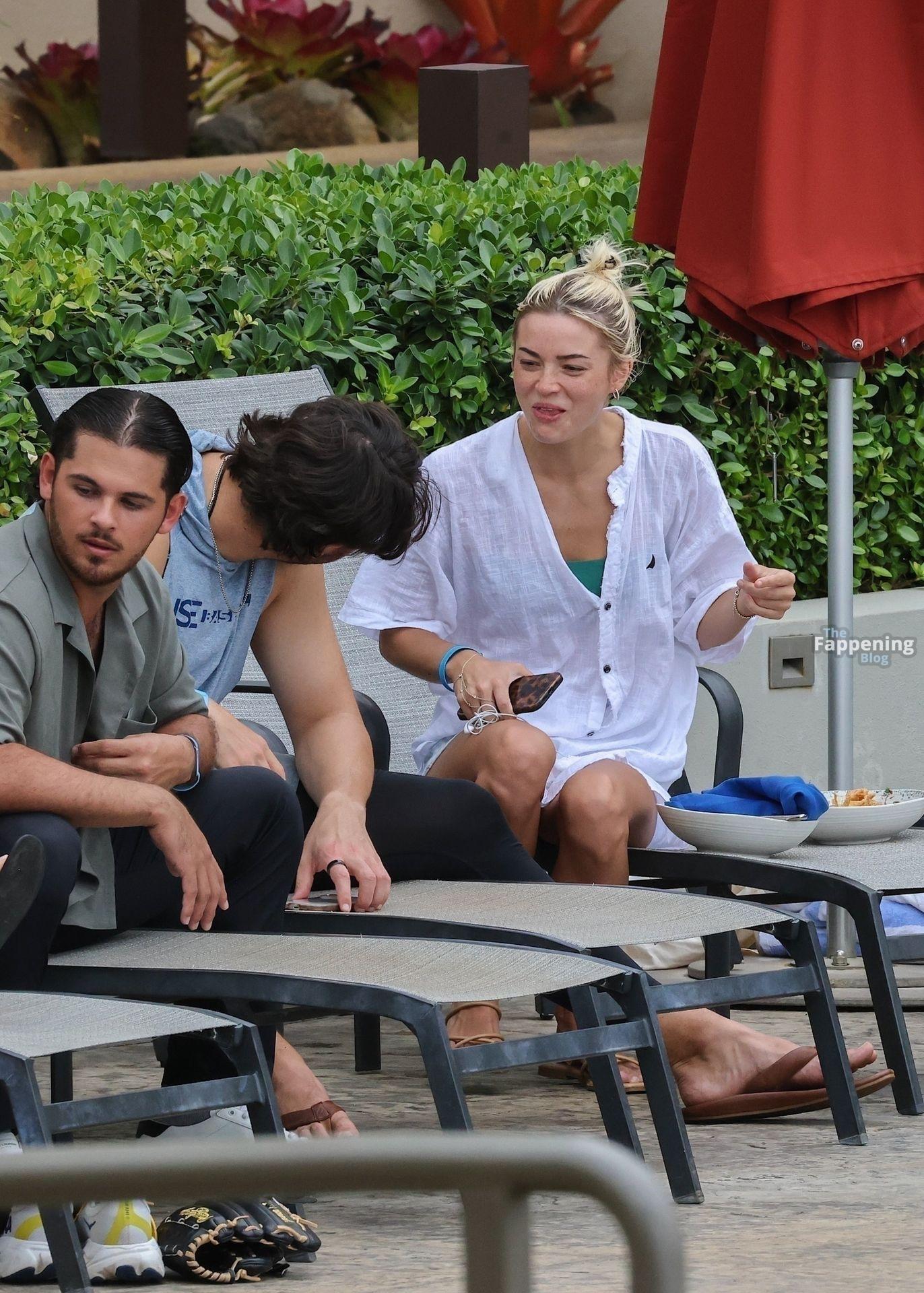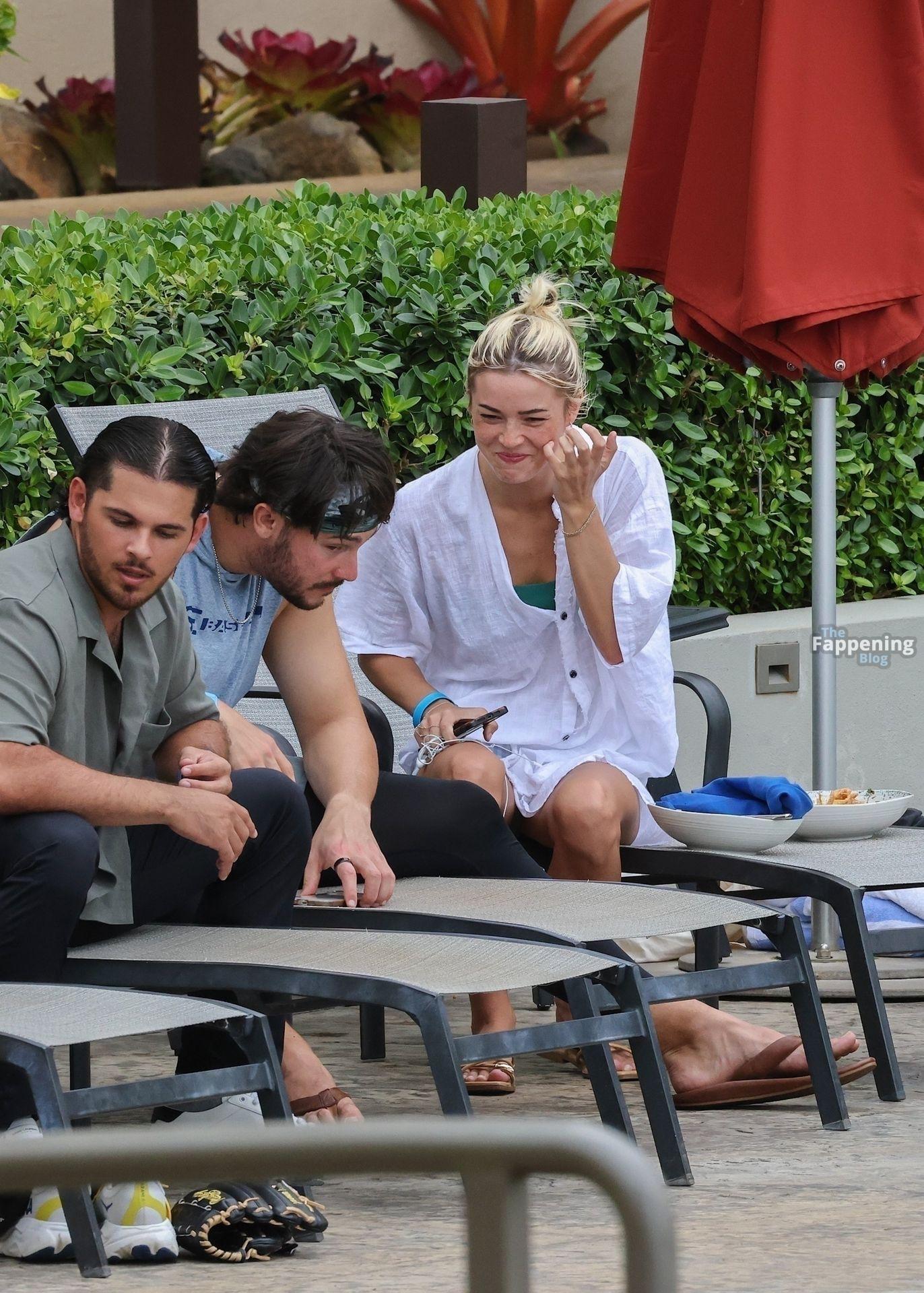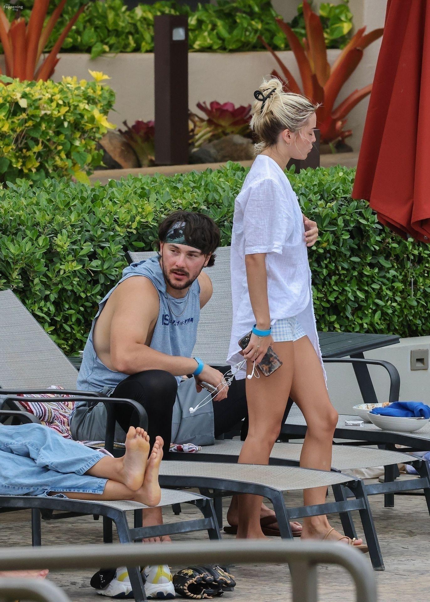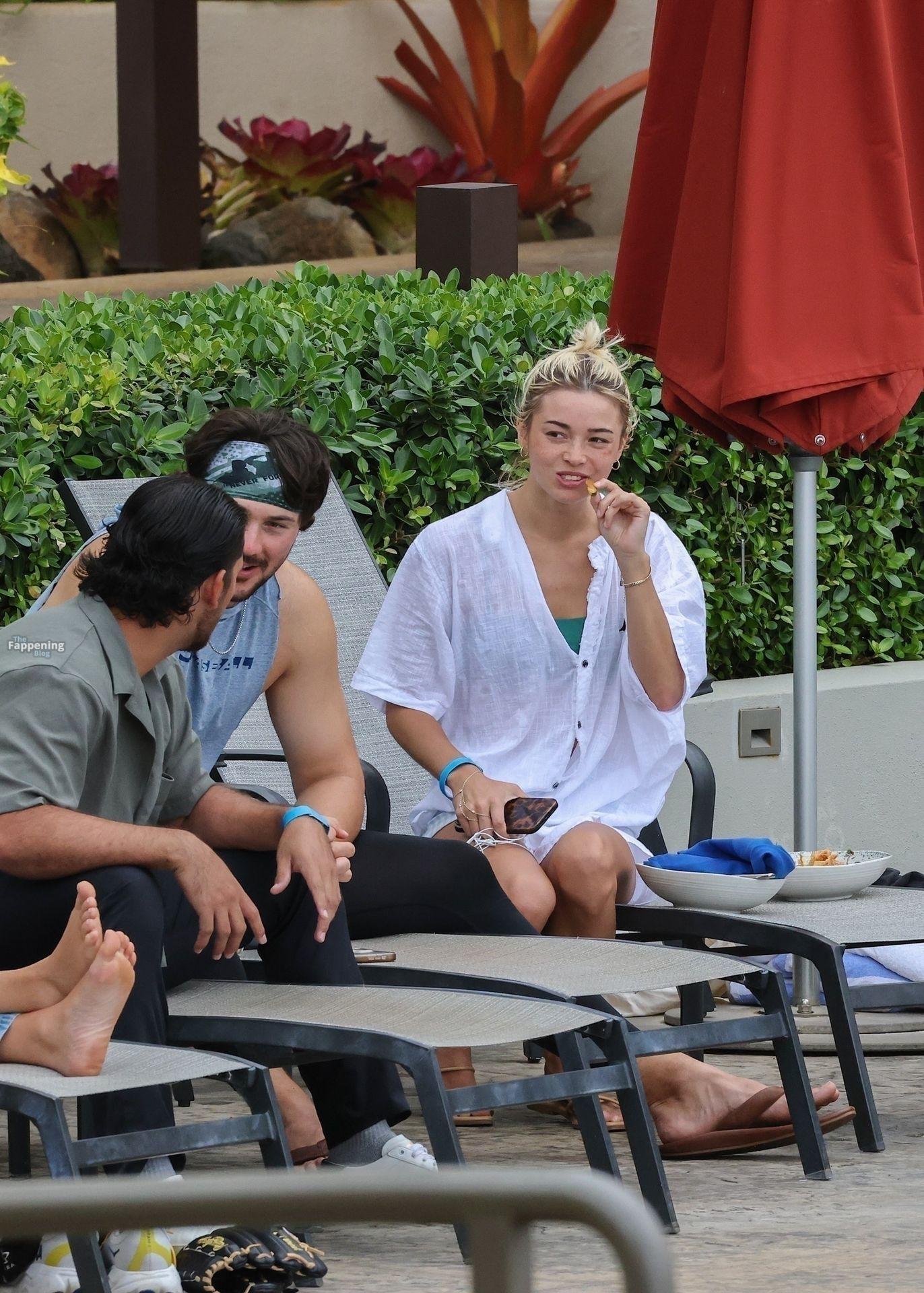 Olivia Dunne e seu namorado, o arremessador da MLB Paul Skenes, relaxam à beira da piscina em Kauai com amigos como o arremessador dos Pirates Jared Jones. A ex-ginasta da LSU de 23 anos arrasa com um biquíni verde e chapéu de palha, enquanto Paul mantém um visual casual com uma camiseta regata.