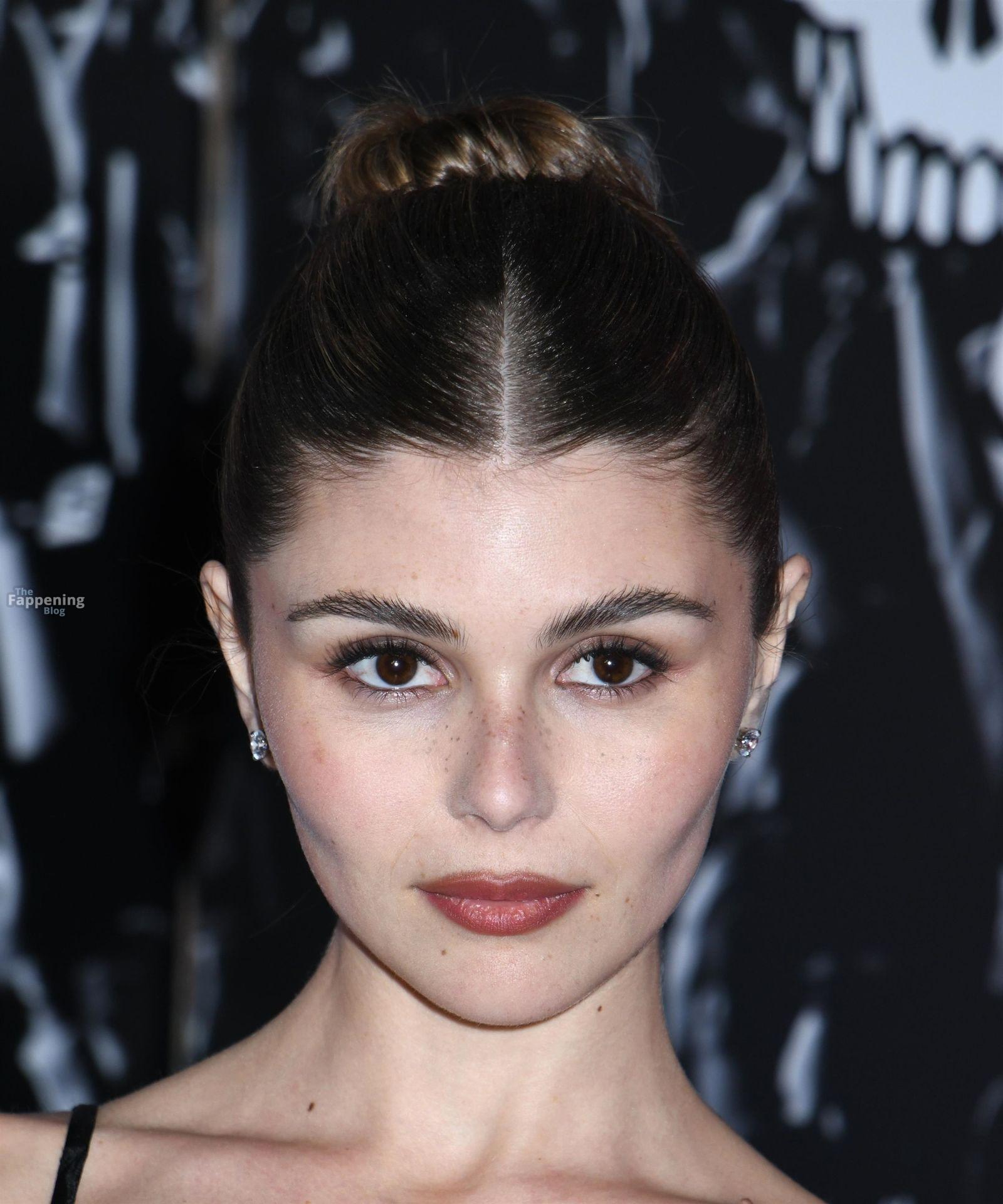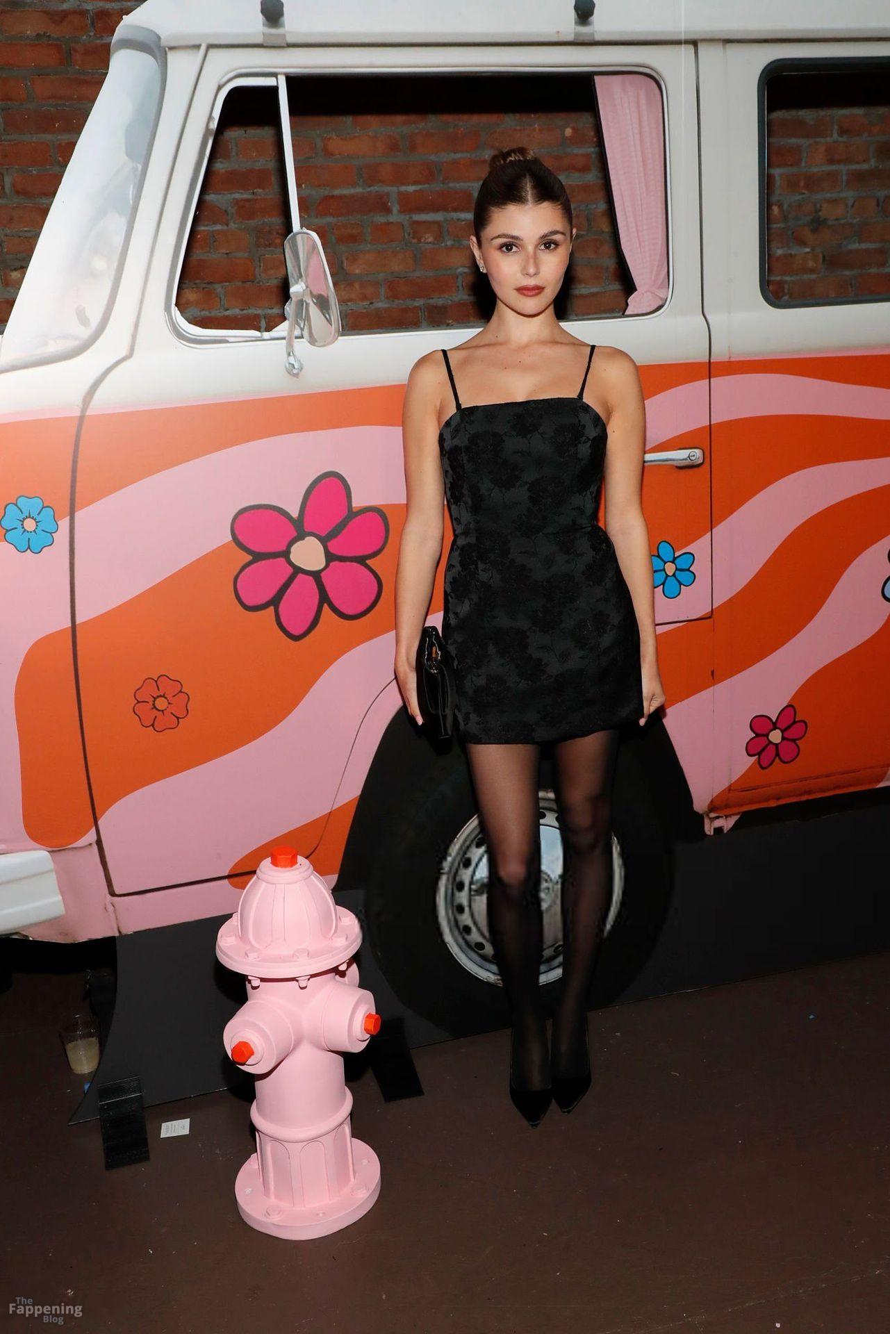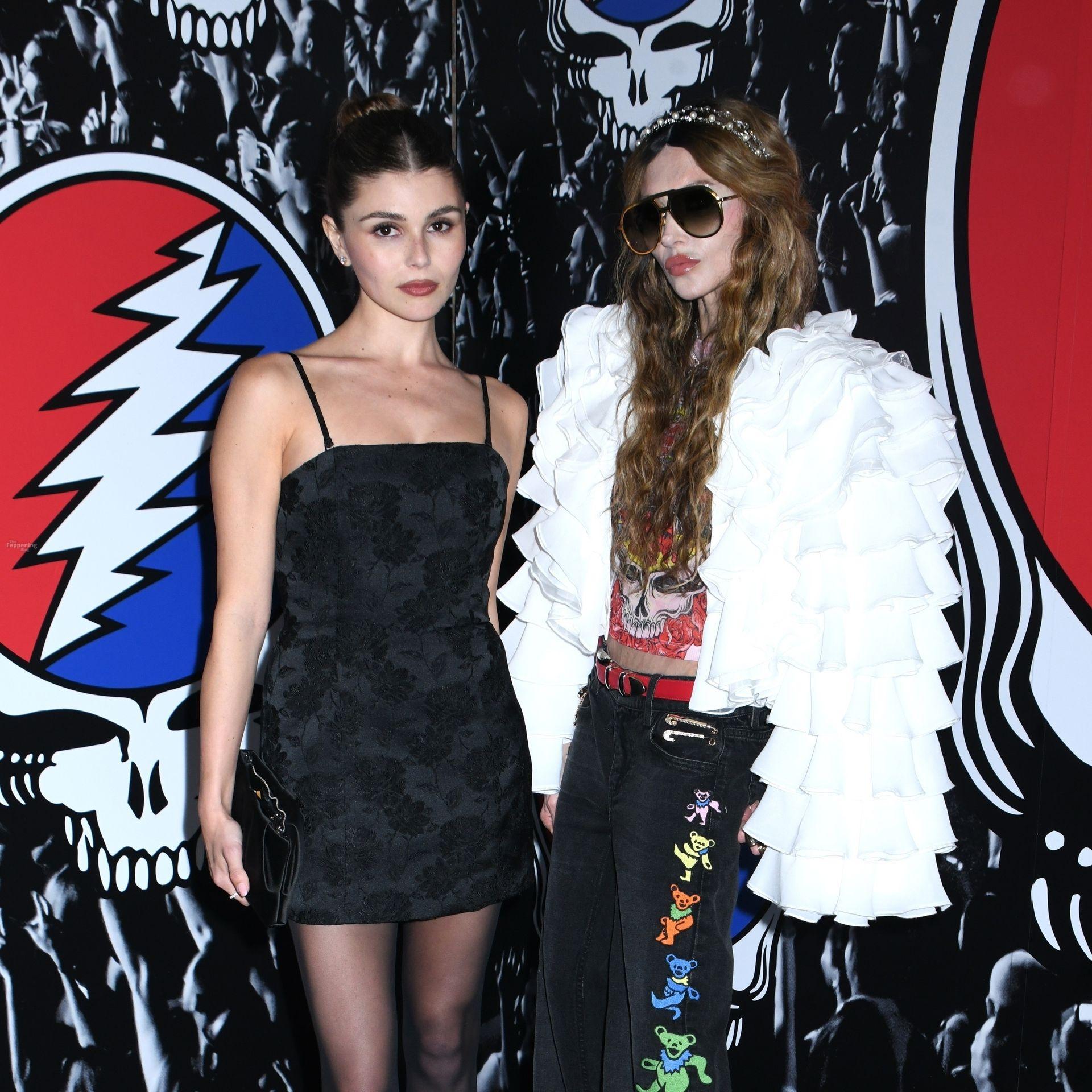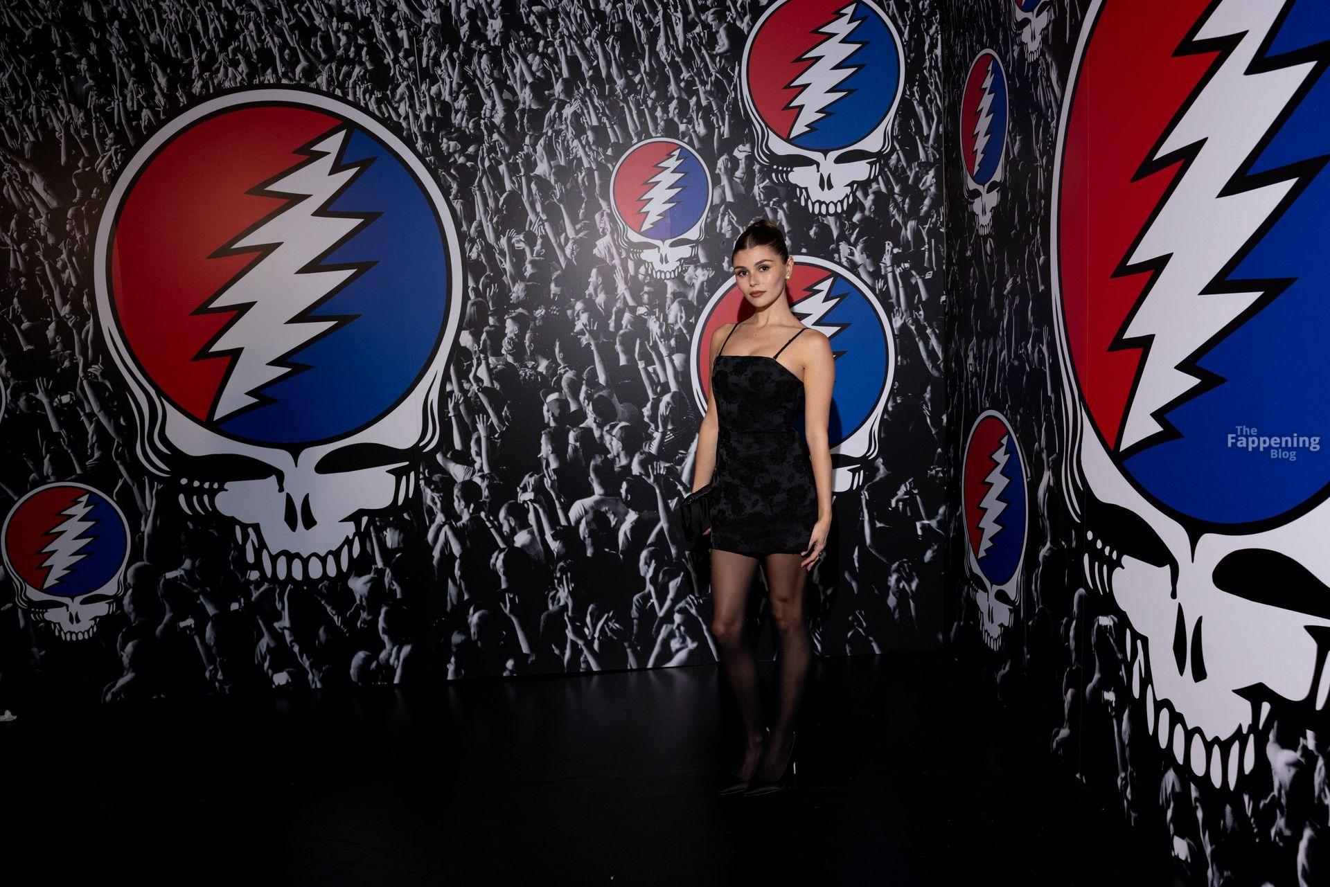 Olivia Jade Giannulli exibe suas pernas sexy em um vestido mini preto e meia-calça transparente na festa de lançamento Alice + Olivia x Grateful Dead em NYC.