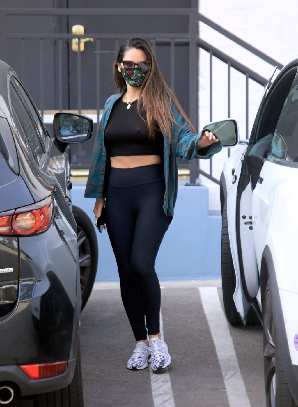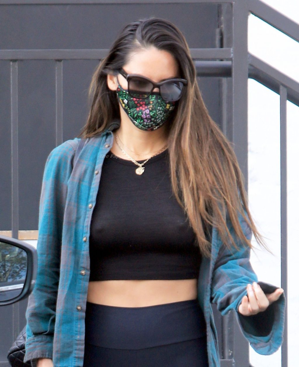 Olivia Munn exibiu sua silhueta inacreditável com uma calça legging preta e um top cropped preto sexy para seu treino matinal em Beverly Hills, 15/02/2021.