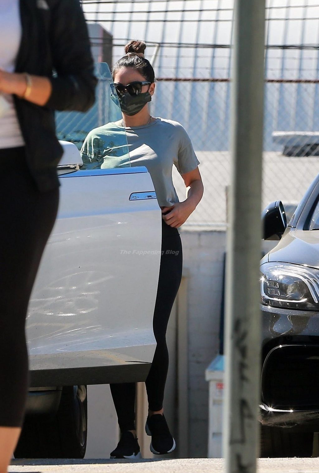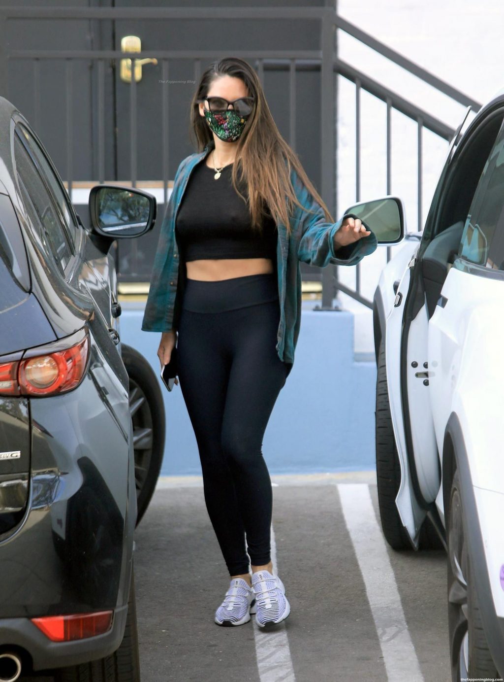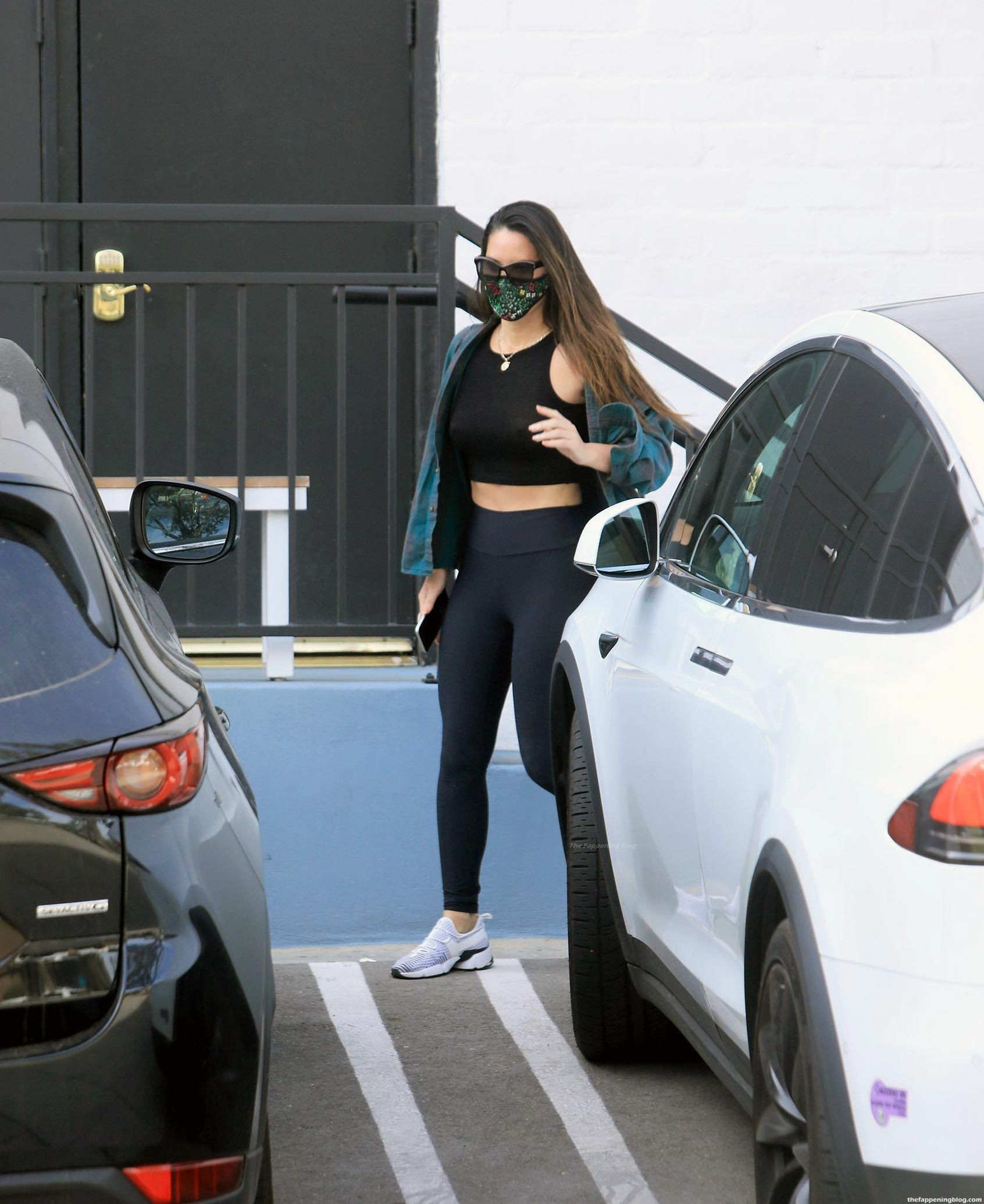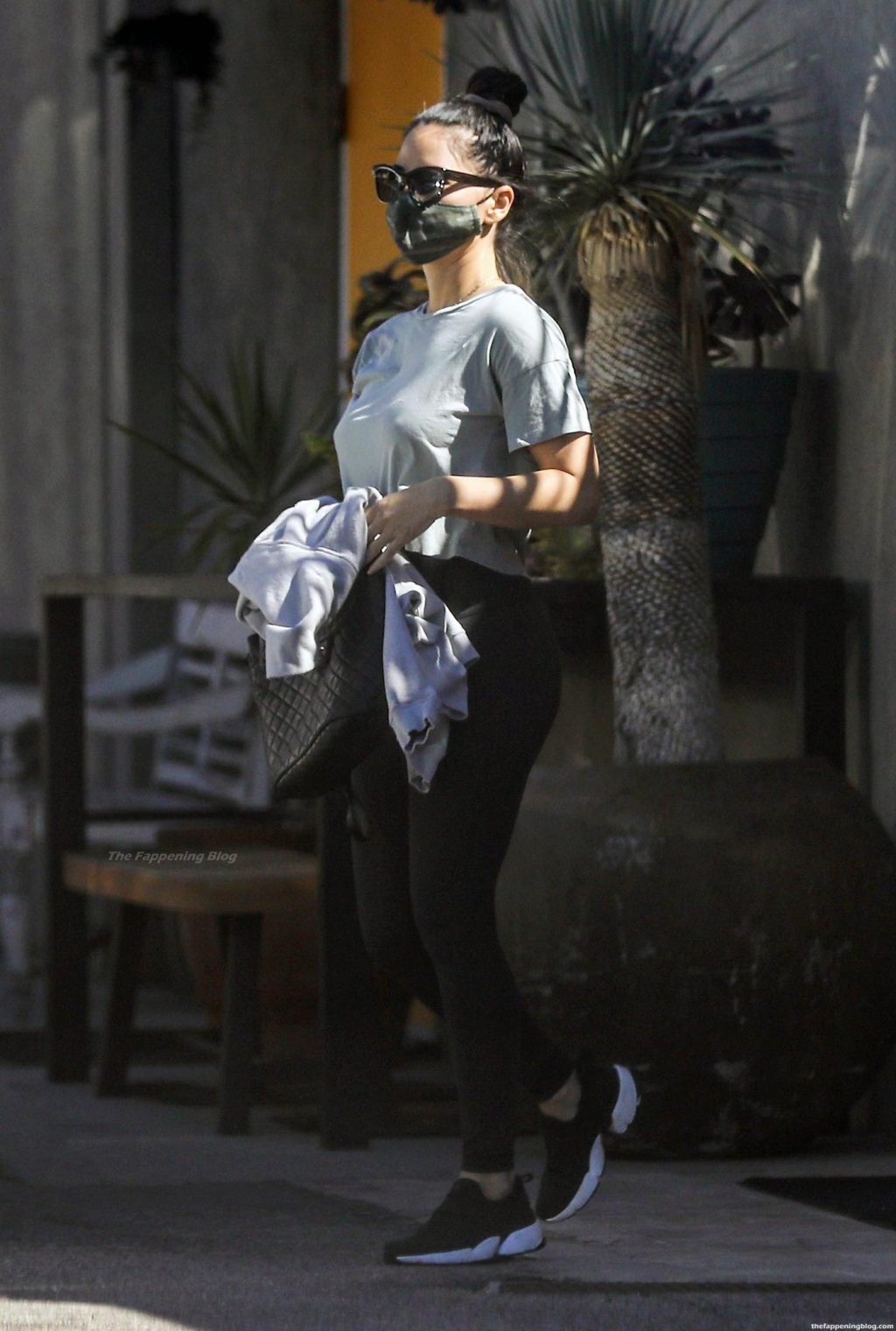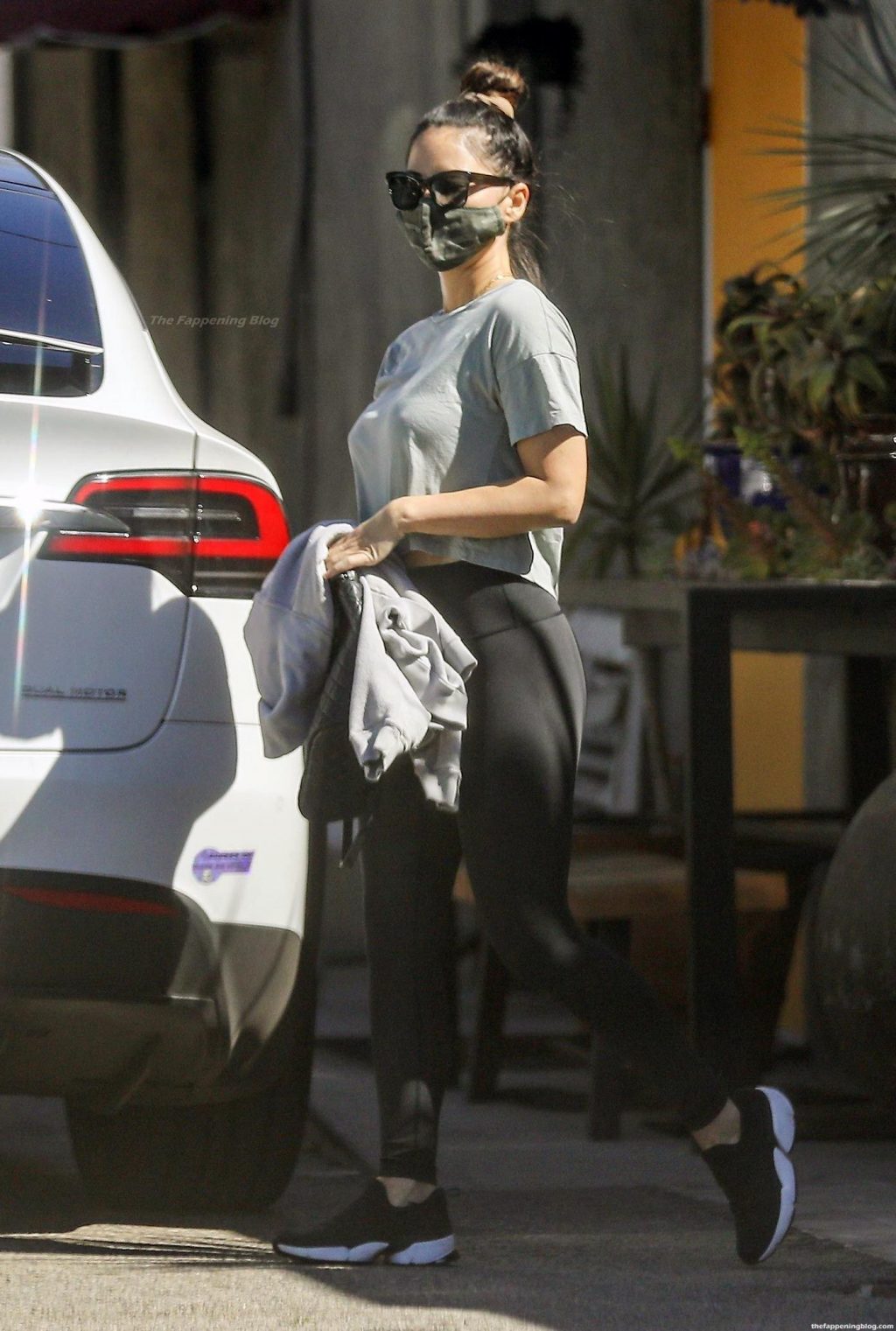 Olivia Munn wore a pair of tight and thin black leggings and a sultry black crop top to her morning workout in Beverly Hills, showcasing her incredible figure and hard nipples!