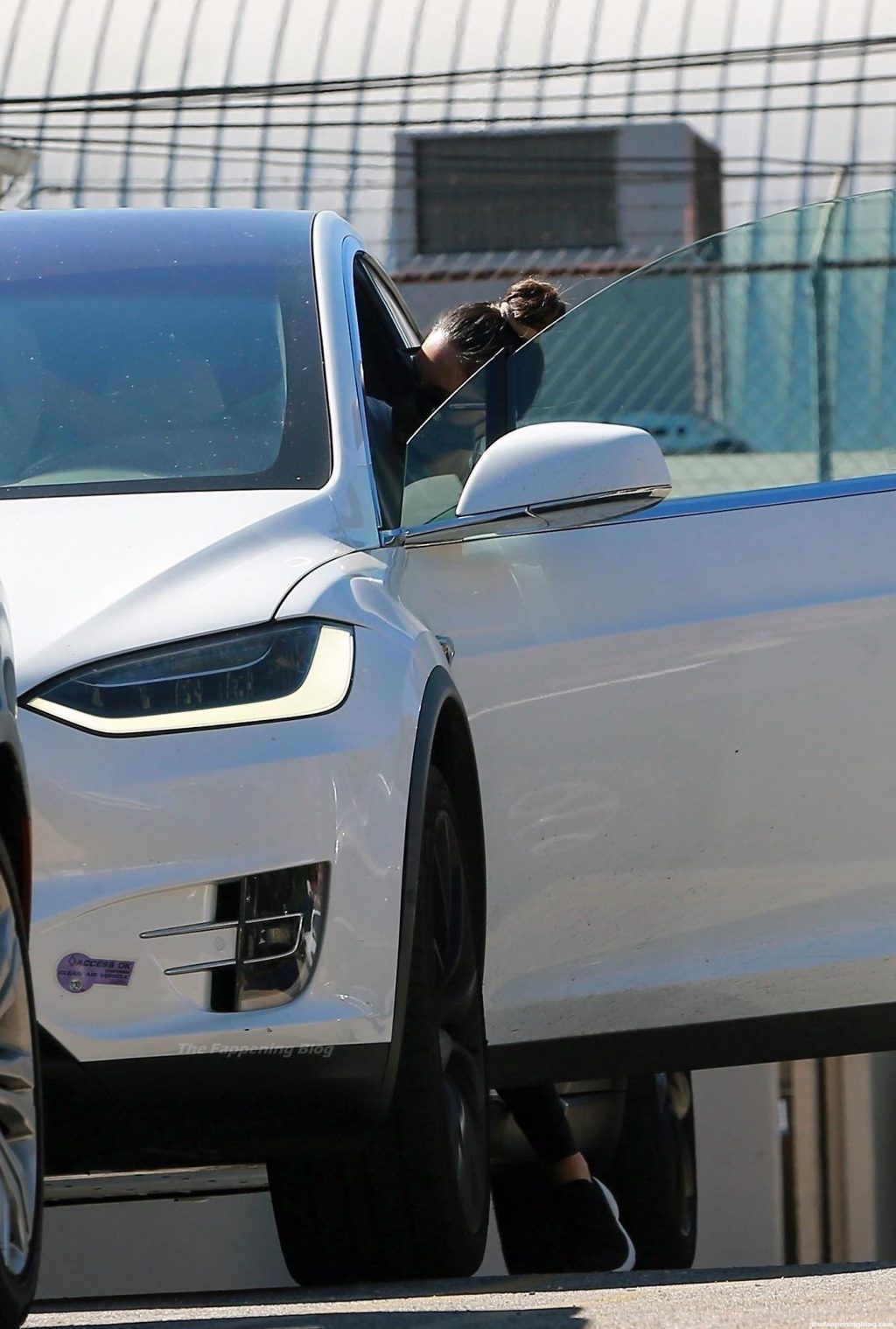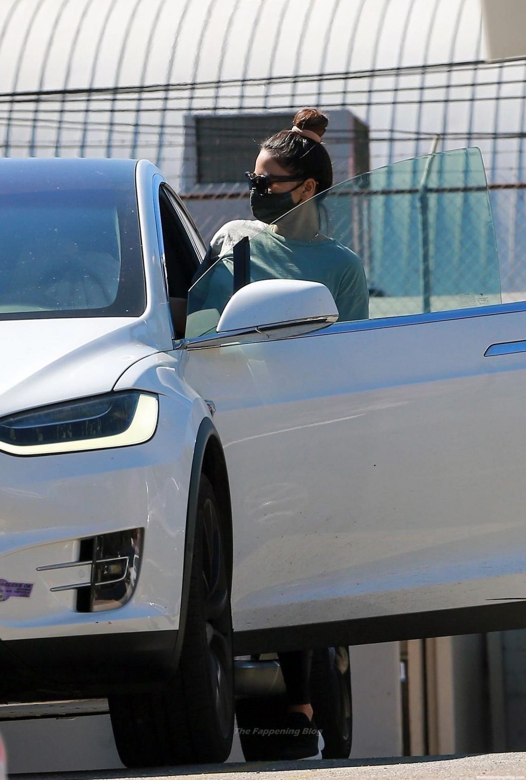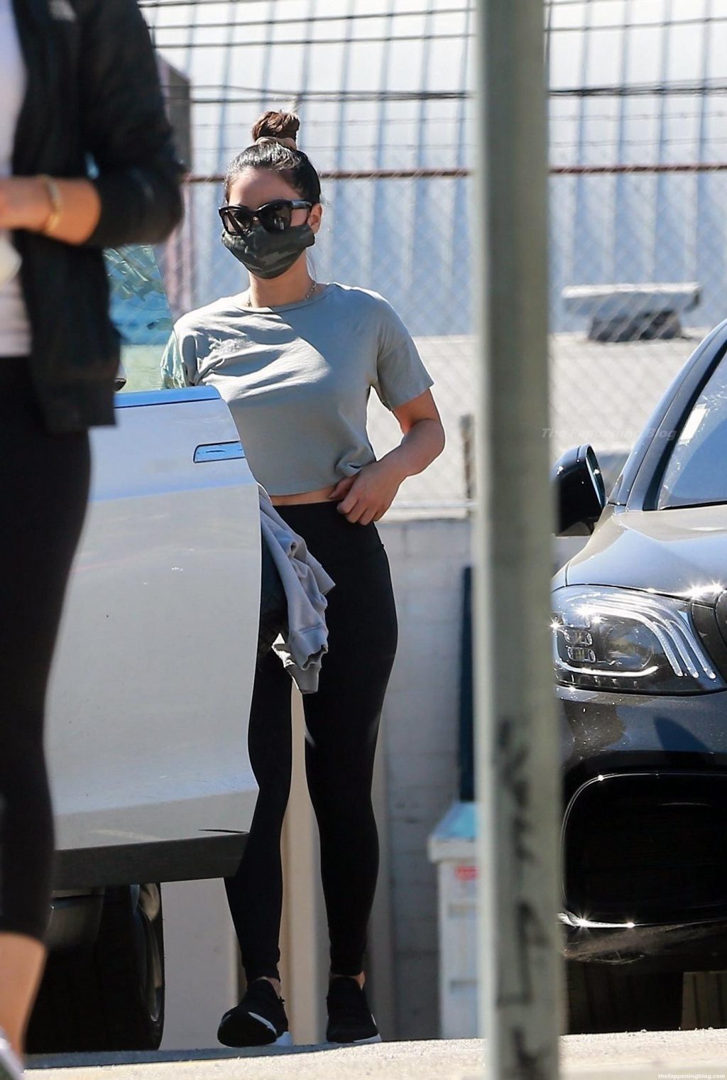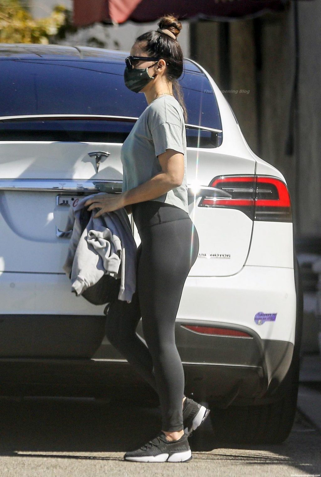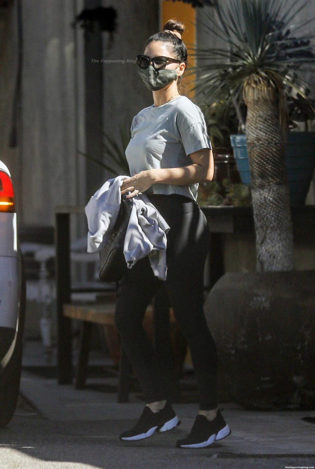 Olivia Munn wore a pair of tight and thin black leggings and a sultry black crop top to her morning workout in Beverly Hills, showcasing her incredible figure and hard nipples!