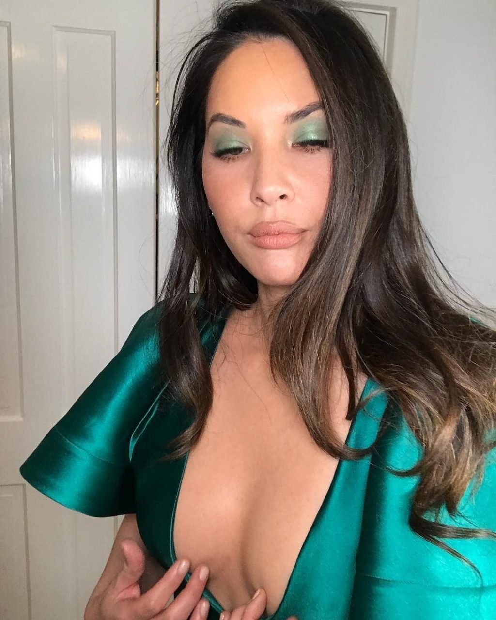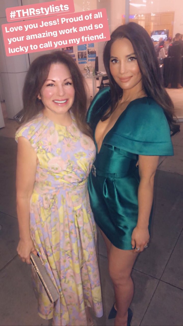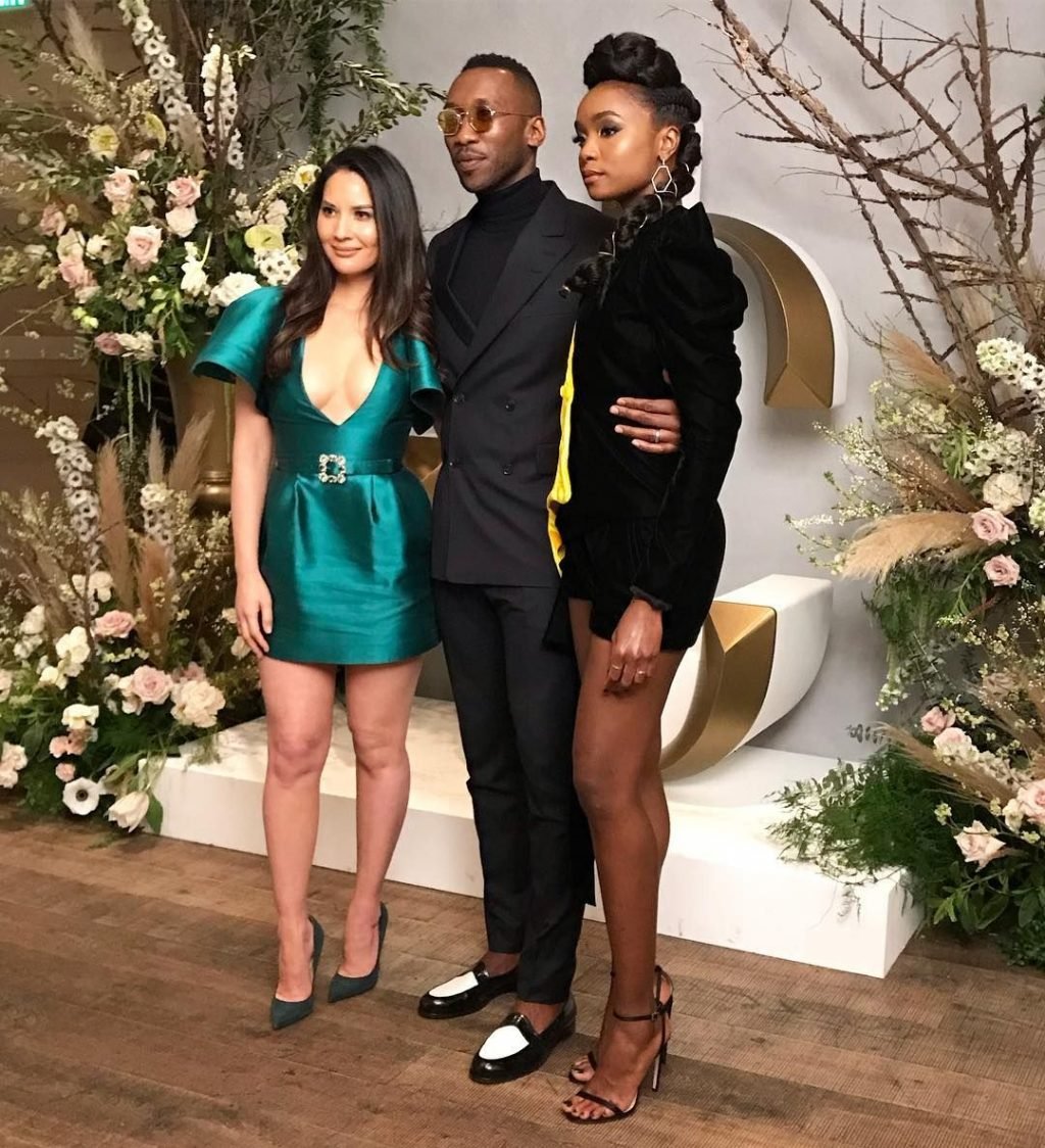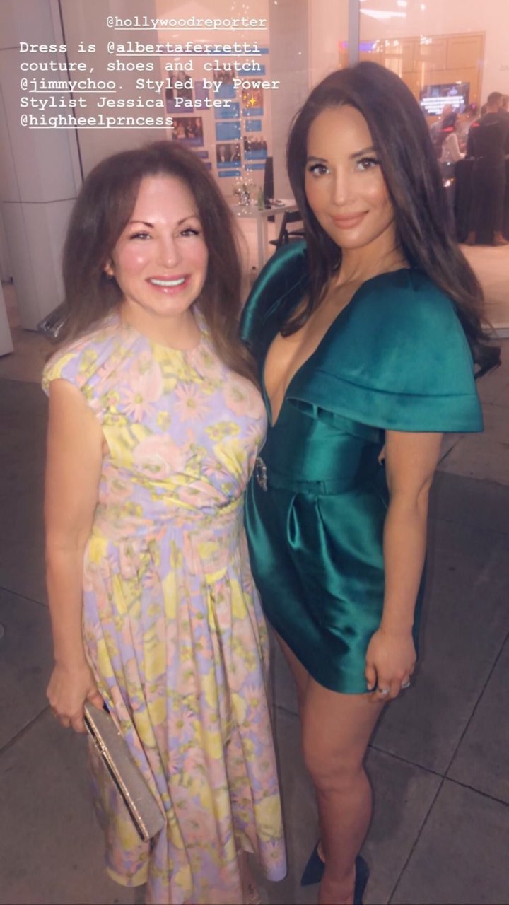 A atriz Olivia Munn usa um vestido verde curto e decotado na festa do Hollywood Reporter no Avra em Beverly Hills, 12/03/2019.