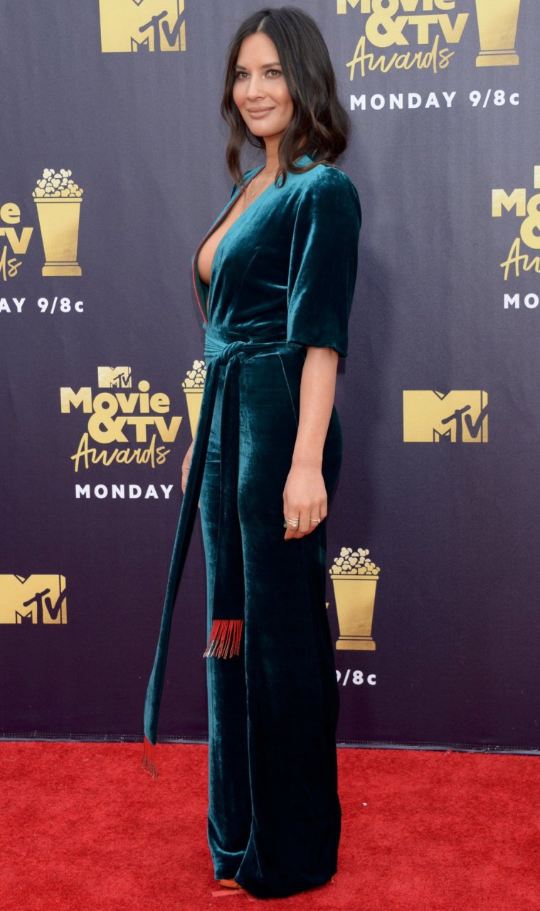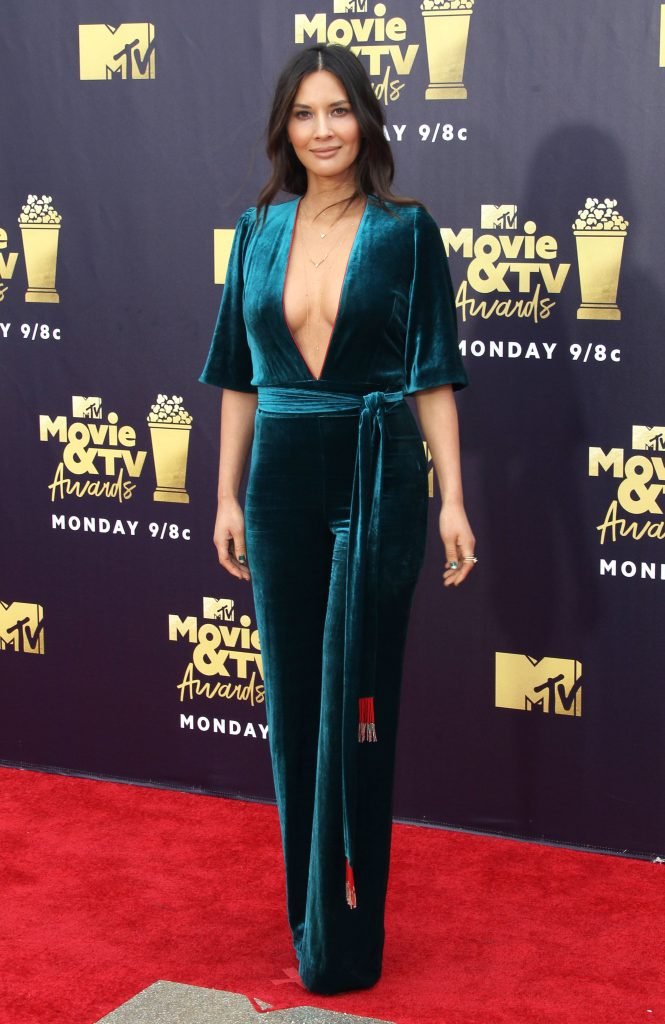 Olivia Munn participa do MTV Movie and TV Awards 2018 realizado no Barker Hangar em Santa Monica, Califórnia, 16/06/2018. A atriz de cinema de 37 anos exibiu seu famoso decote usando um macacão.