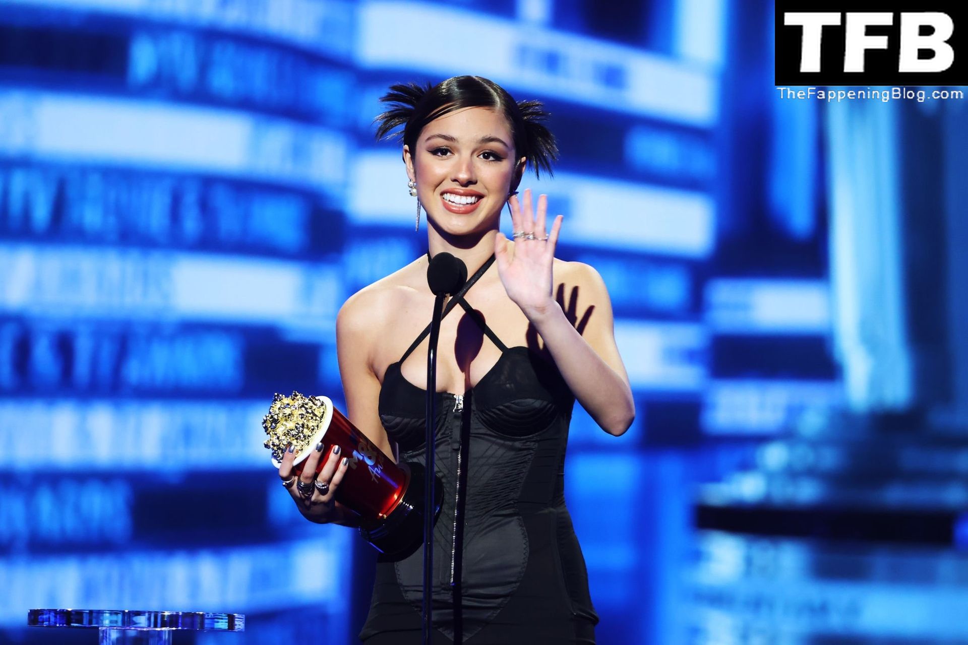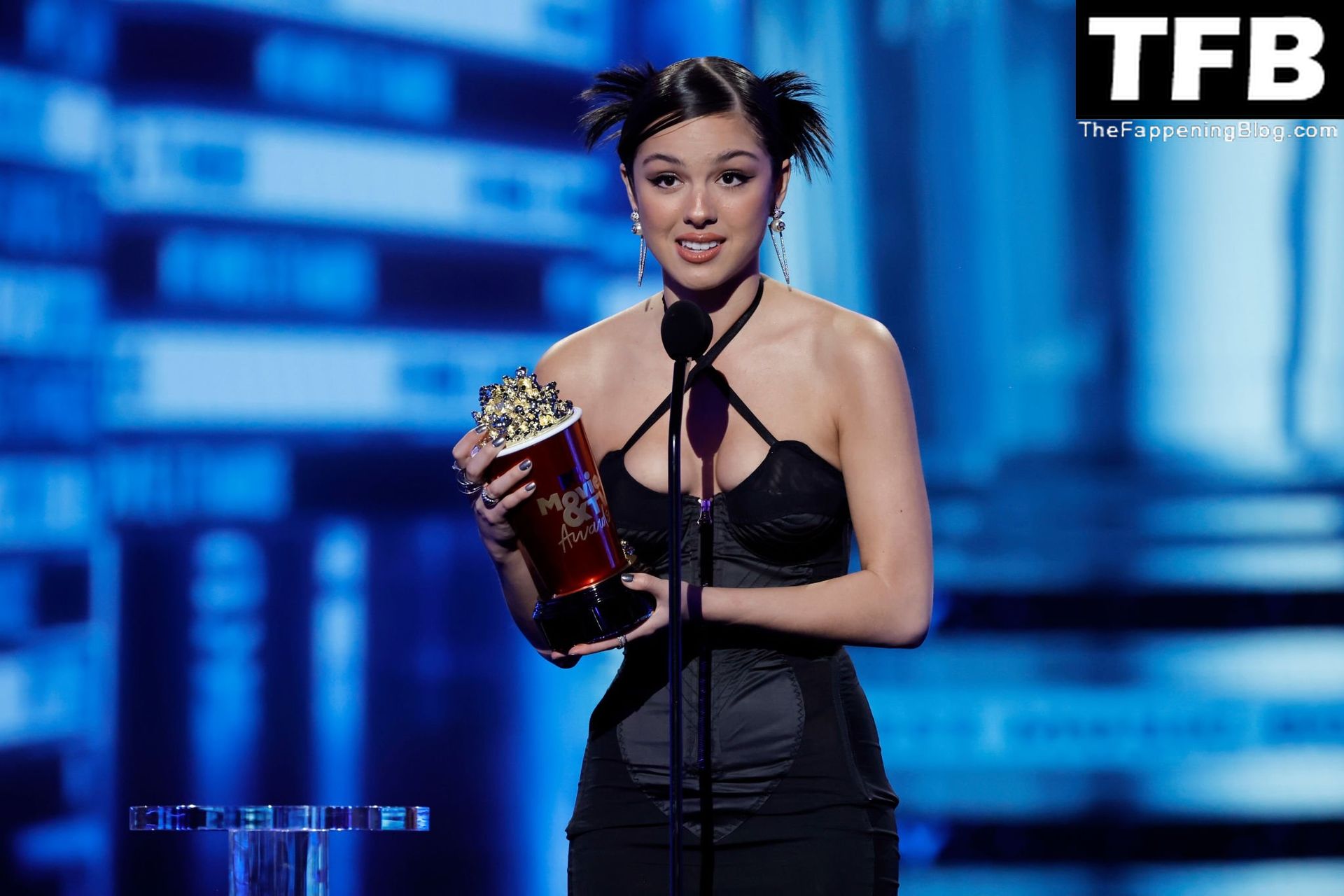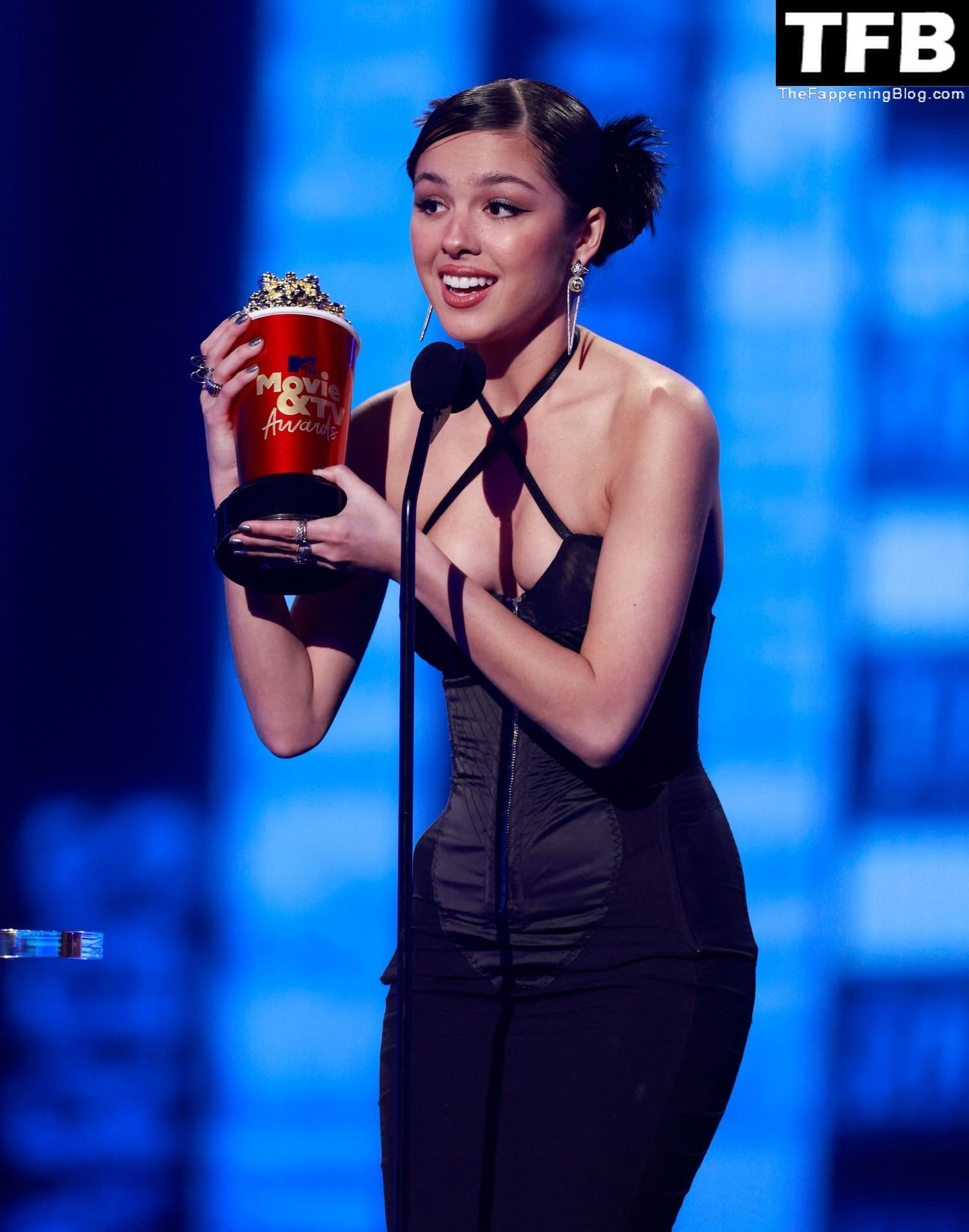 A cantora/atriz americana Olivia Rodrigo é fotografada no tapete vermelho do MTV Movie & TV Awards no The Barker Hangar em Santa Monica, 05/06/2022.