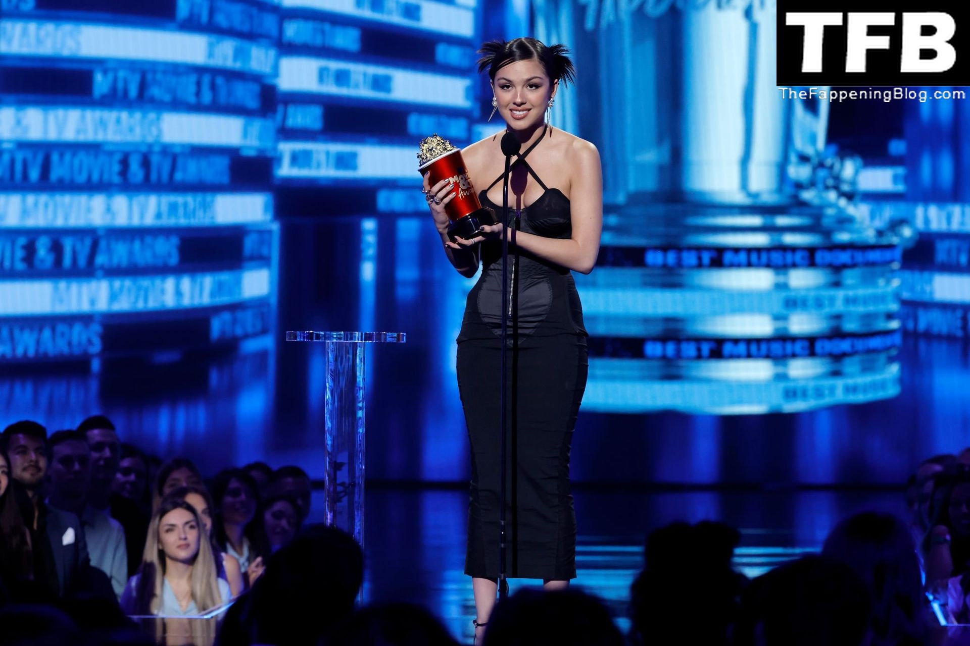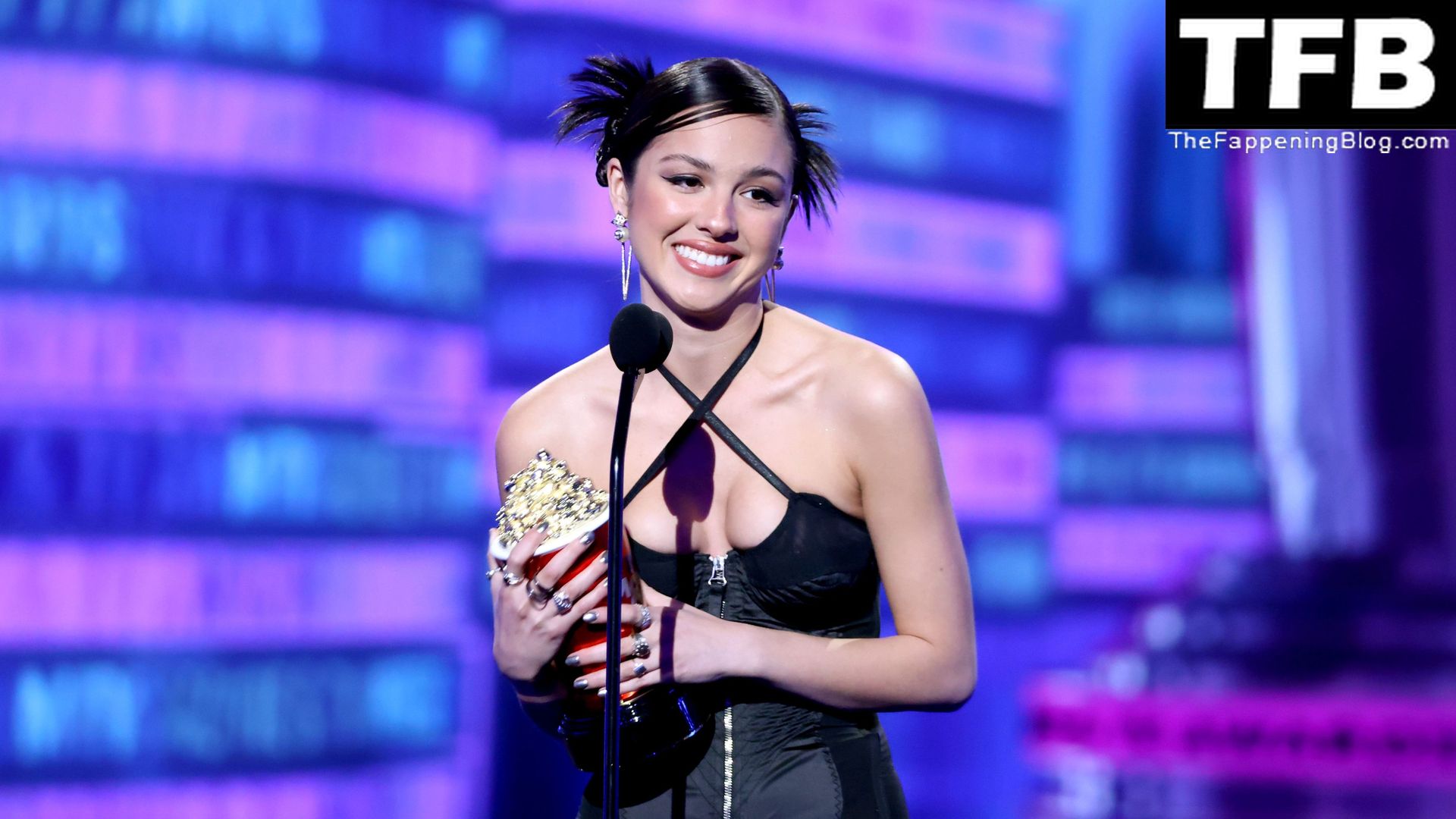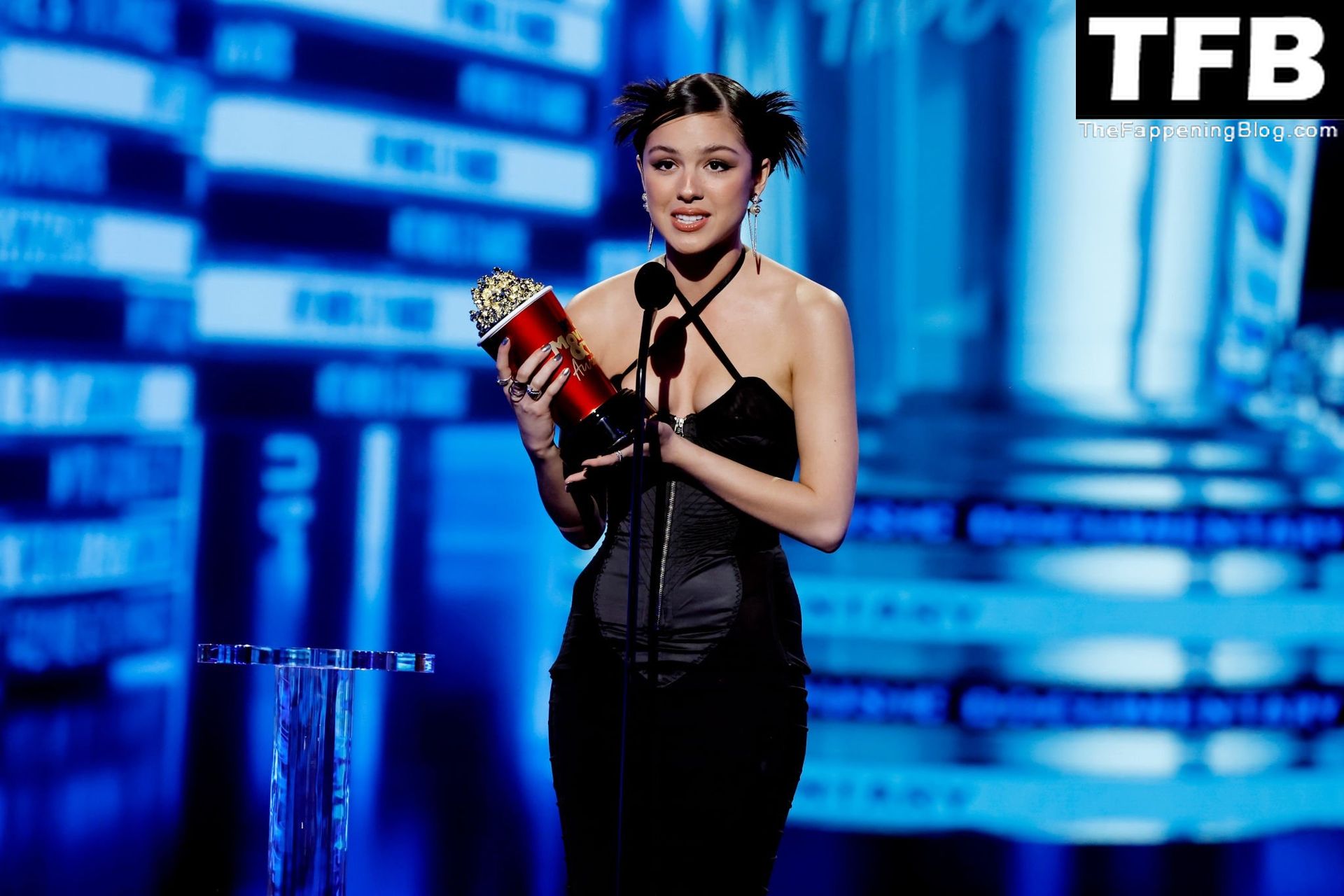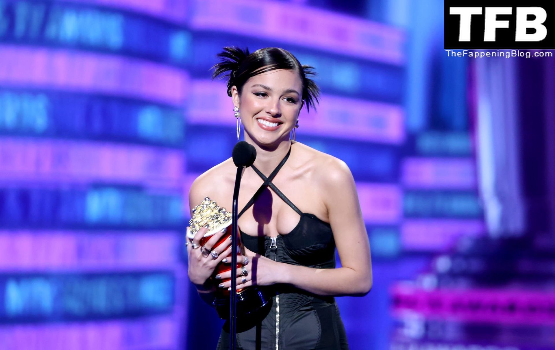 A cantora/atriz americana Olivia Rodrigo é fotografada no tapete vermelho do MTV Movie & TV Awards no The Barker Hangar em Santa Monica, 05/06/2022.