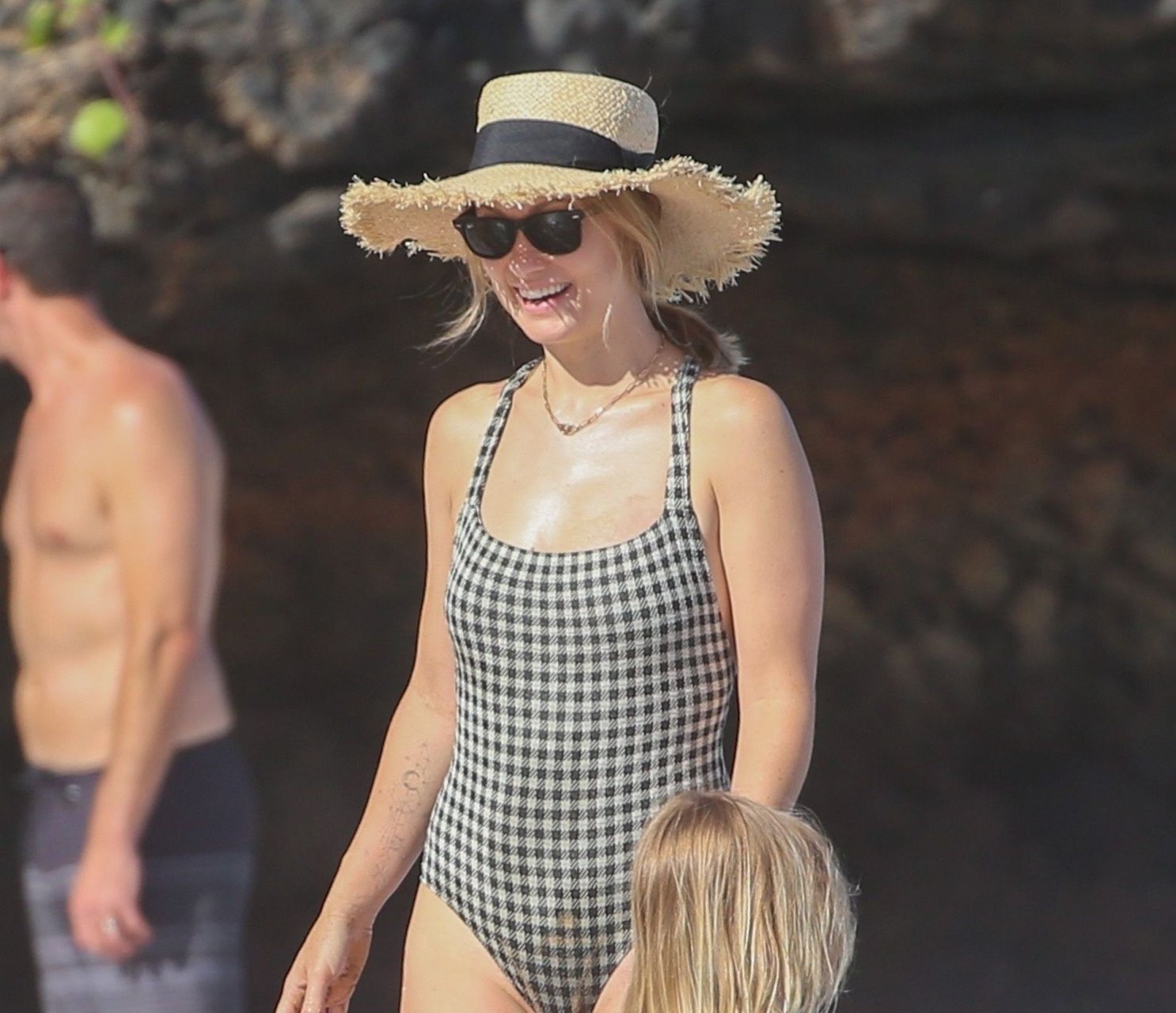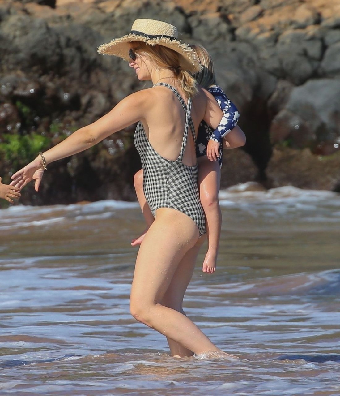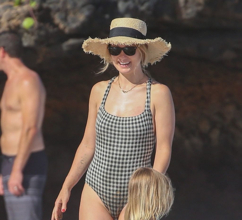 Olivia Wilde arrasa com um maiô na praia com seus filhos no Havaí, 16/06/2019. A atriz foi vista na praia na Ilha de Maui.