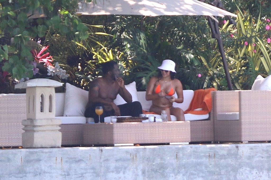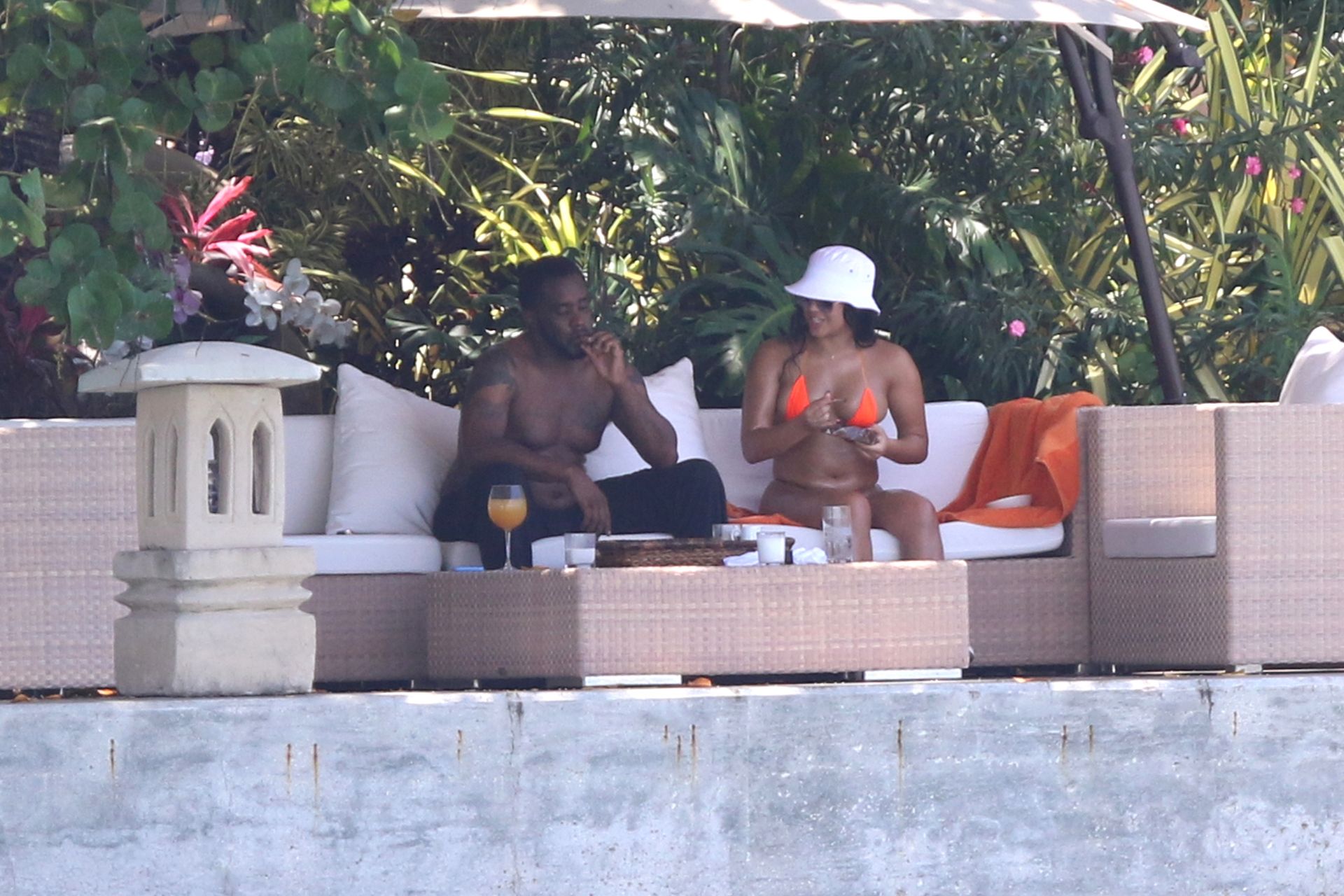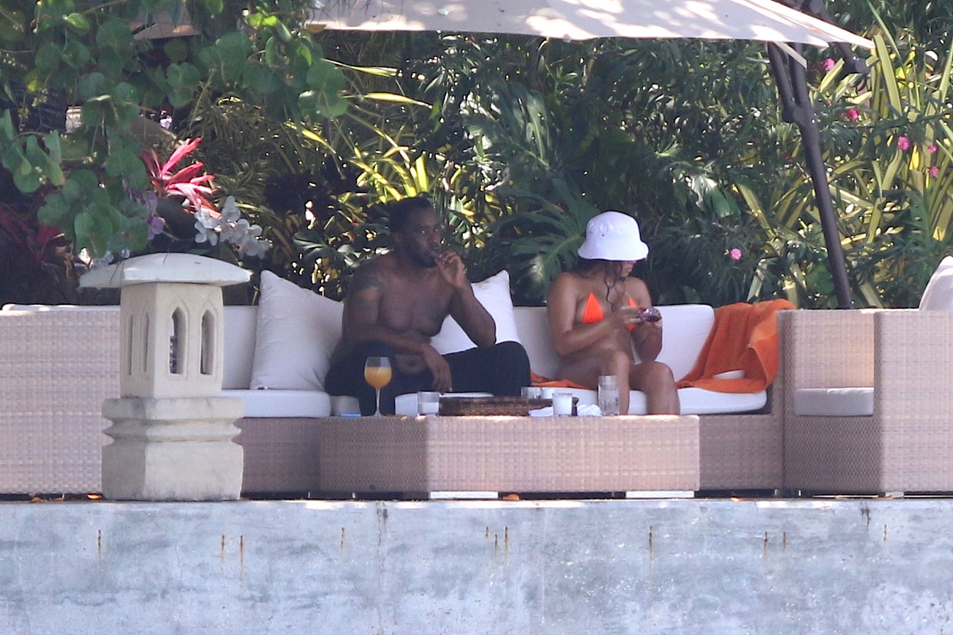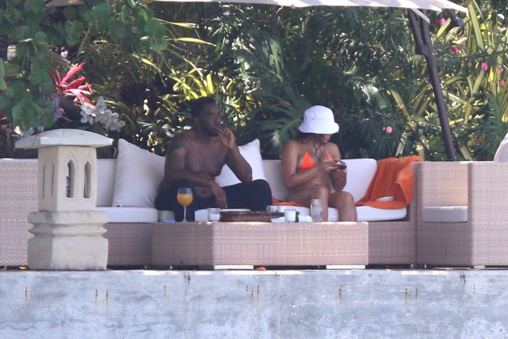 Diddy, 50, parecia estar fumando um cigarro enrolado durante o dia relaxante ao sol. Diddy terminou com Lori, filha de Steve Harvey, em outubro após três meses de namoro.