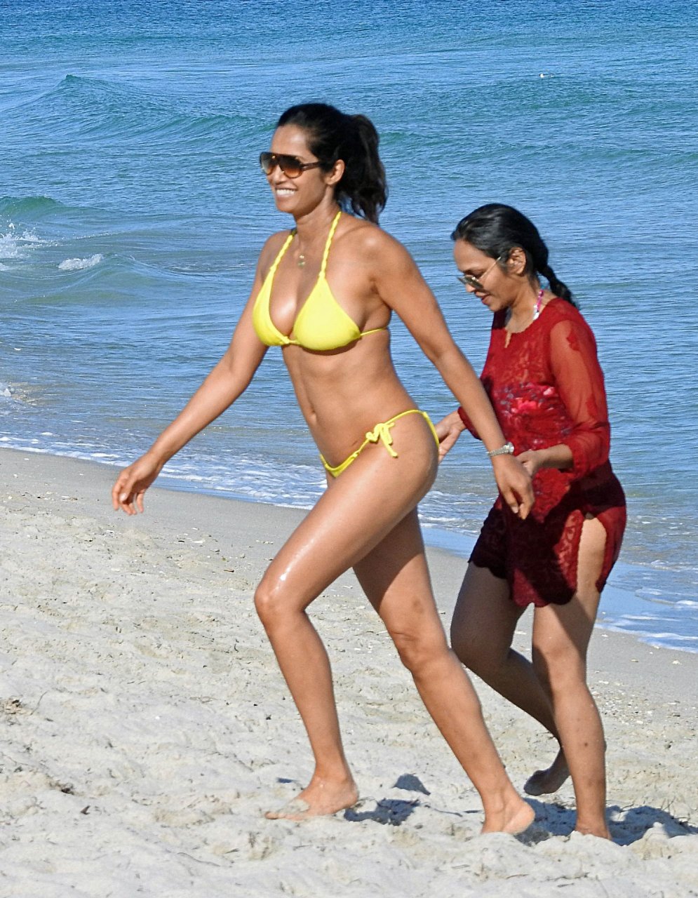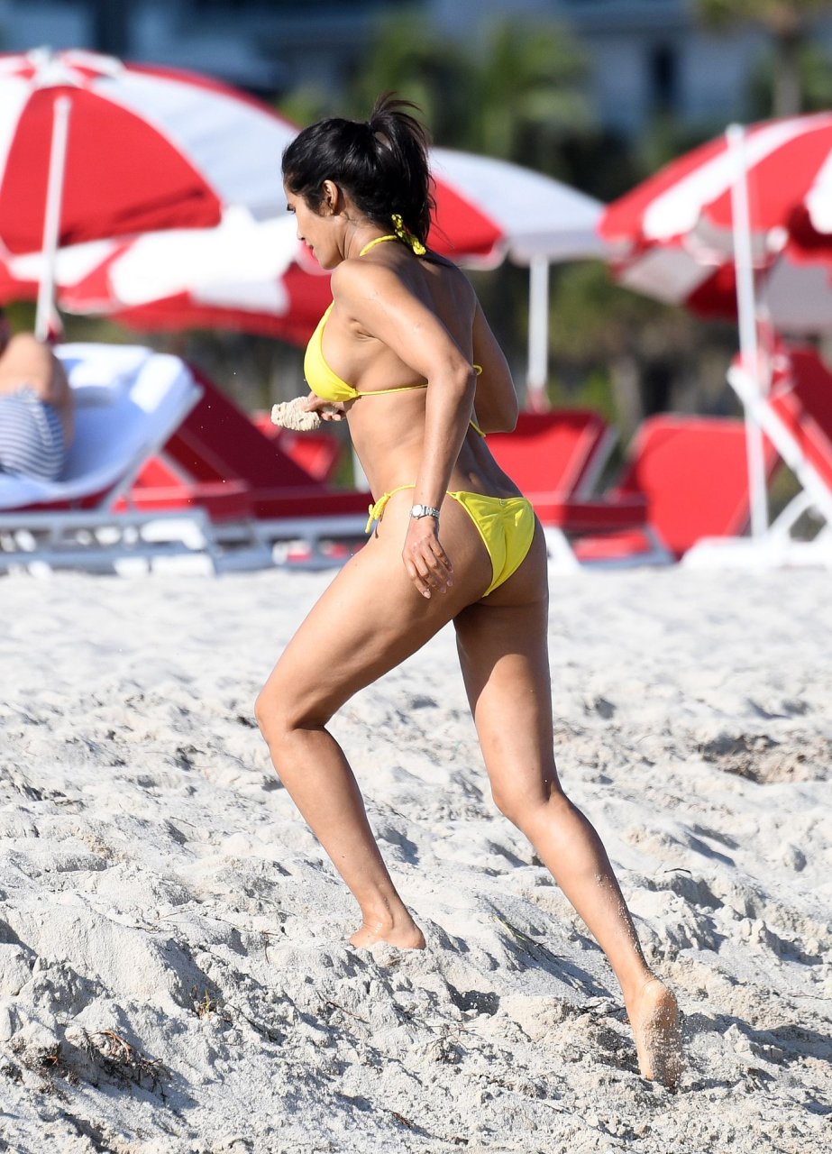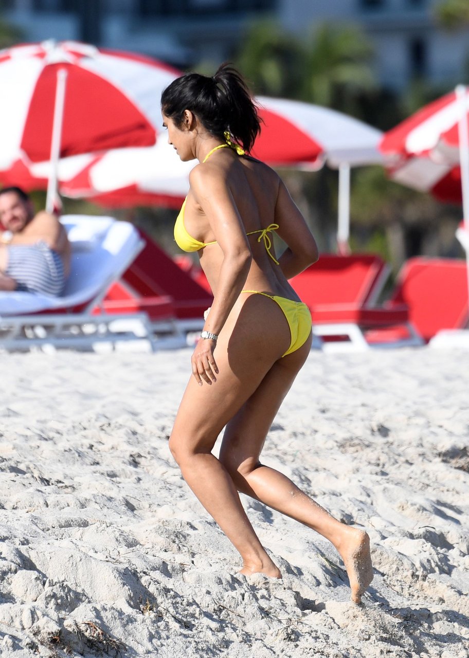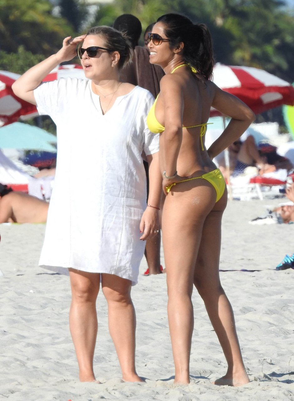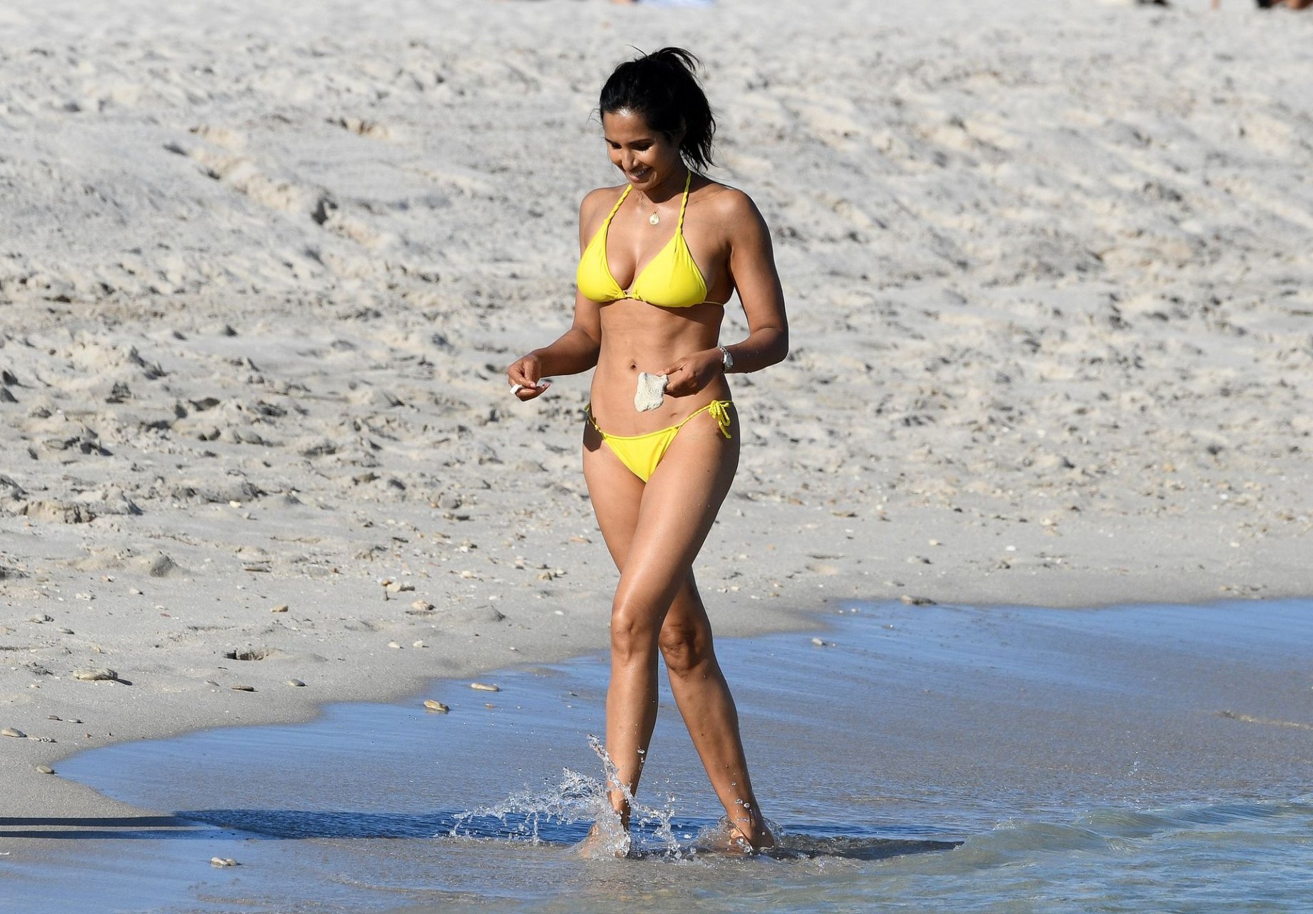 Modelo, atriz e apresentadora de TV Padma Lakshmi exibe seu corpo fantástico de biquíni enquanto mergulha no oceano durante férias em Miami, 01/05/2019. A estrela da rede de TV de 48 anos usava um biquíni amarelo brilhante que destacava suas curvas enquanto brincava e ria com uma amiga antes de se dirigir a uma cabana VIP para um pouco de sombra e descanso.