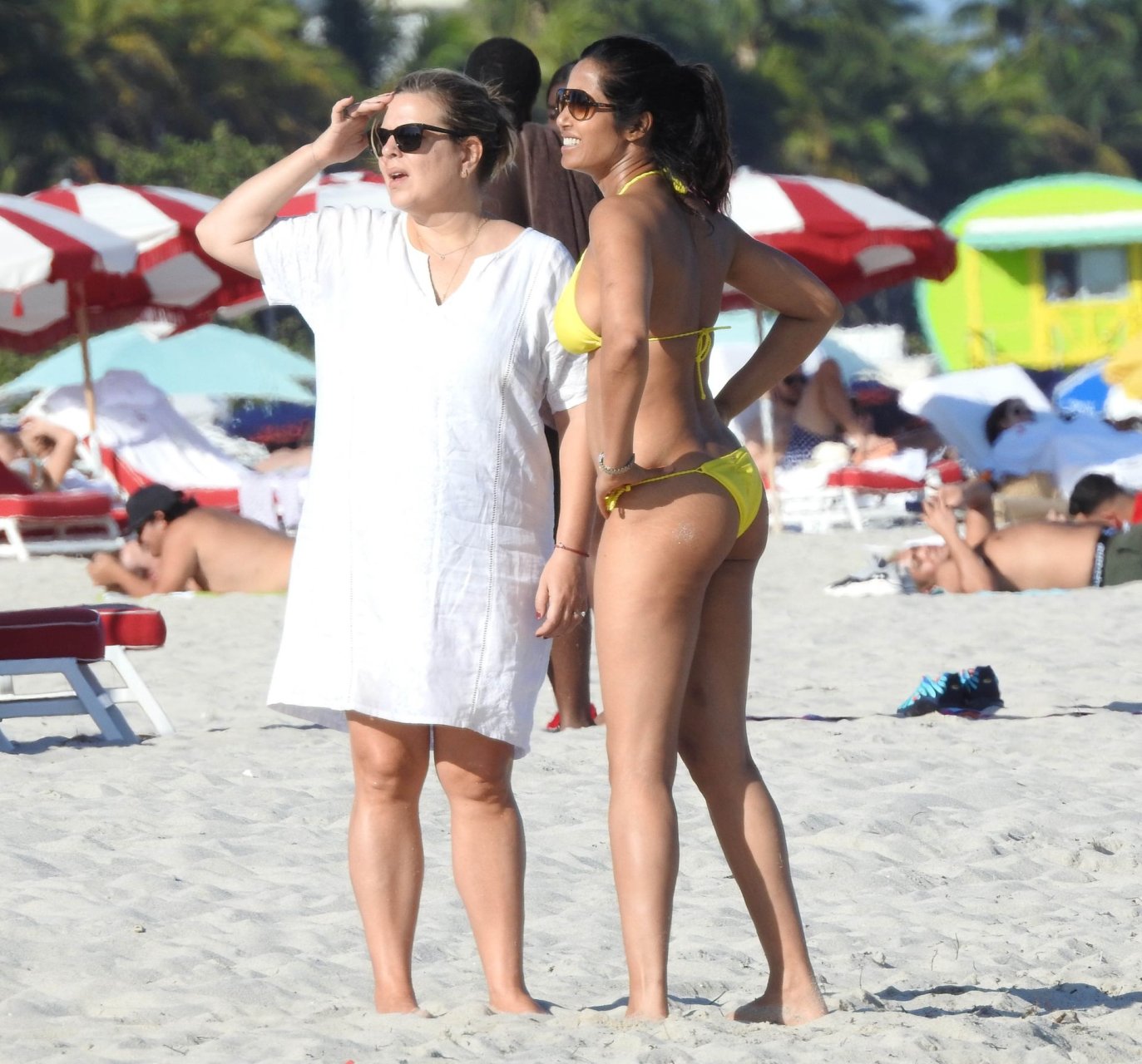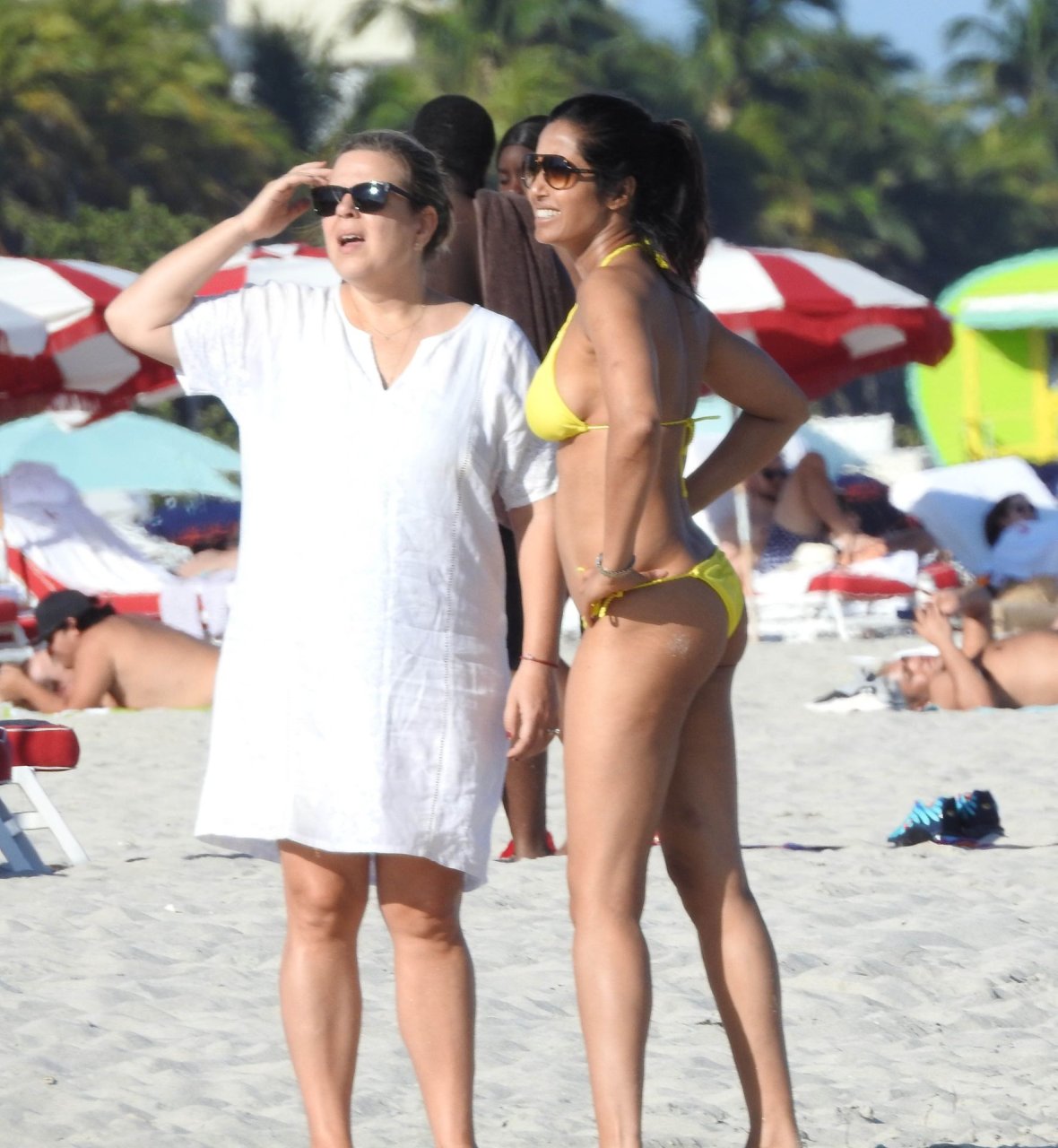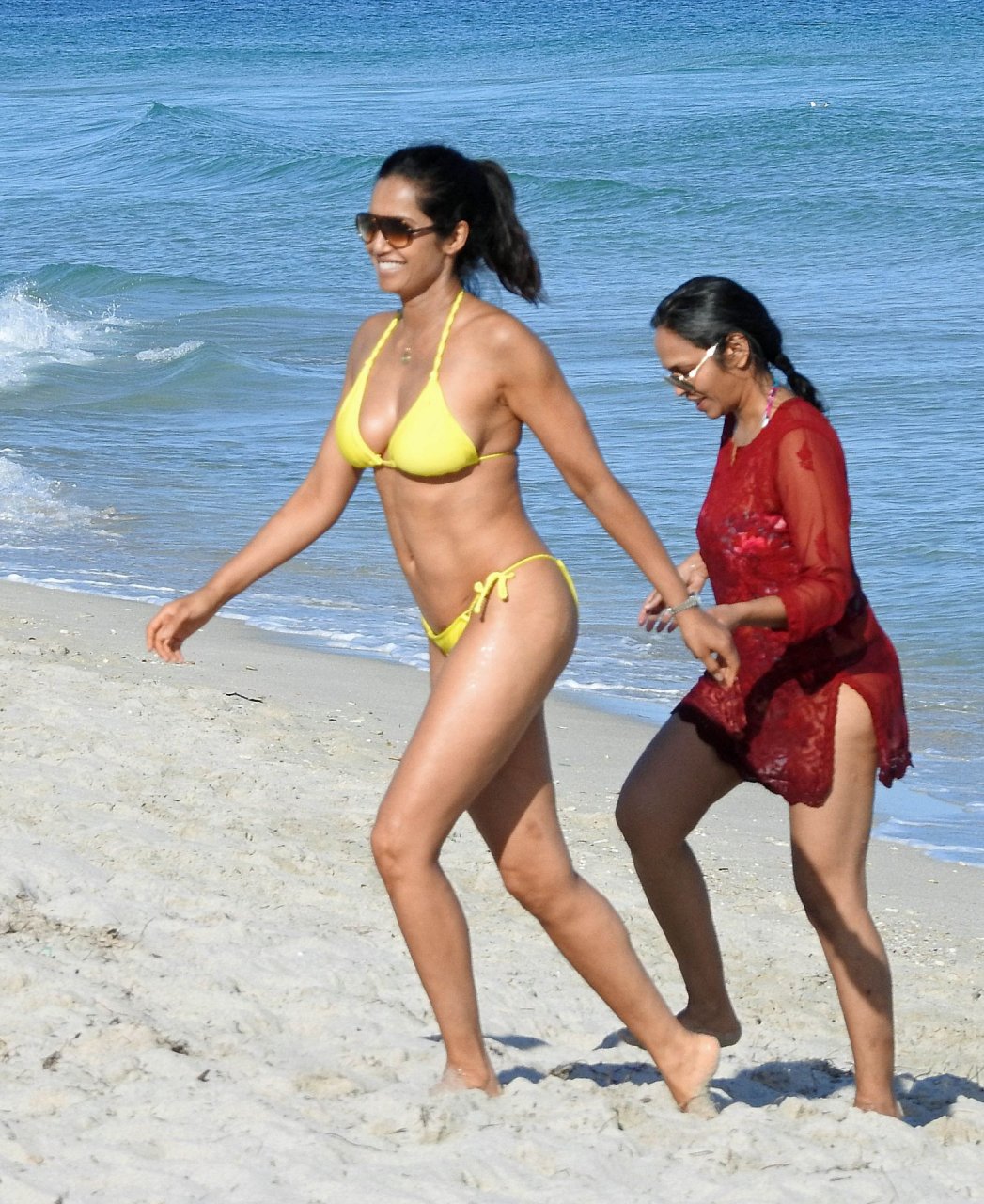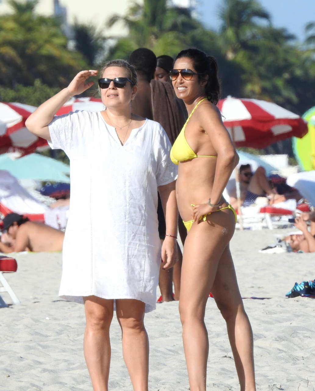 Modelo, atriz e apresentadora de TV Padma Lakshmi exibe seu corpo fantástico de biquíni enquanto mergulha no oceano durante férias em Miami, 01/05/2019. A estrela da rede de TV de 48 anos usava um biquíni amarelo brilhante que destacava suas curvas enquanto brincava e ria com uma amiga antes de se dirigir a uma cabana VIP para um pouco de sombra e descanso.