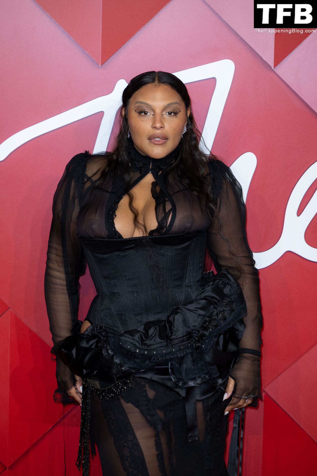 A modelo Paloma Elsesser posa com um vestido transparente no tapete vermelho do Fashion Awards 2022 no Royal Albert Hall, Londres, 12/05/2022..