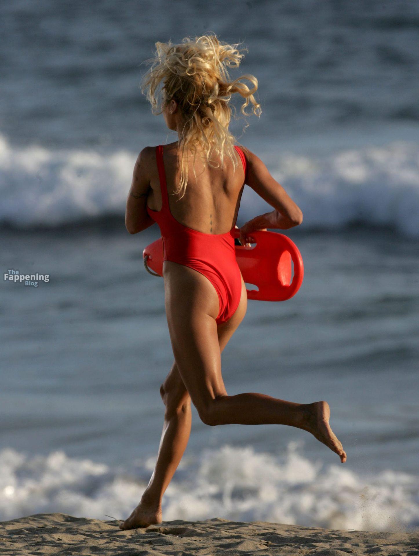 Pamela Anderson naquela sessão de fotos de salva-vidas de 2007 estava quente. Maiô vermelho, seios enormes, pele beijada pelo sol e aquela corrida icônica em câmera lenta.