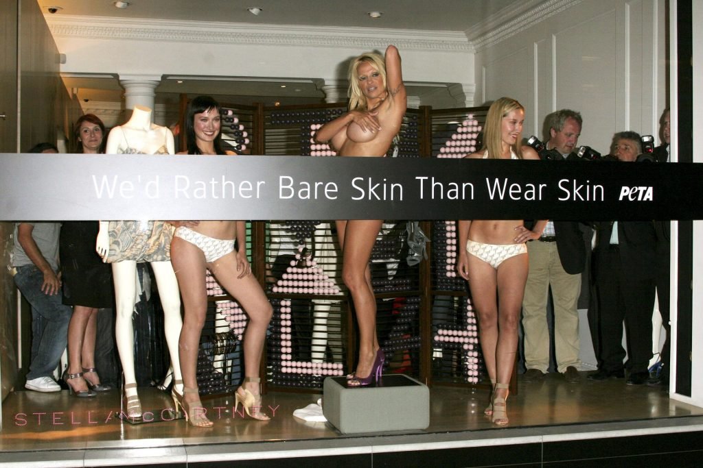 Pamela Anderson cobriu seus seios no The Peta (Pessoas pelo Tratamento Ético dos Animais) Prêmios Humanitários realizados na Stella McCartney, 30 Bruton Street, Londres W1. 28 de junho de 2006.