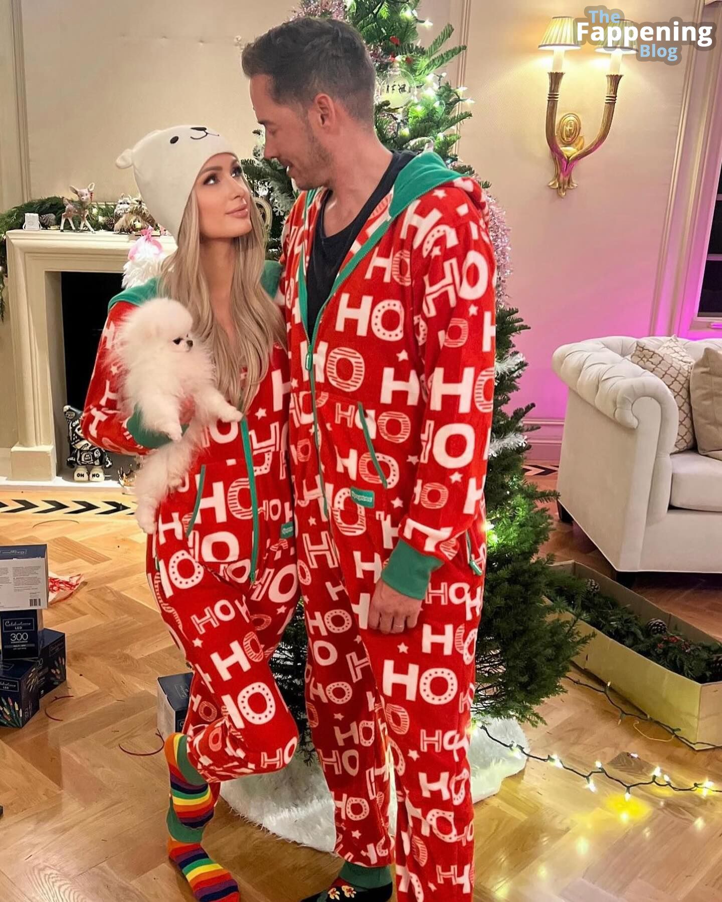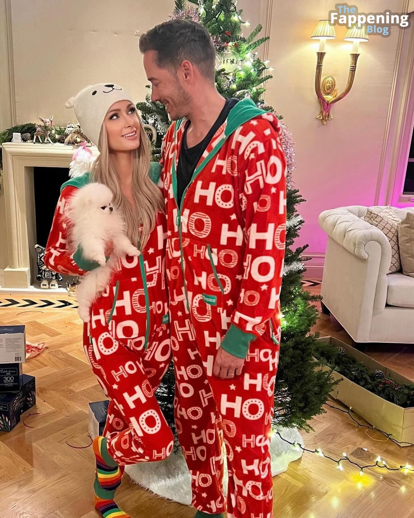 Na véspera de Natal, Paris Hilton compartilhou algumas fotos aconchegantes de pijama e fotos sensuais de lingerie.