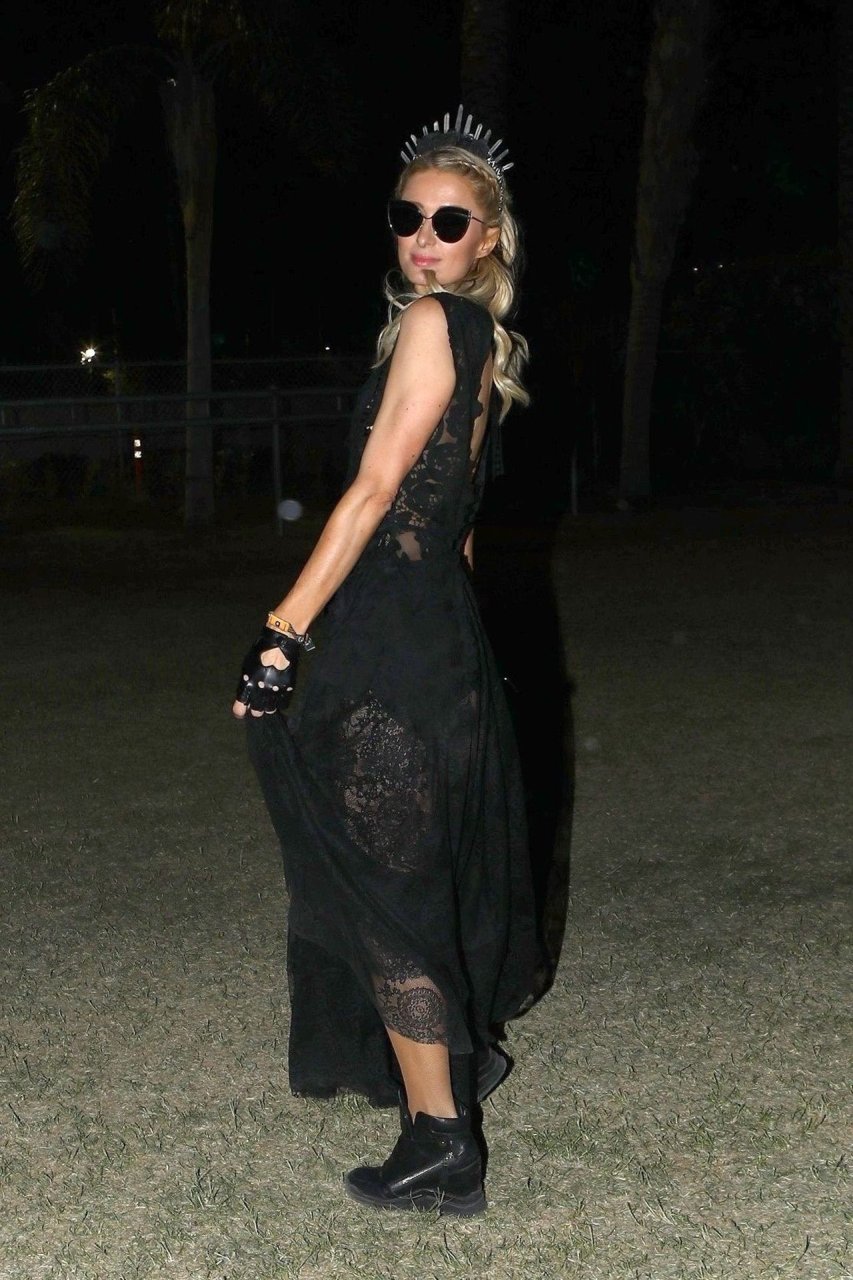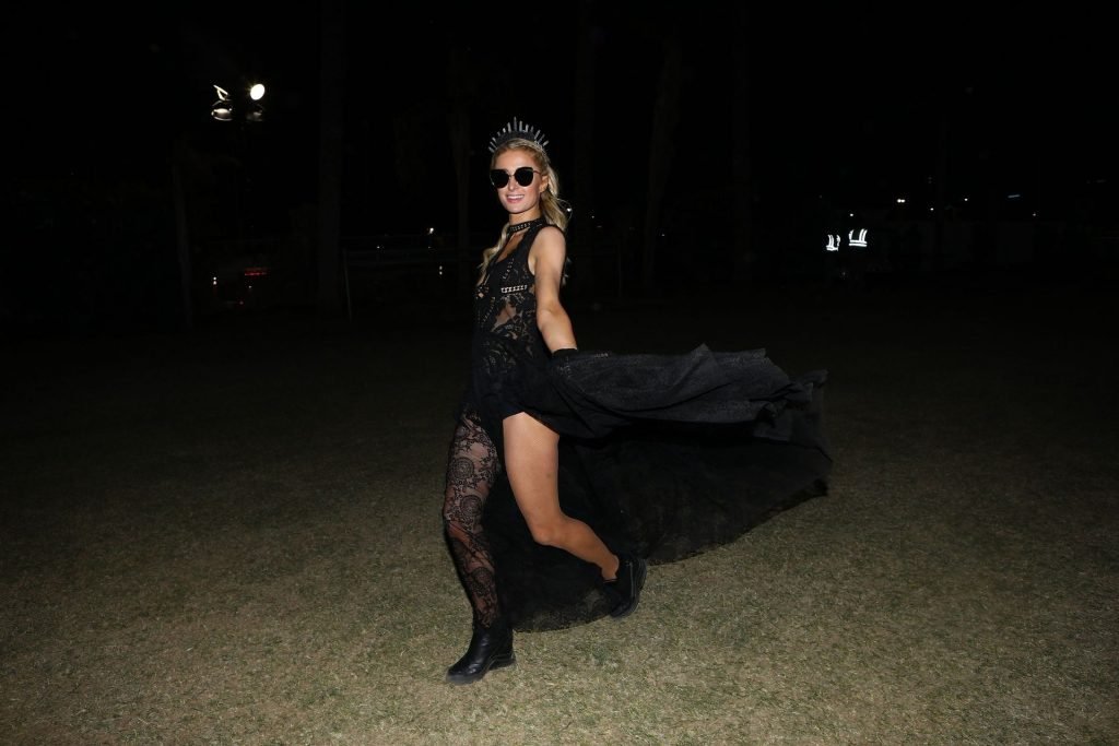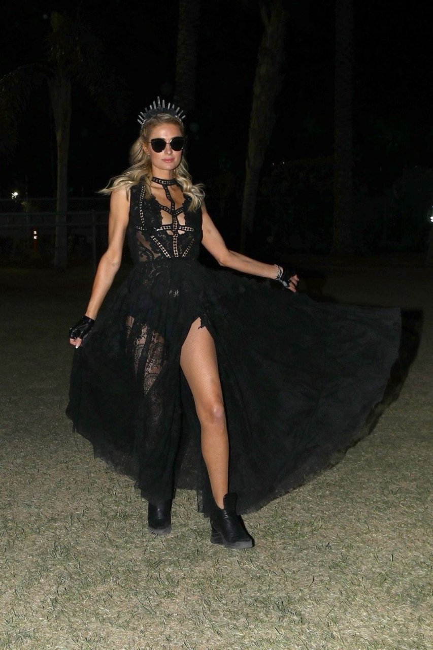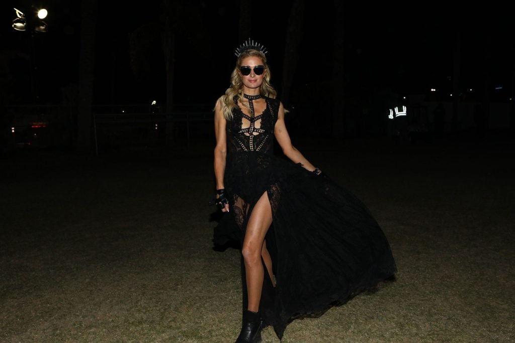 Paris Hilton, de pernas longas, opta por preto total na terceira noite do Festival de Música Coachella em Indio, 14/04/2019.