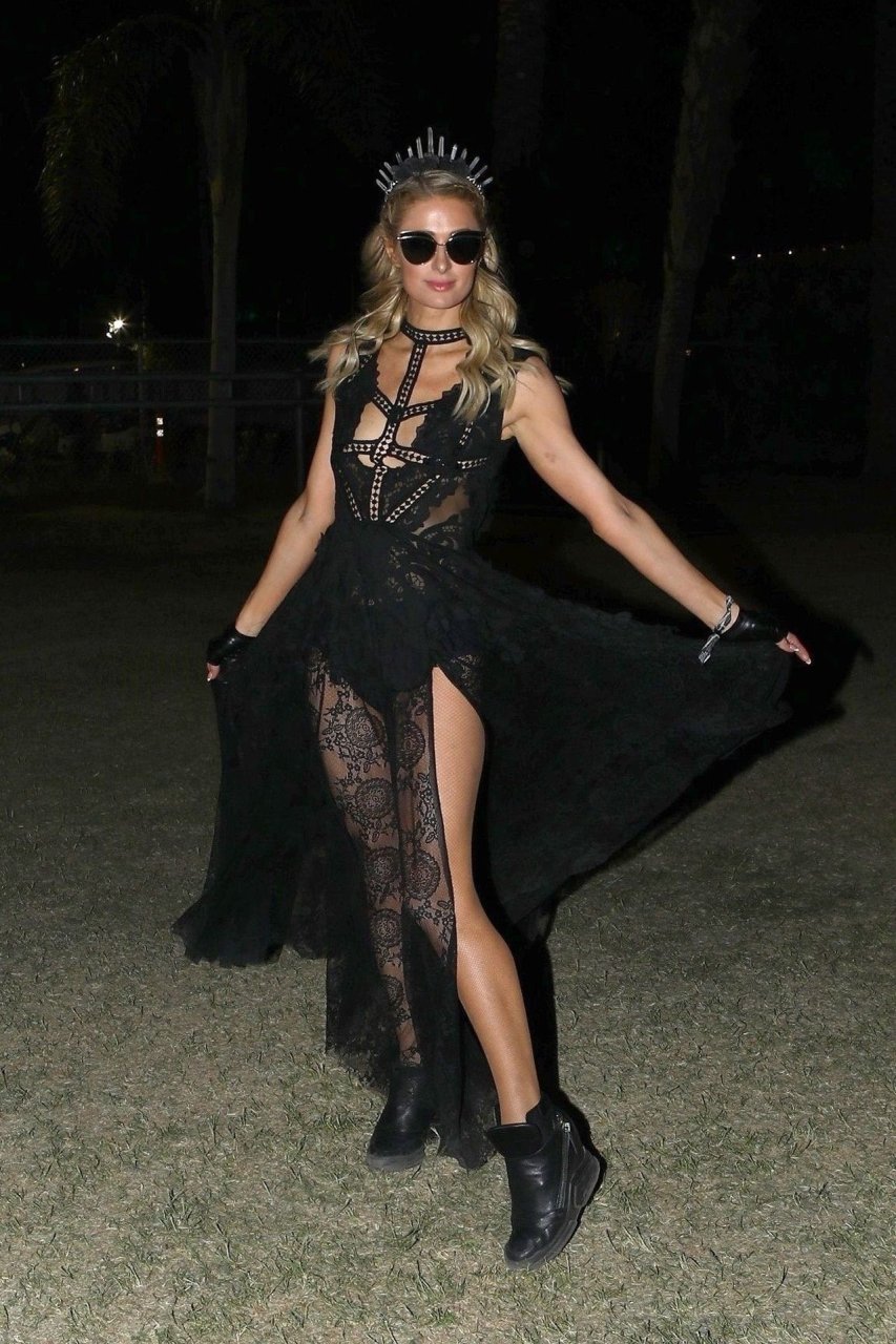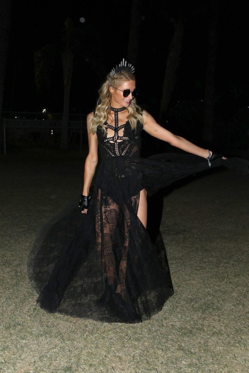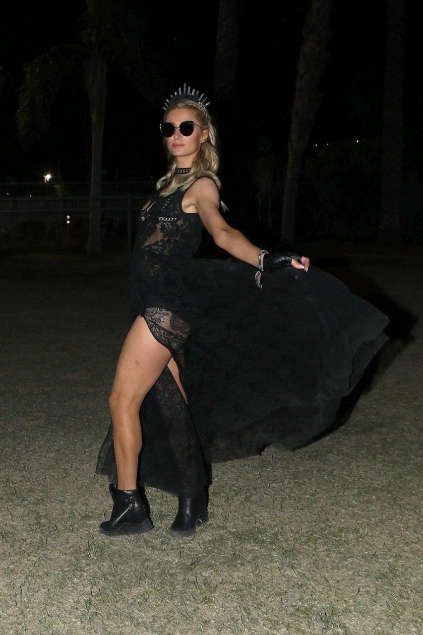 Paris Hilton, de pernas longas, opta por preto total na terceira noite do Festival de Música Coachella em Indio, 14/04/2019.