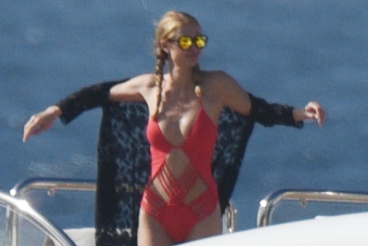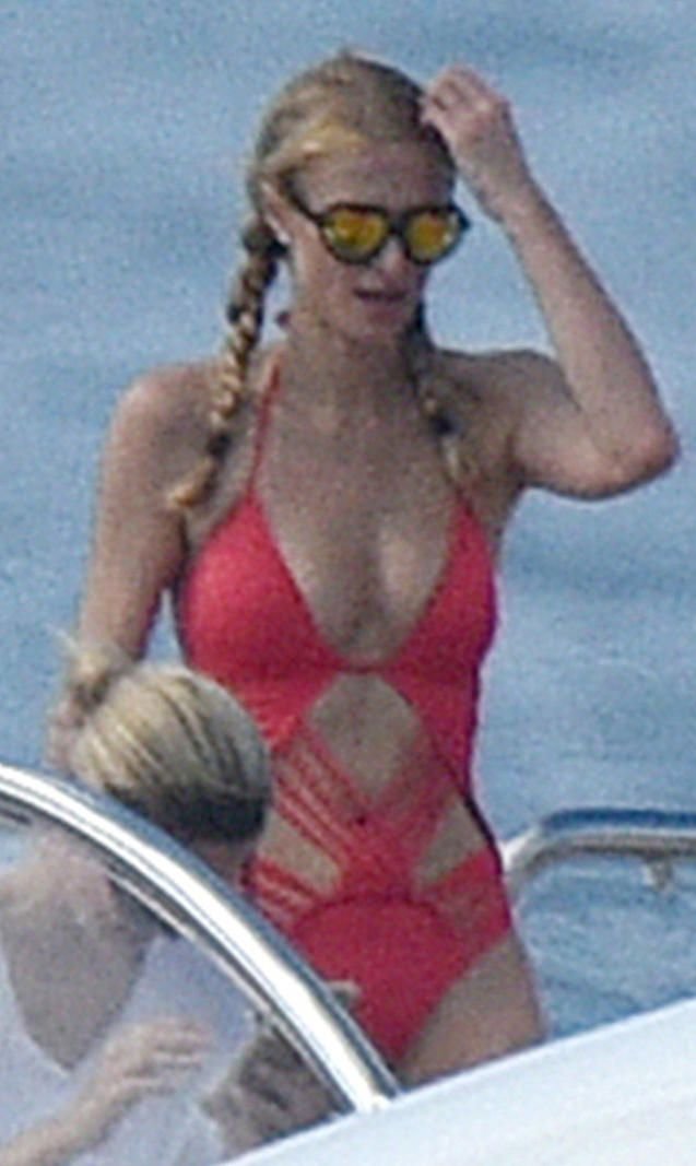 Novas fotos de paparazzi de Paris Hilton em um maiô vermelho, St. Barts, 21/12/15. Qualidade baixa :-( Paris Hilton é uma atriz e modelo americana. Idade 34 (17 de fevereiro de 1981).
