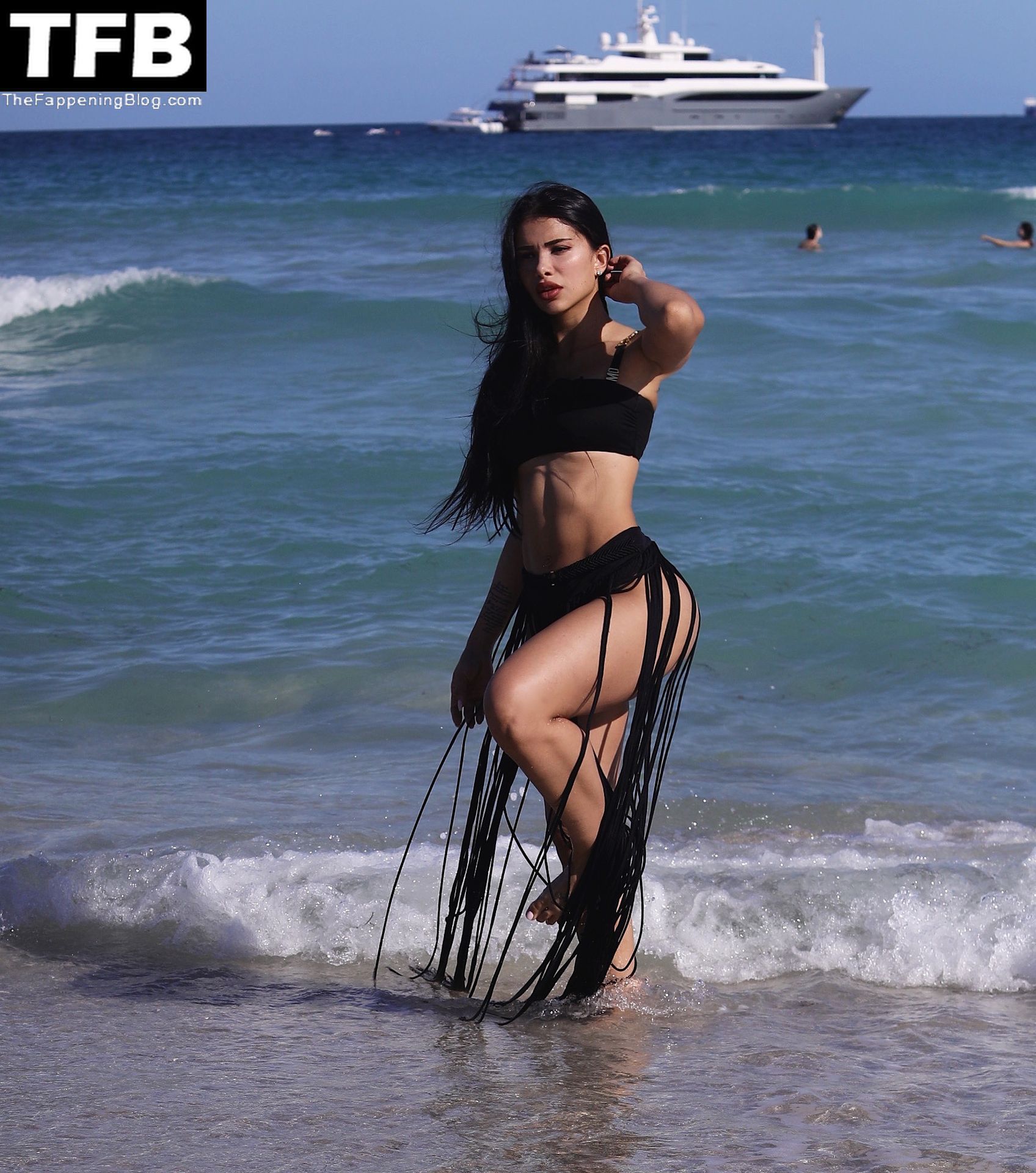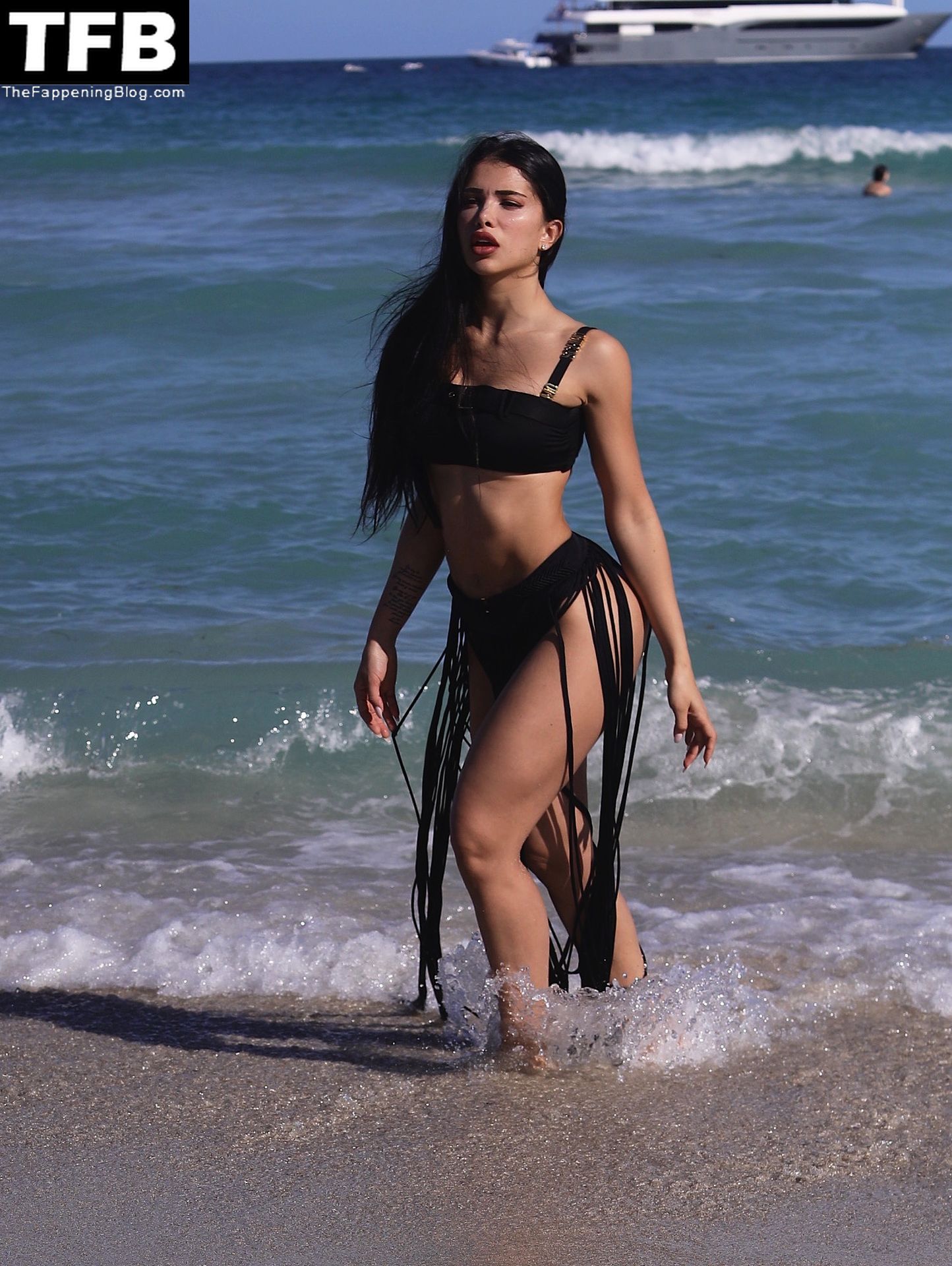 Atriz colombiana Paula Suarez exibe suas curvas em um biquíni preto esvoaçante sob o sol quente em Miami, 01/03/2022. Paula, que já namorou Ronaldo, aproveitou alguns raios na South Beach com seu maiô de grife.