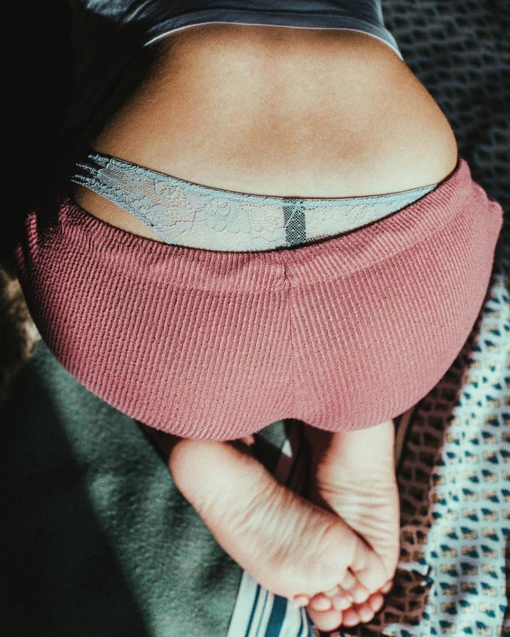 Eles certamente parecem iguais. Ênfase na área da virilha, mas sem mostrar nenhuma rachadura