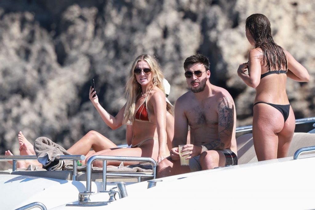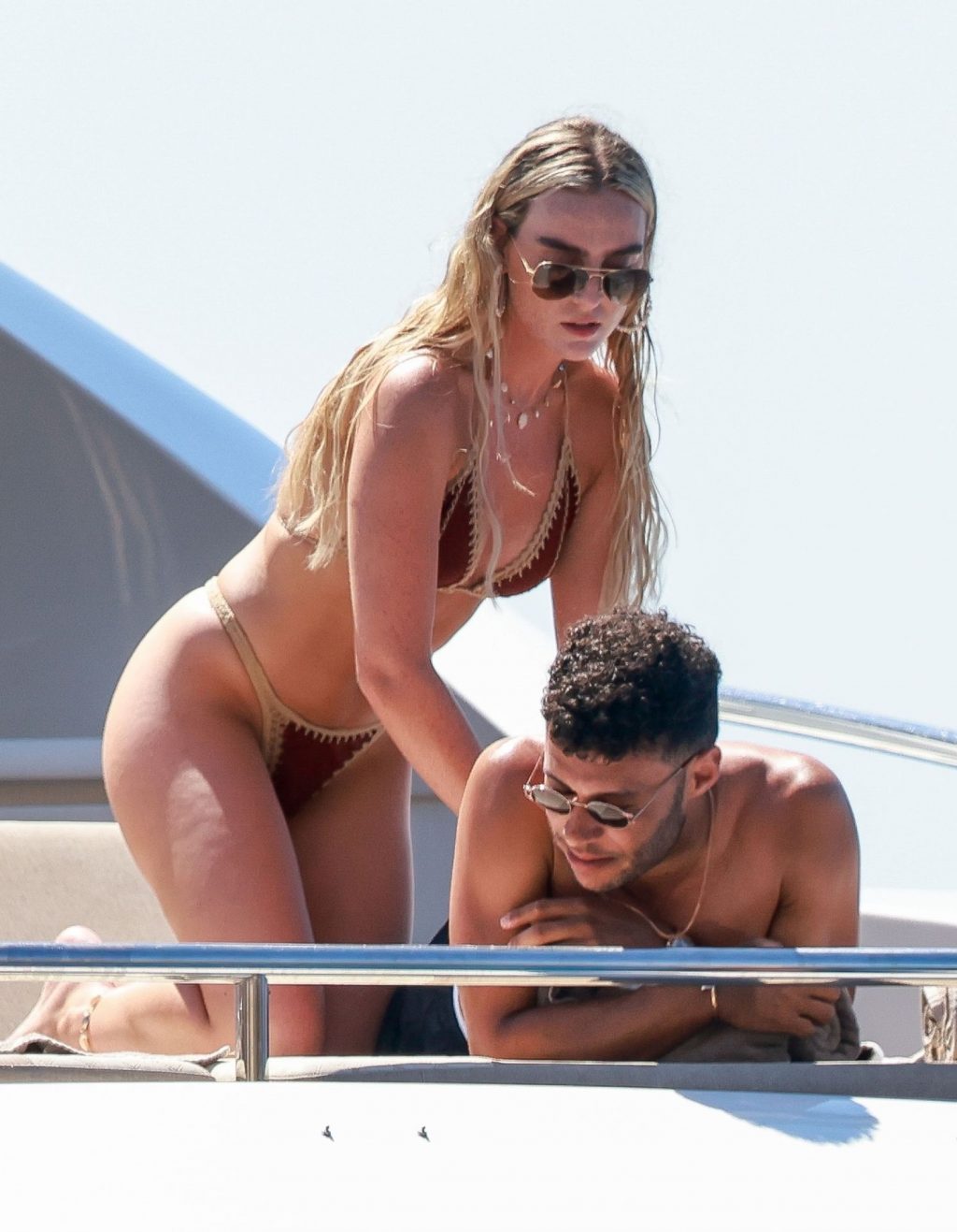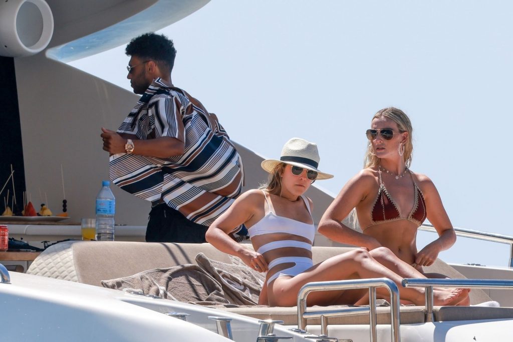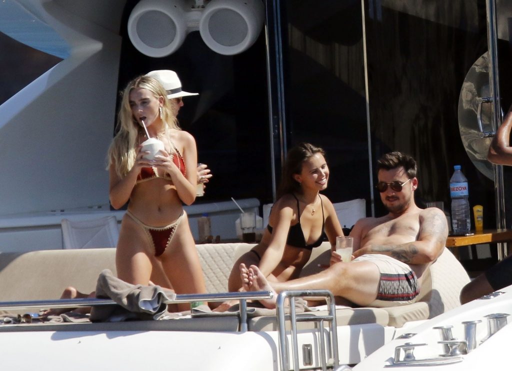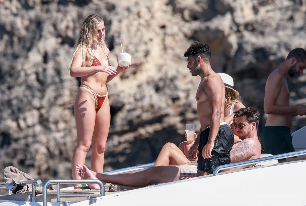 “A estrela do “Little Mix” Perrie Edwards é fotografada exibindo seus belos seios e bumbum enquanto relaxa com seus amigos em um iate de luxo durante férias em Ibiza, 08/09/2020.