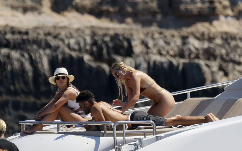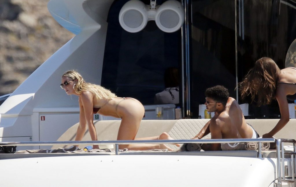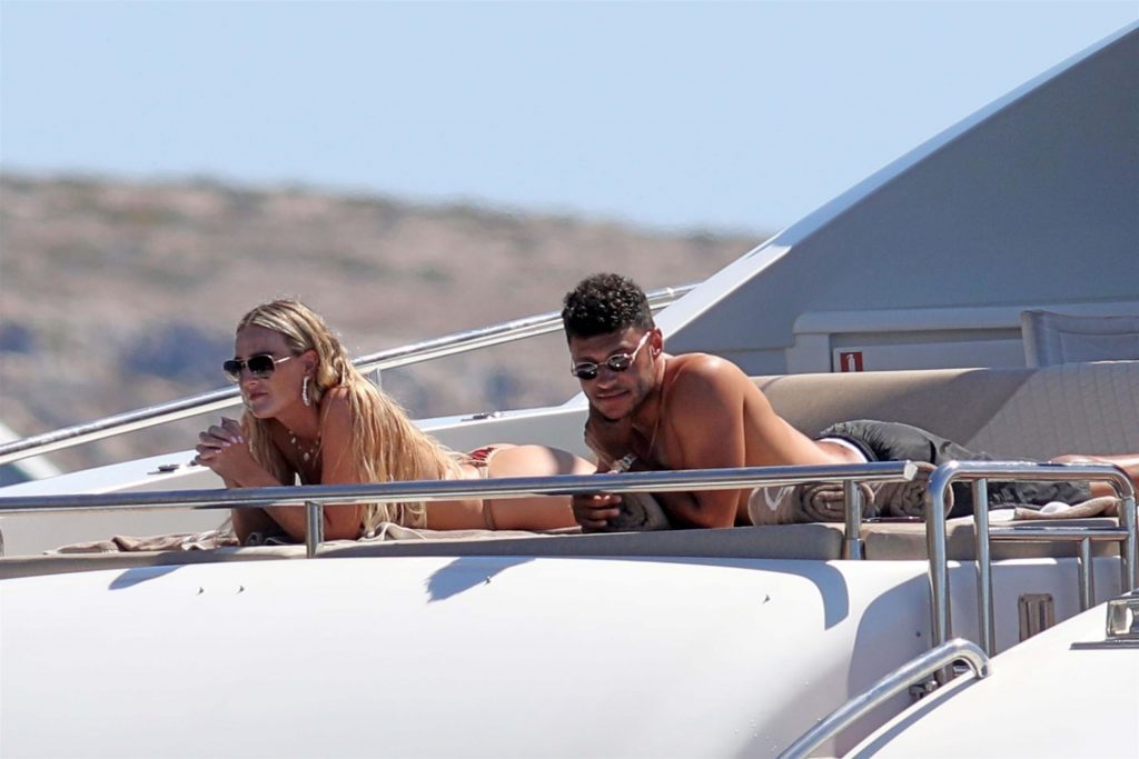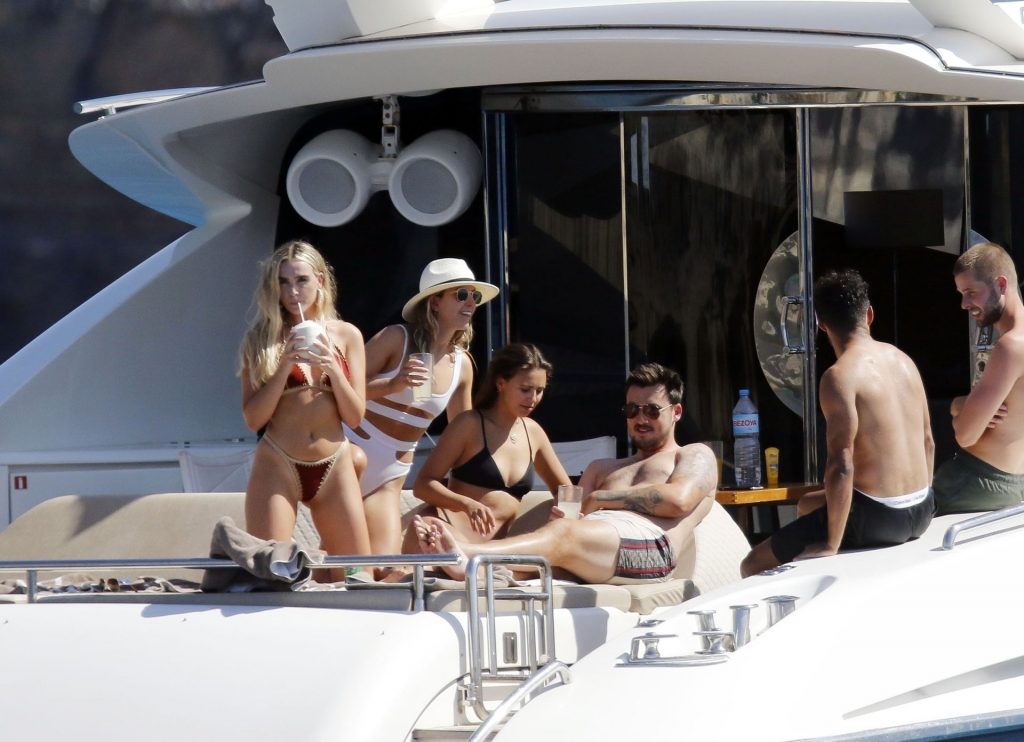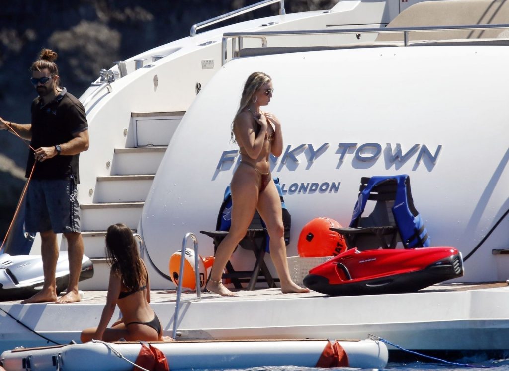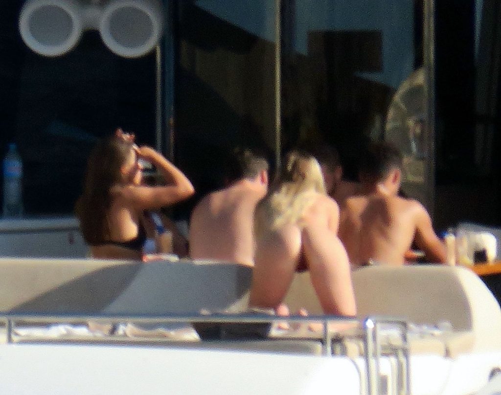 “A estrela do “Little Mix” Perrie Edwards é fotografada exibindo seus belos seios e bumbum enquanto relaxa com seus amigos em um iate de luxo durante férias em Ibiza, 08/09/2020.