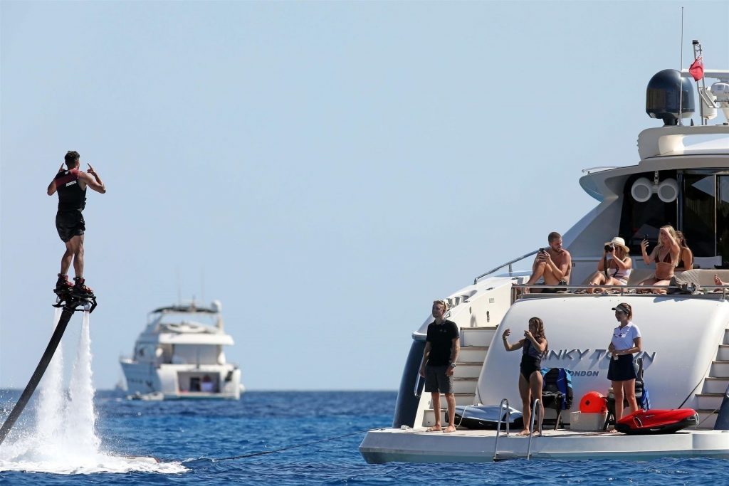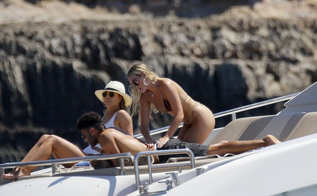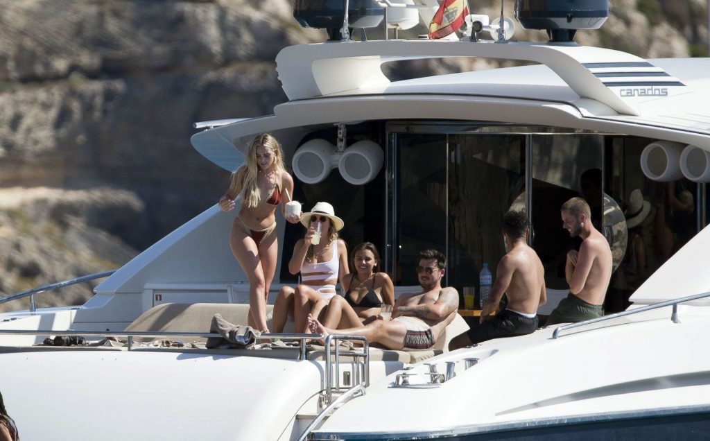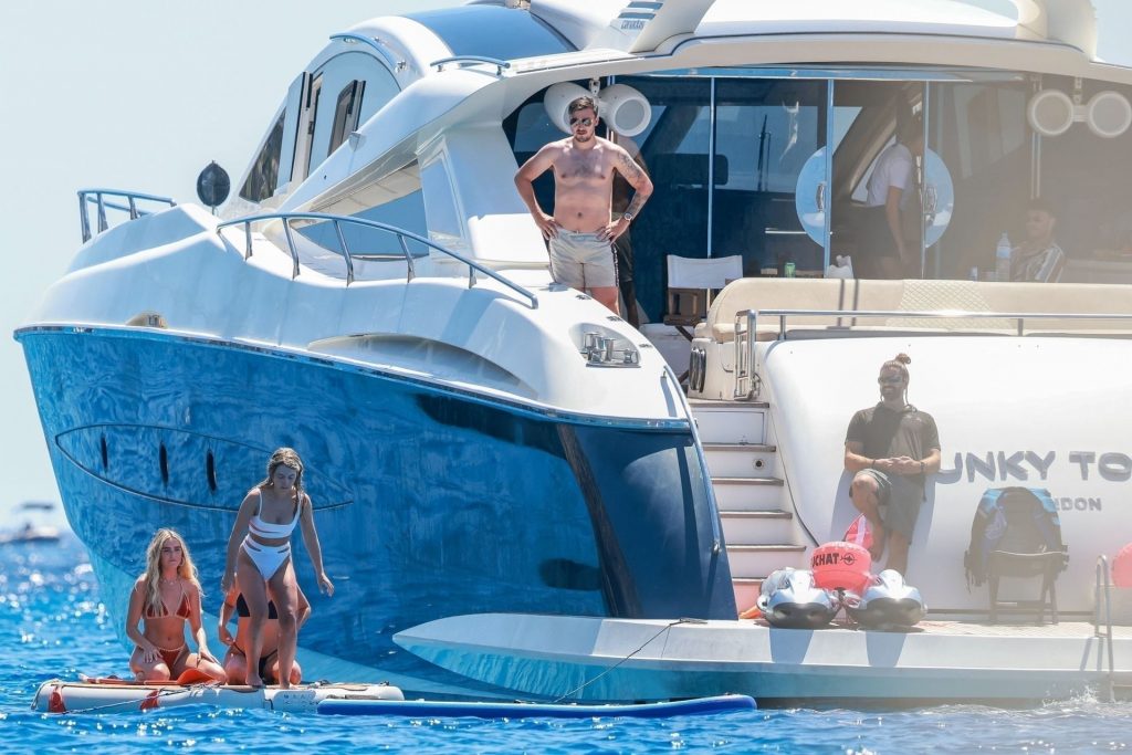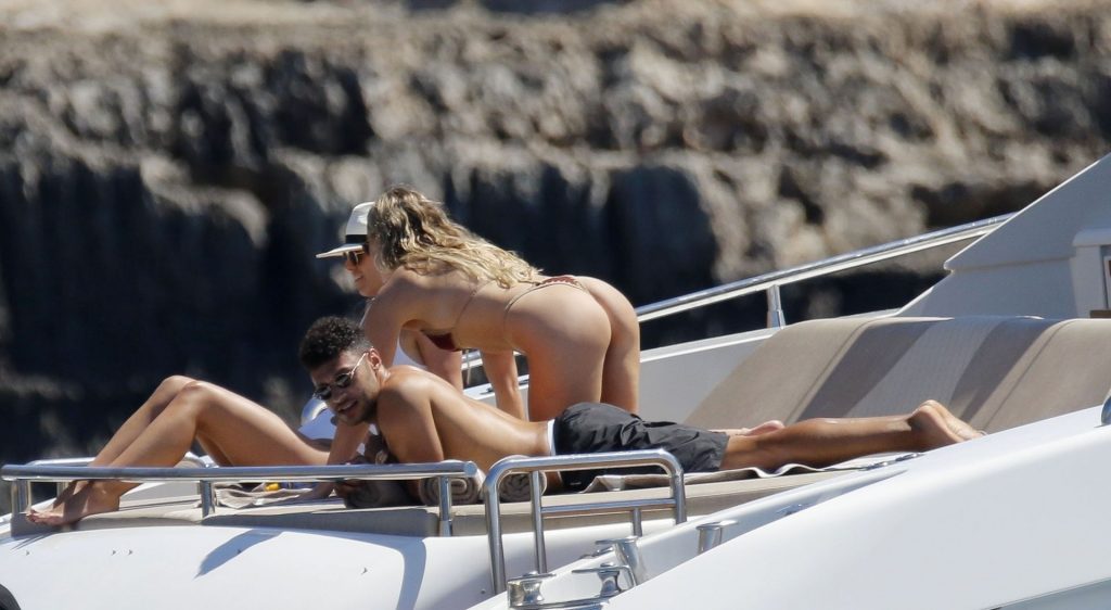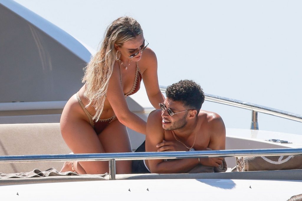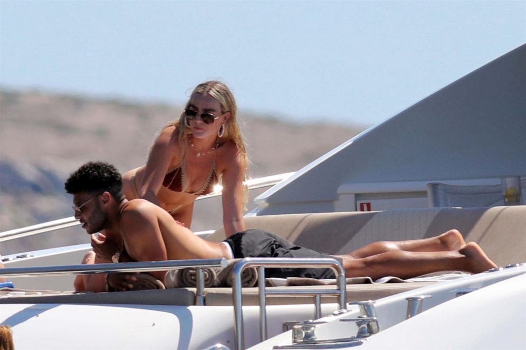 “A estrela do “Little Mix” Perrie Edwards é fotografada exibindo seus belos seios e bumbum enquanto relaxa com seus amigos em um iate de luxo durante férias em Ibiza, 08/09/2020.