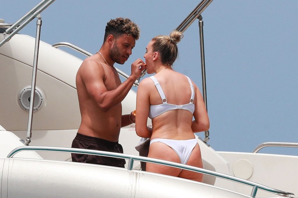 Perrie Edwards e Alex Oxlade-Chamberlain foram vistos de férias em Ibiza, 08/06/2019. Perrie Edwards exibiu seu corpo sexy em um biquíni branco no barco.