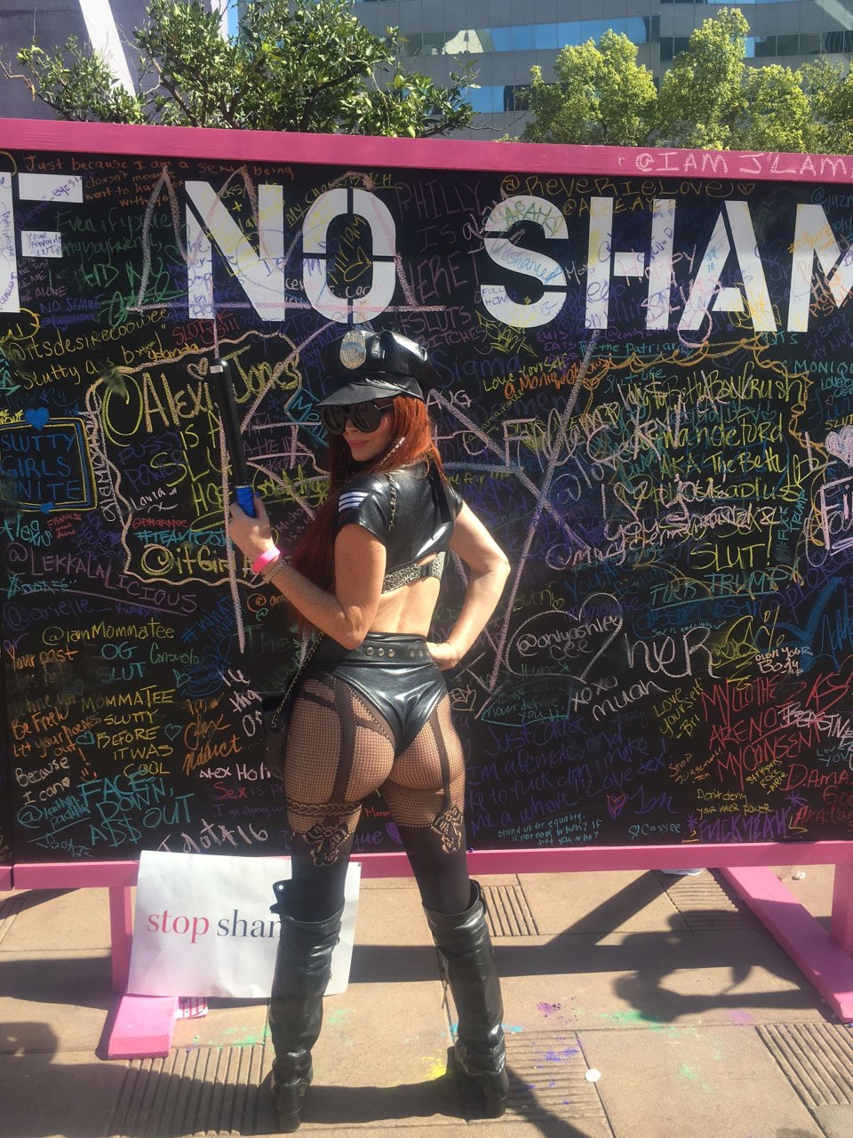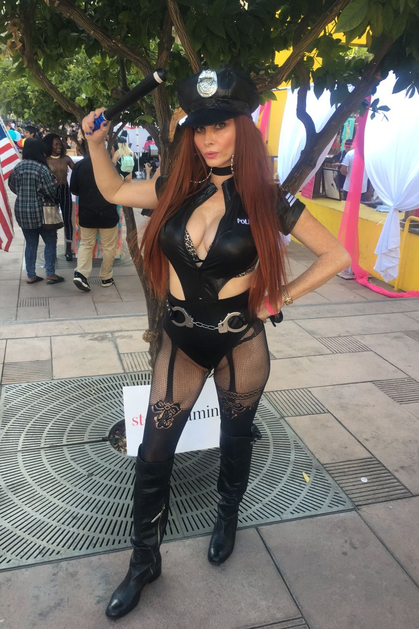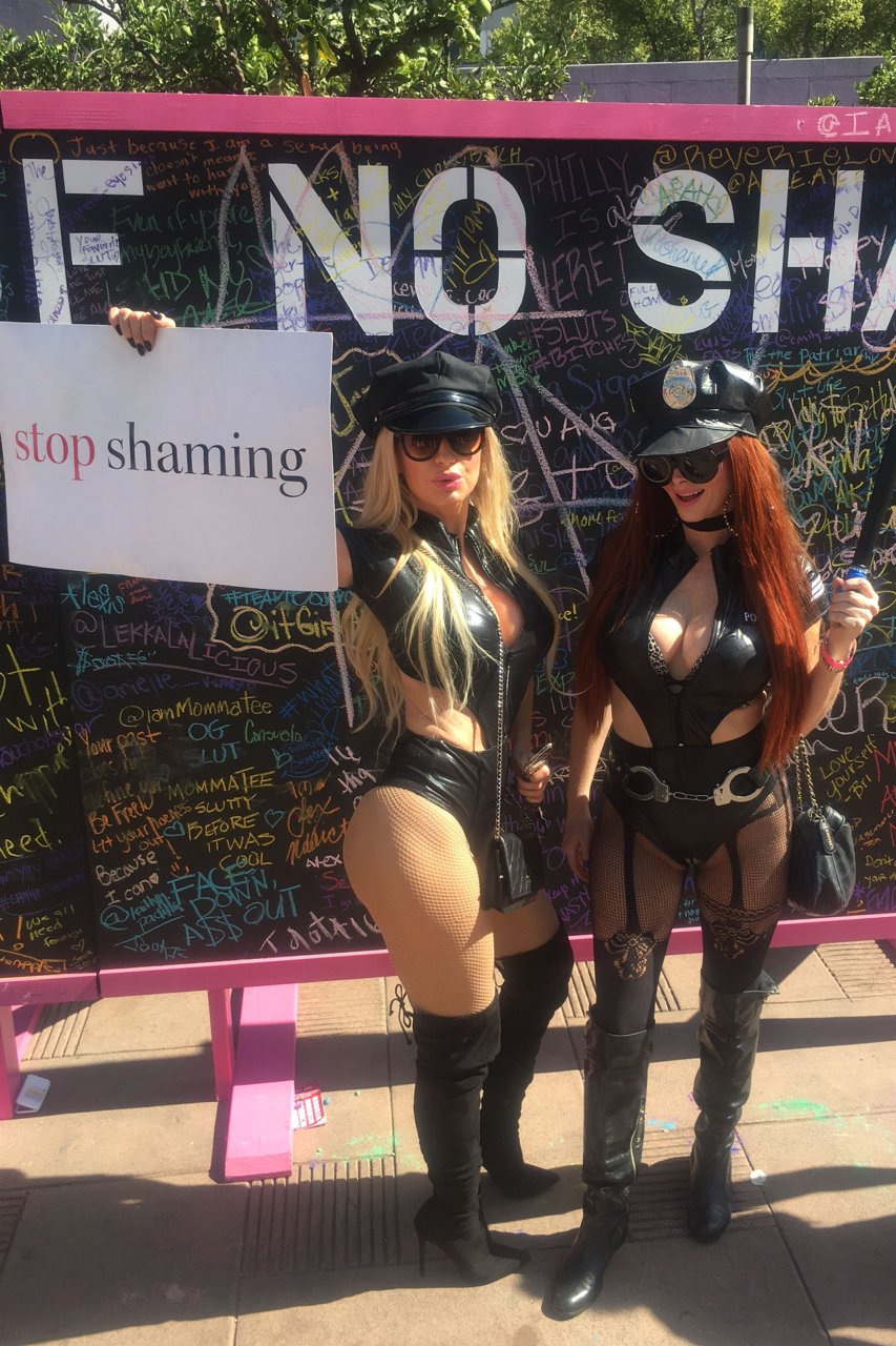 Phoebe Price e Ana Braga Sexy exibem seus trajes de policial enquanto participam do Amber Rose SlutWalk 2016 no Pershing Square em Los Angeles, 01/10/2016. Mamães rigorosas!