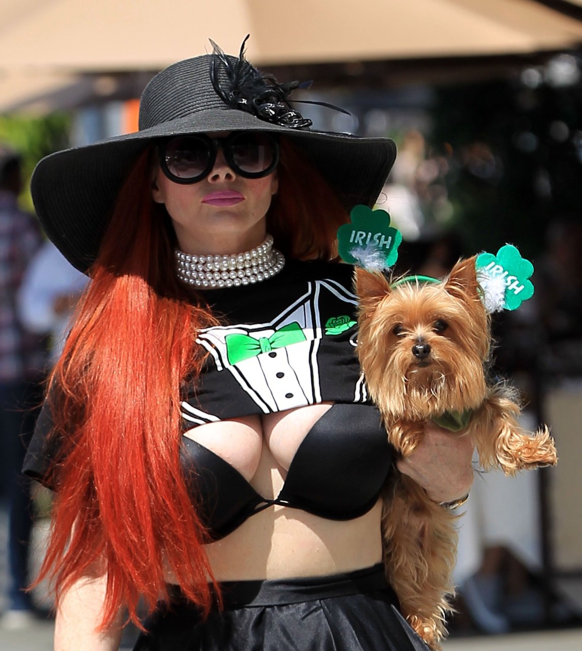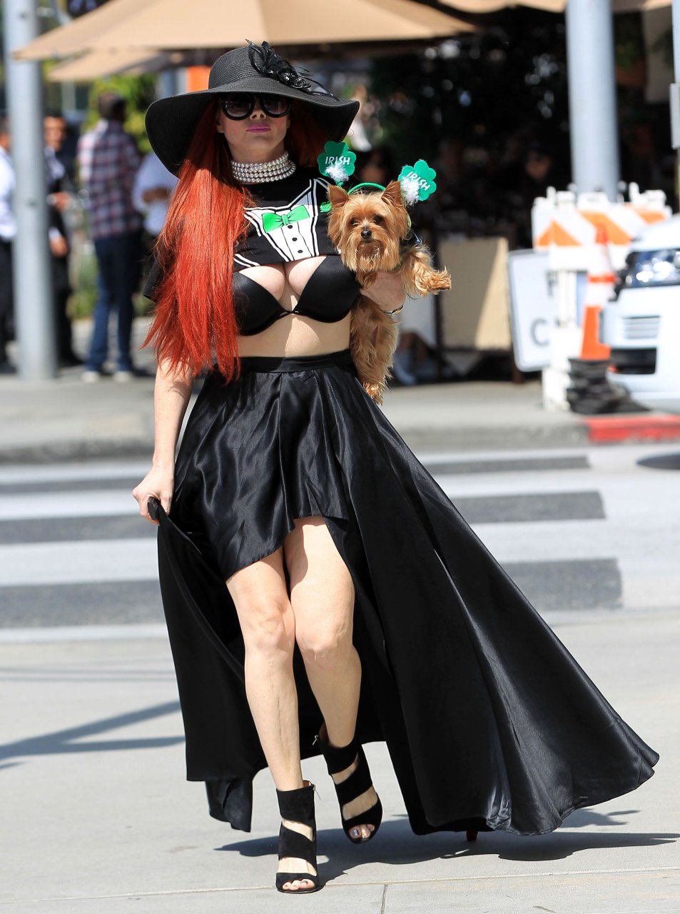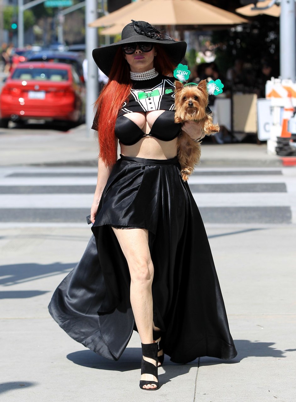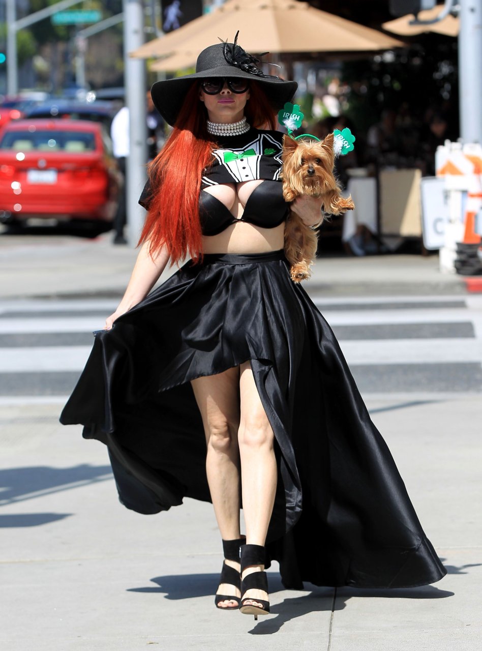 Phoebe Price foi vista passeando com seu pequeno e fofo cachorro em Beverly Hills, 16/03/2017. Phoebe Price é uma atriz americana (Broken Blood – 2013). Idade – 44 (nascida em 27 de setembro de 1972).