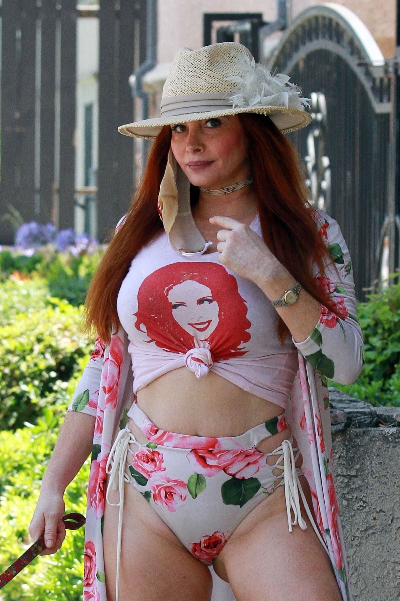Atriz Phoebe Price mostra um pouco de pele enquanto passeia com seu cachorro esta tarde (2020). Phoebe exibiu seu bumbum para a câmera.