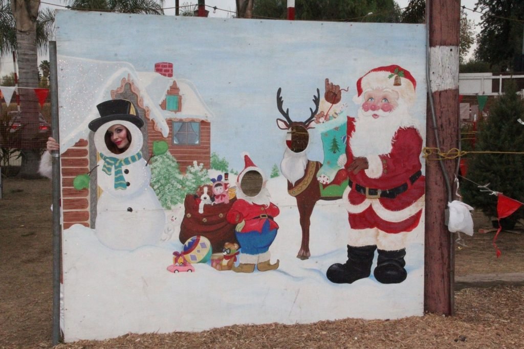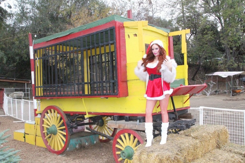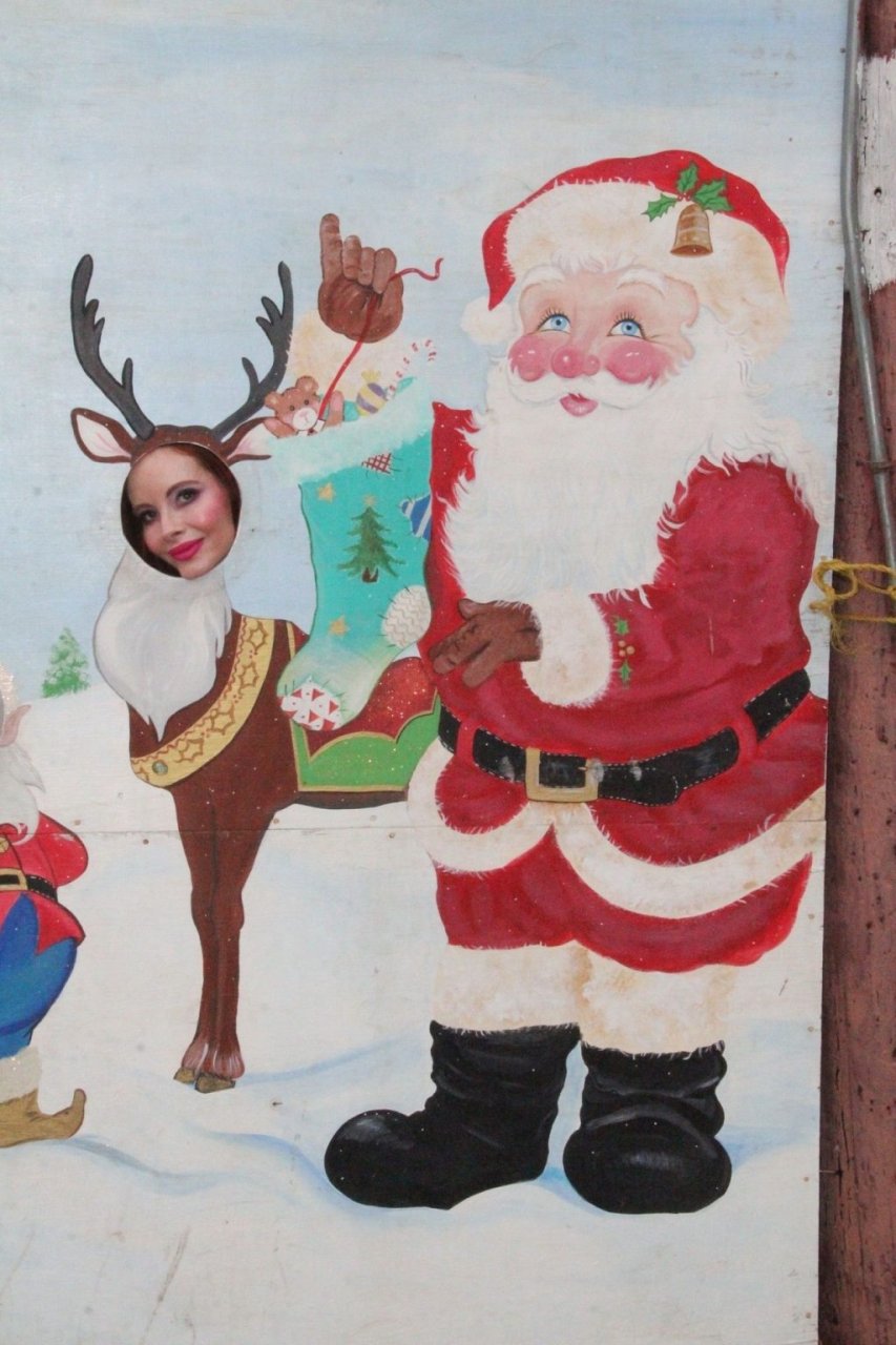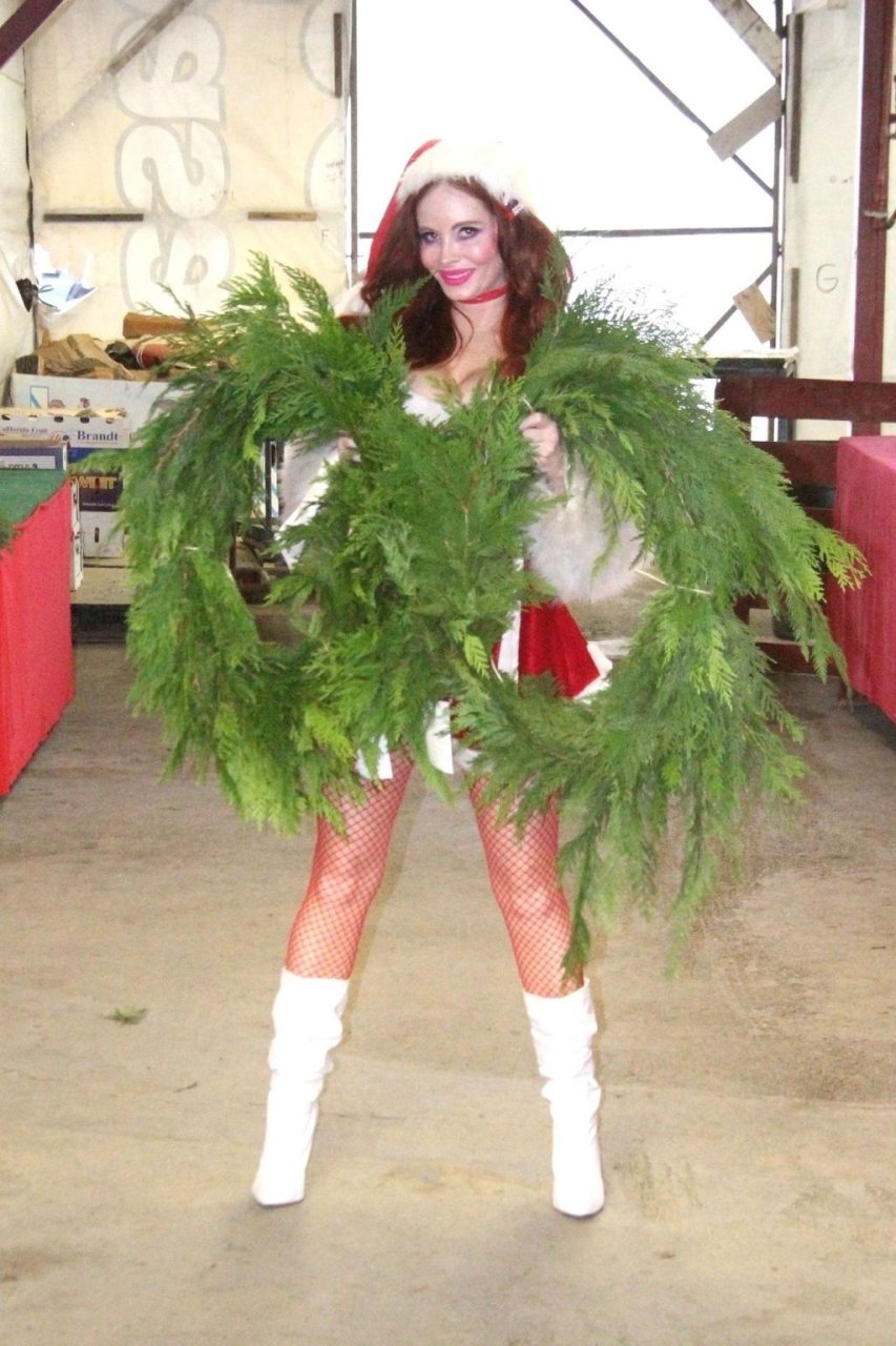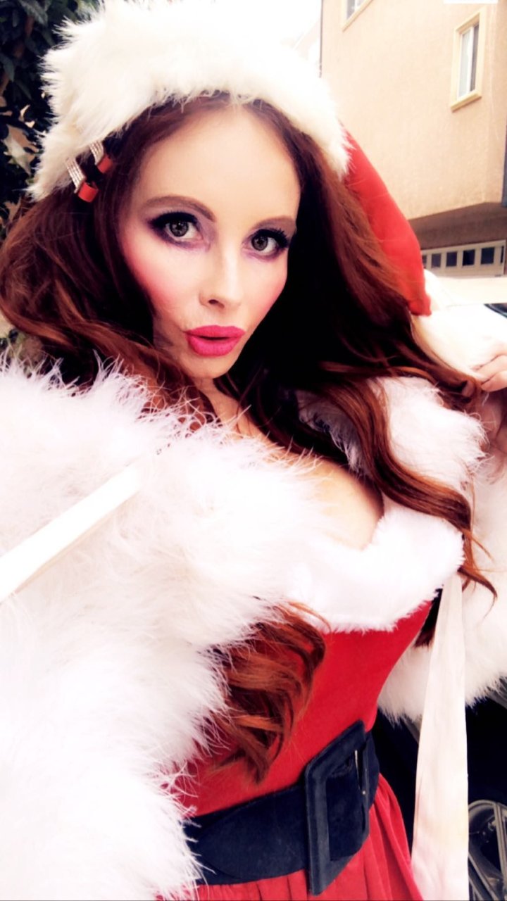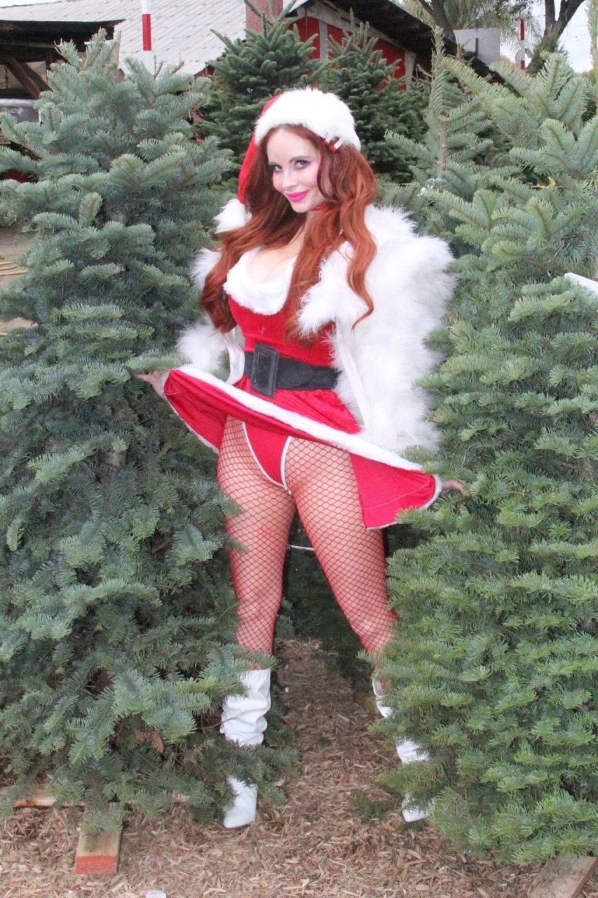 Phoebe Price entra no espírito natalino enquanto se veste de Papai Noel em uma fazenda de árvores de Natal em Los Angeles, 14/12/2018.