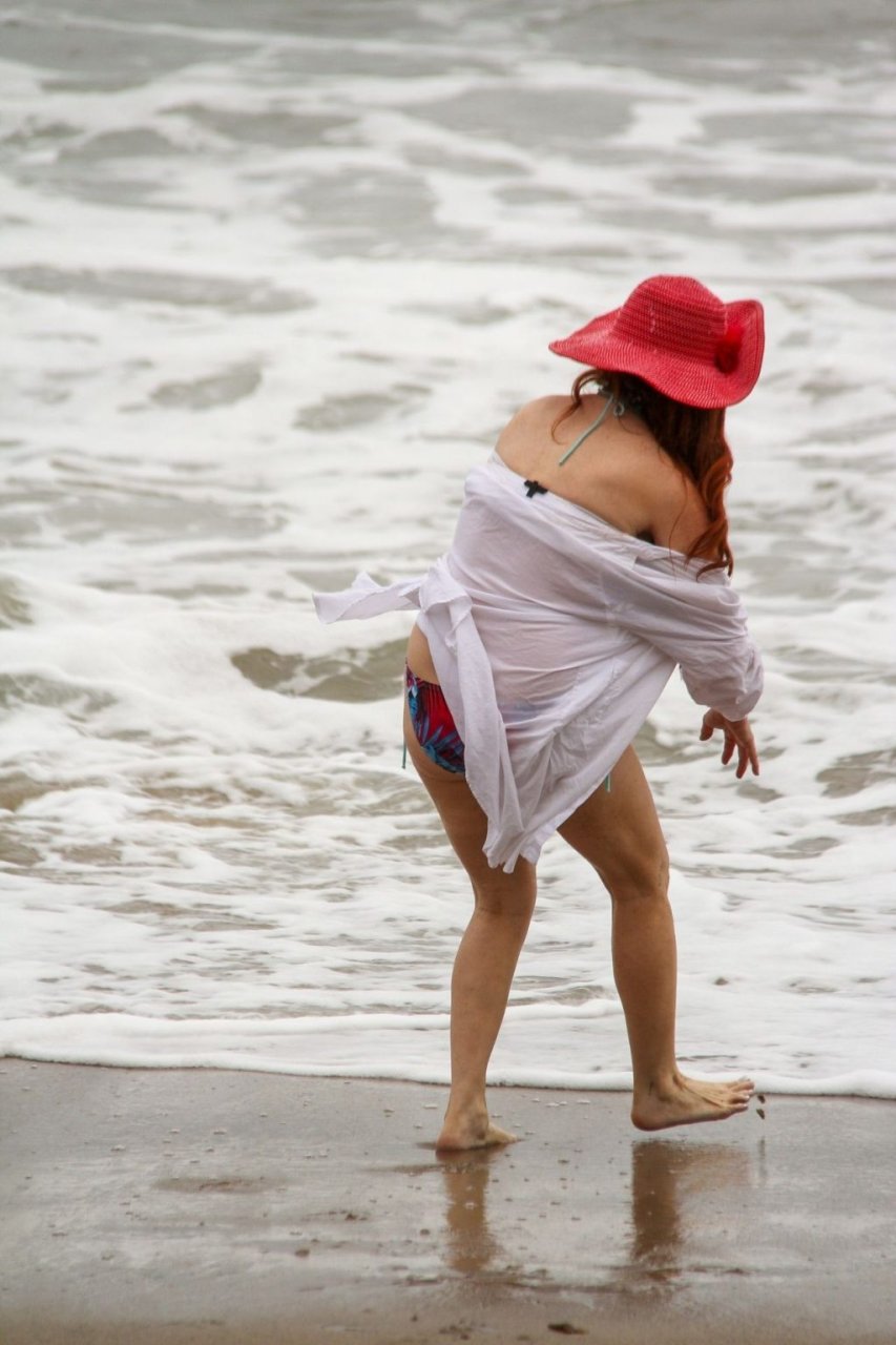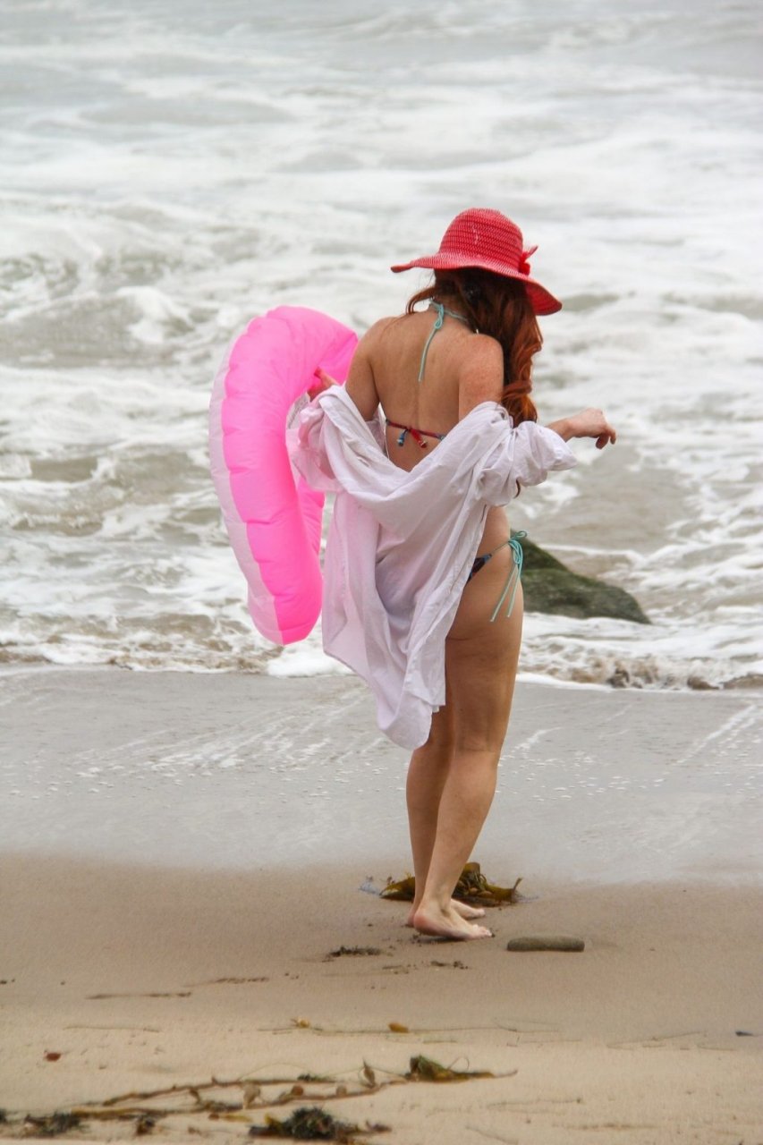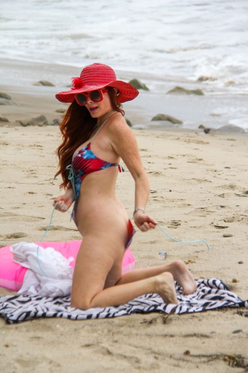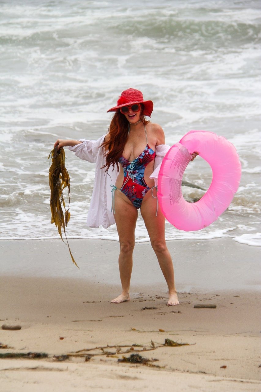 A aspirante a atriz Phoebe Price está aproveitando o clima quente com uma viagem às praias de Malibu, 26/06/2019. A atriz de 46 anos apresenta uma série de poses sensuais enquanto se despe durante a diversão à beira-mar.