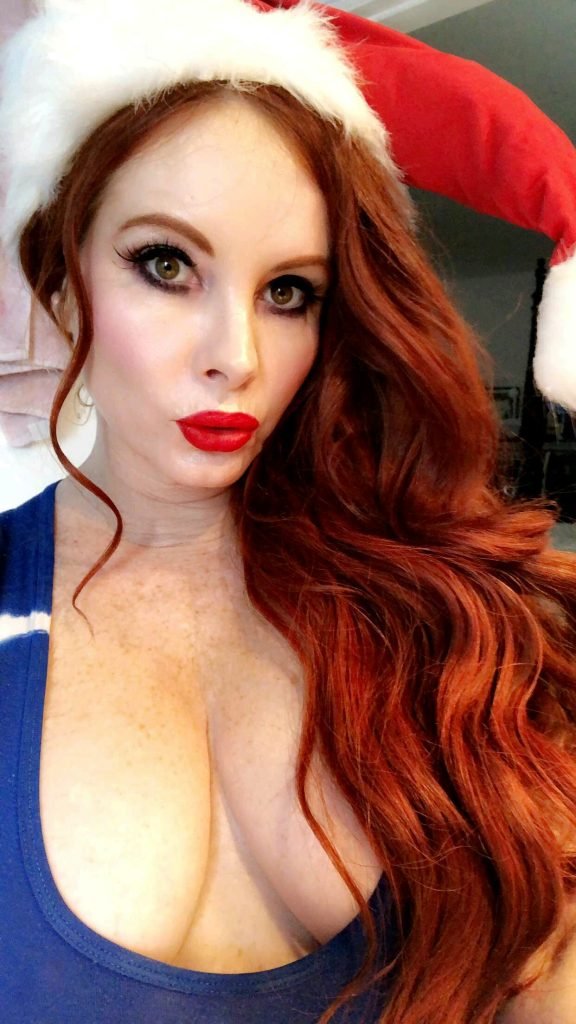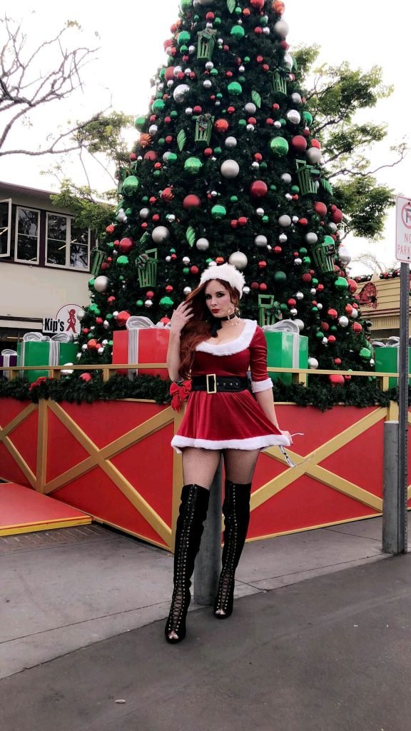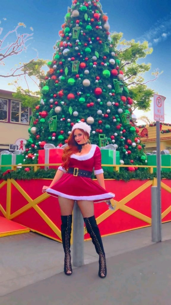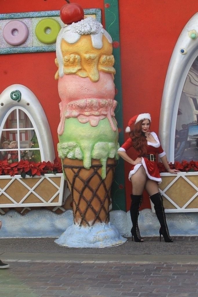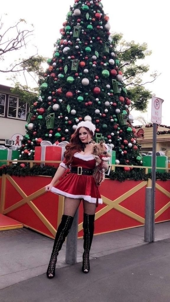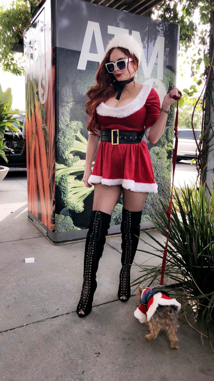 Atriz Phoebe Price (45) veste uma fantasia inapropriada de Papai Noel na Oficina do Papai Noel no The Grove em Los Angeles, 10/12/2017.