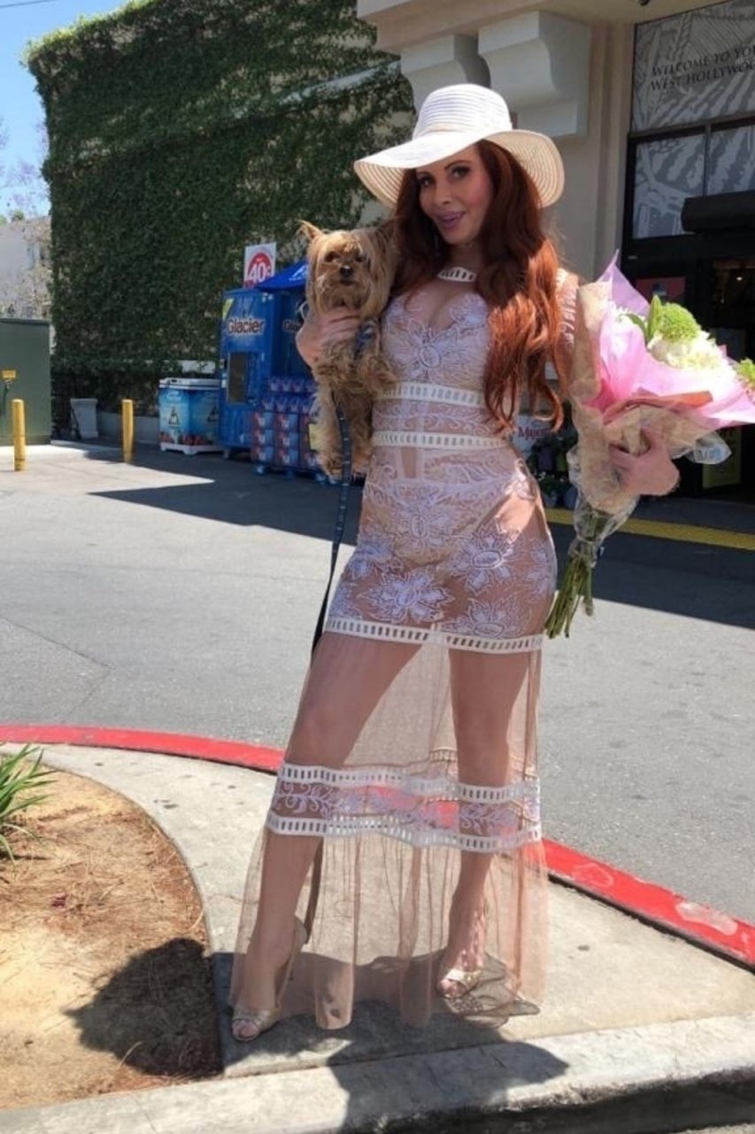 Phoebe Price compra flores para sua mãe no Dia das Mães em Los Angeles, 12/05/2019. A eterna buscadora de atenção, aspirante a atriz, manteve a classe como sempre, usando um vestido transparente com calcinha de renda.
