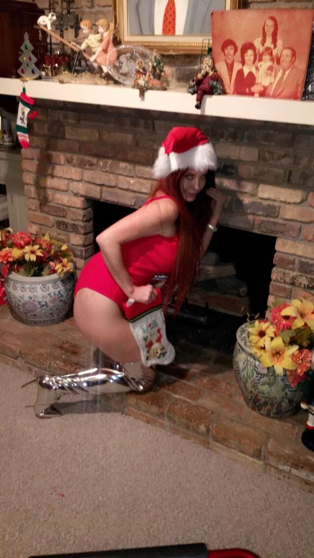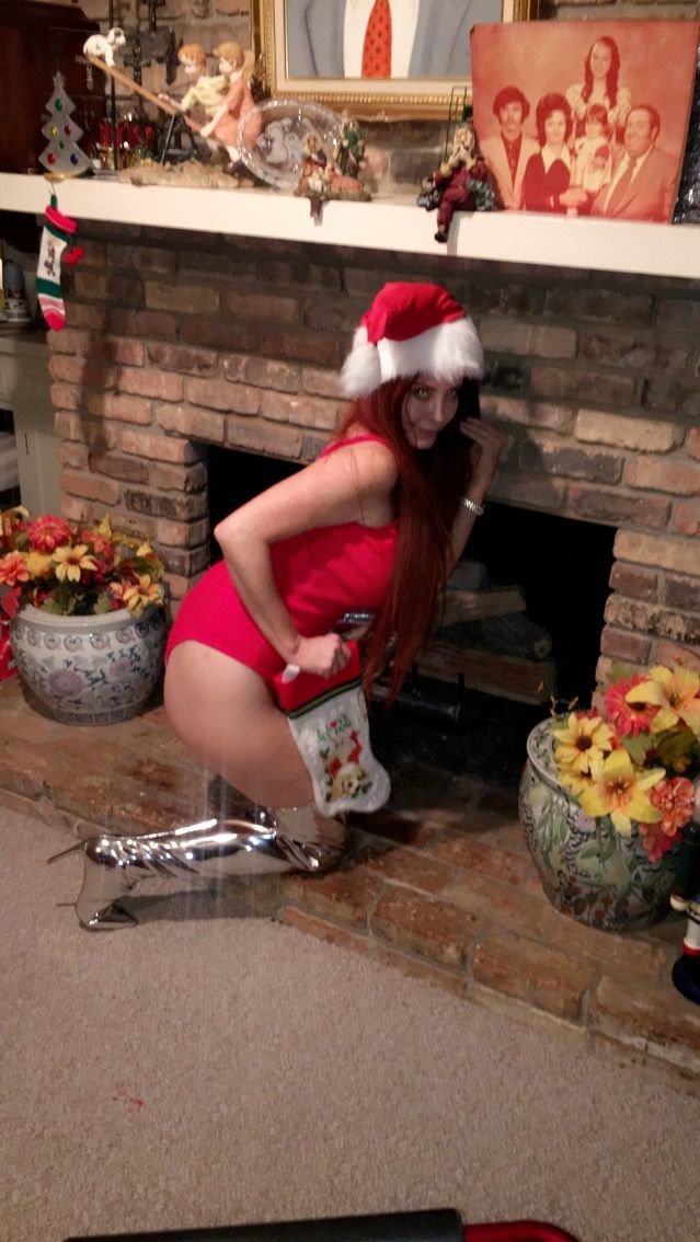 Phoebe Price posa com fantasias sensuais para o Natal perto da lareira, 19/12/2016. Phoebe Price é uma atriz (Broken Blood (2013)) do Alabama. Idade: 44 (27 de setembro de 1972).