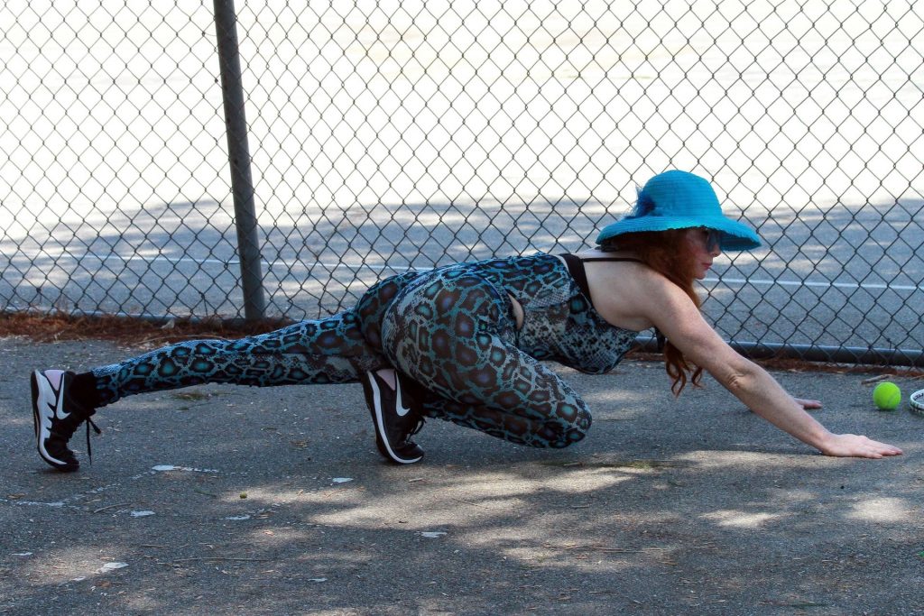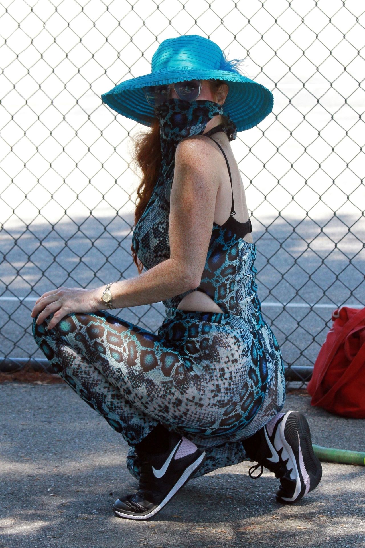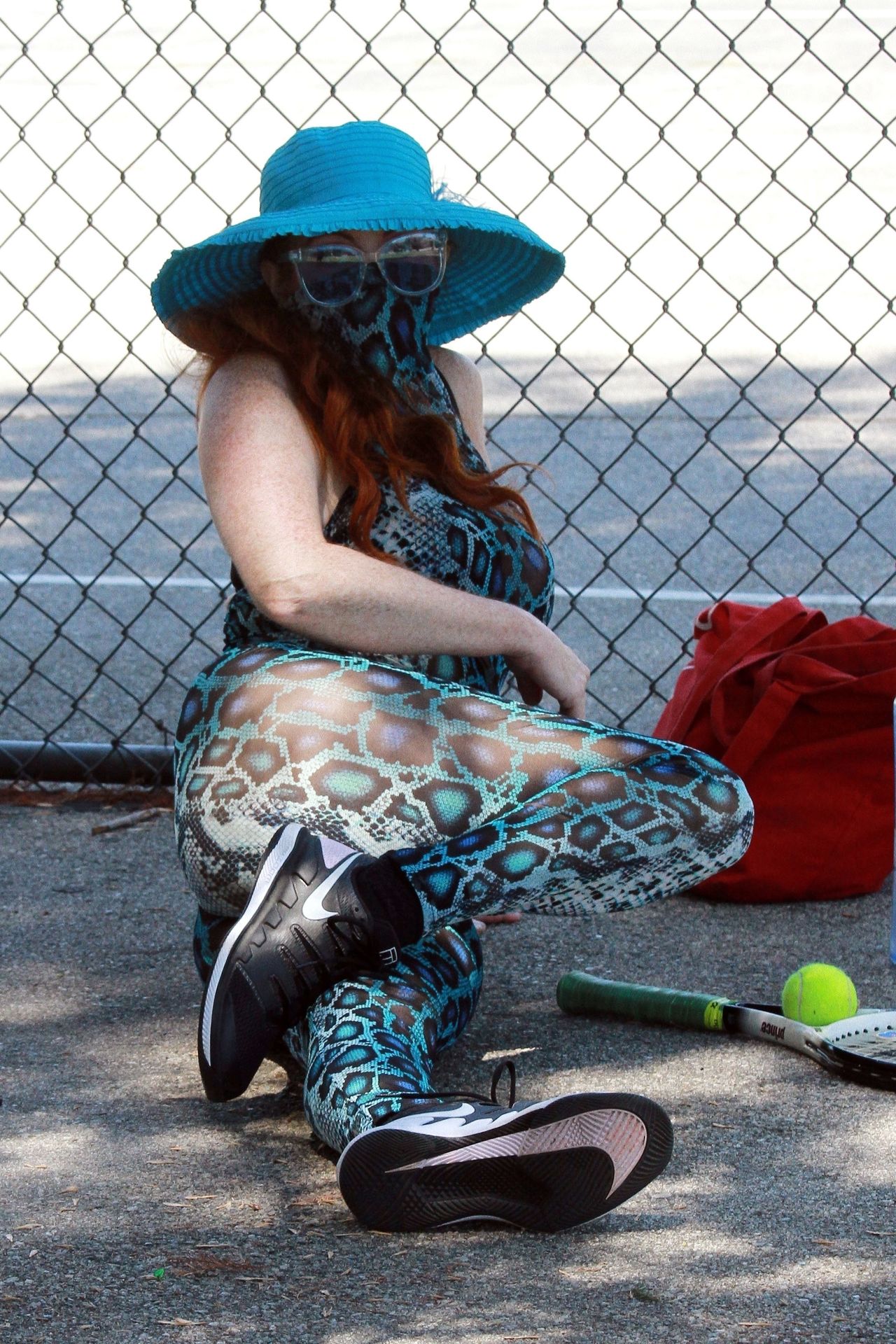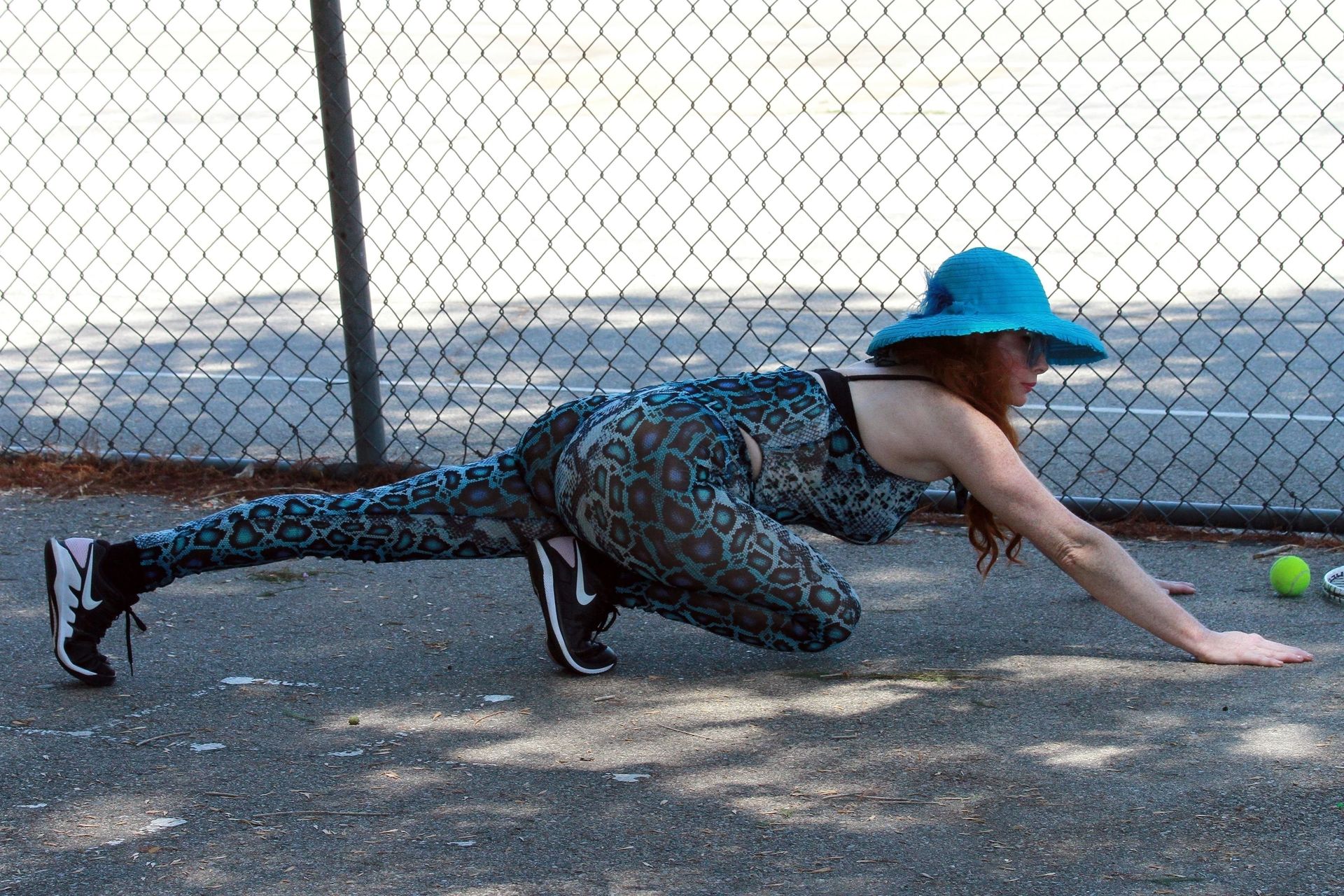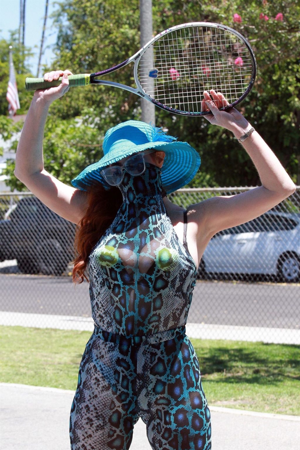 Phoebe Price usa um conjunto turquesa com estampa animal para seu treino (42 fotos)