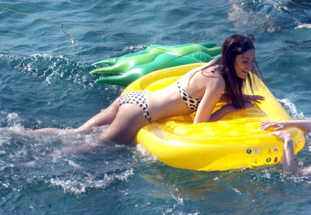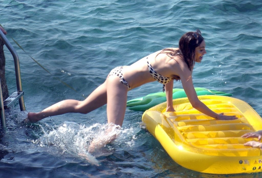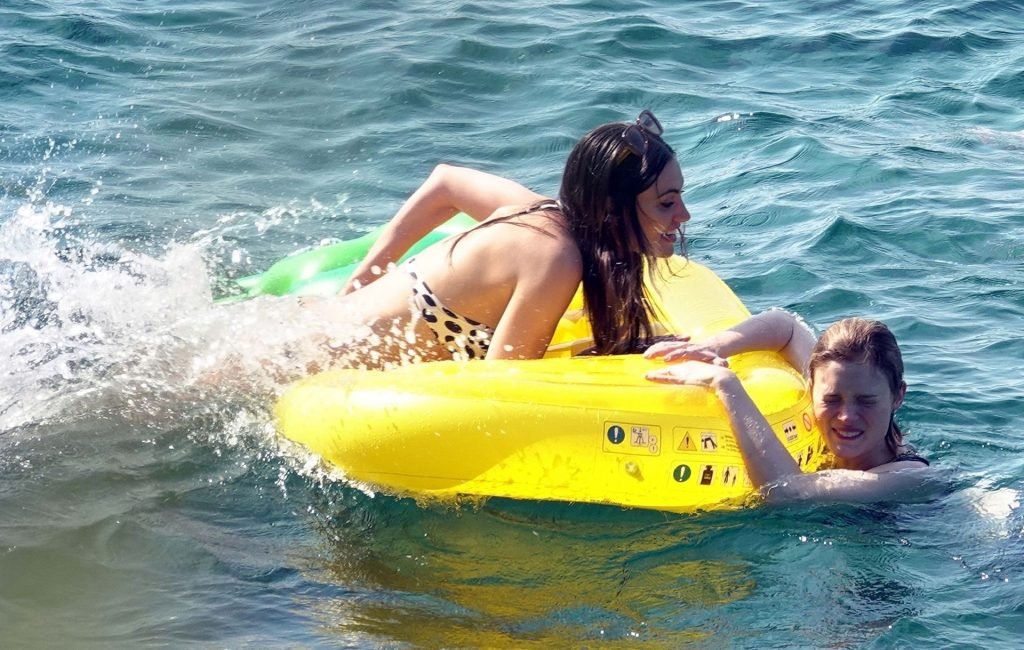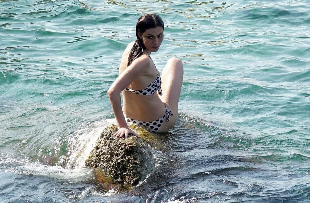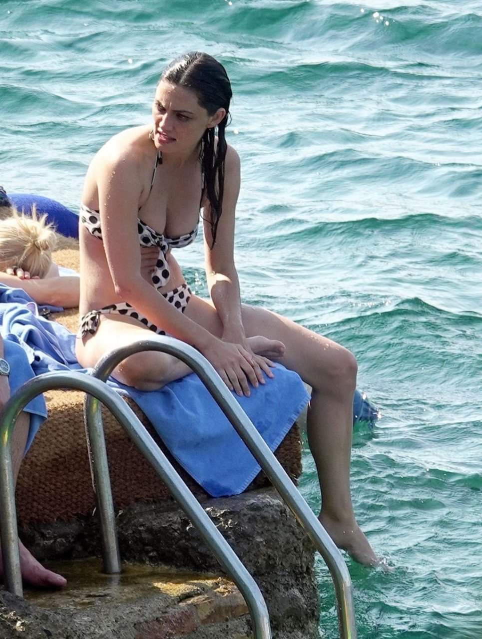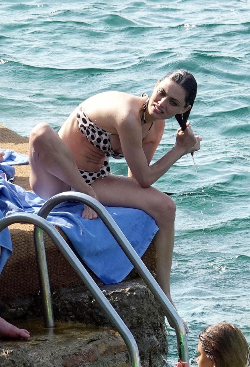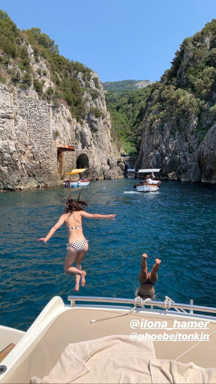 A atriz e modelo australiana de “Vampire Diaries”, Phoebe Tonkin, aproveita um mergulho no mar com amigos enquanto está de férias em Capri, 29/06/2019.