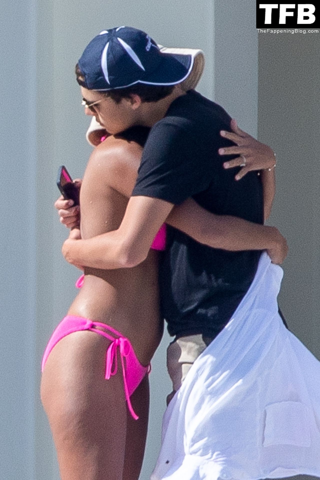 Pia Whitesell (Miller) exibe seu físico incrível em um biquíni rosa que destaca o decote enquanto continua suas férias em família em Cabo San Lucas, México, 28/03/2022.