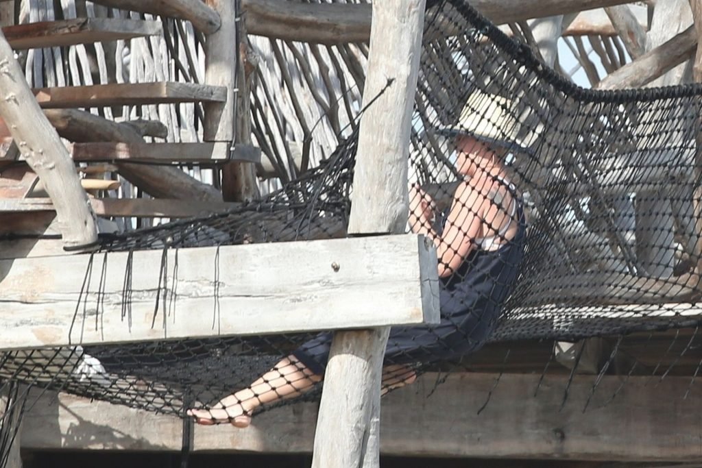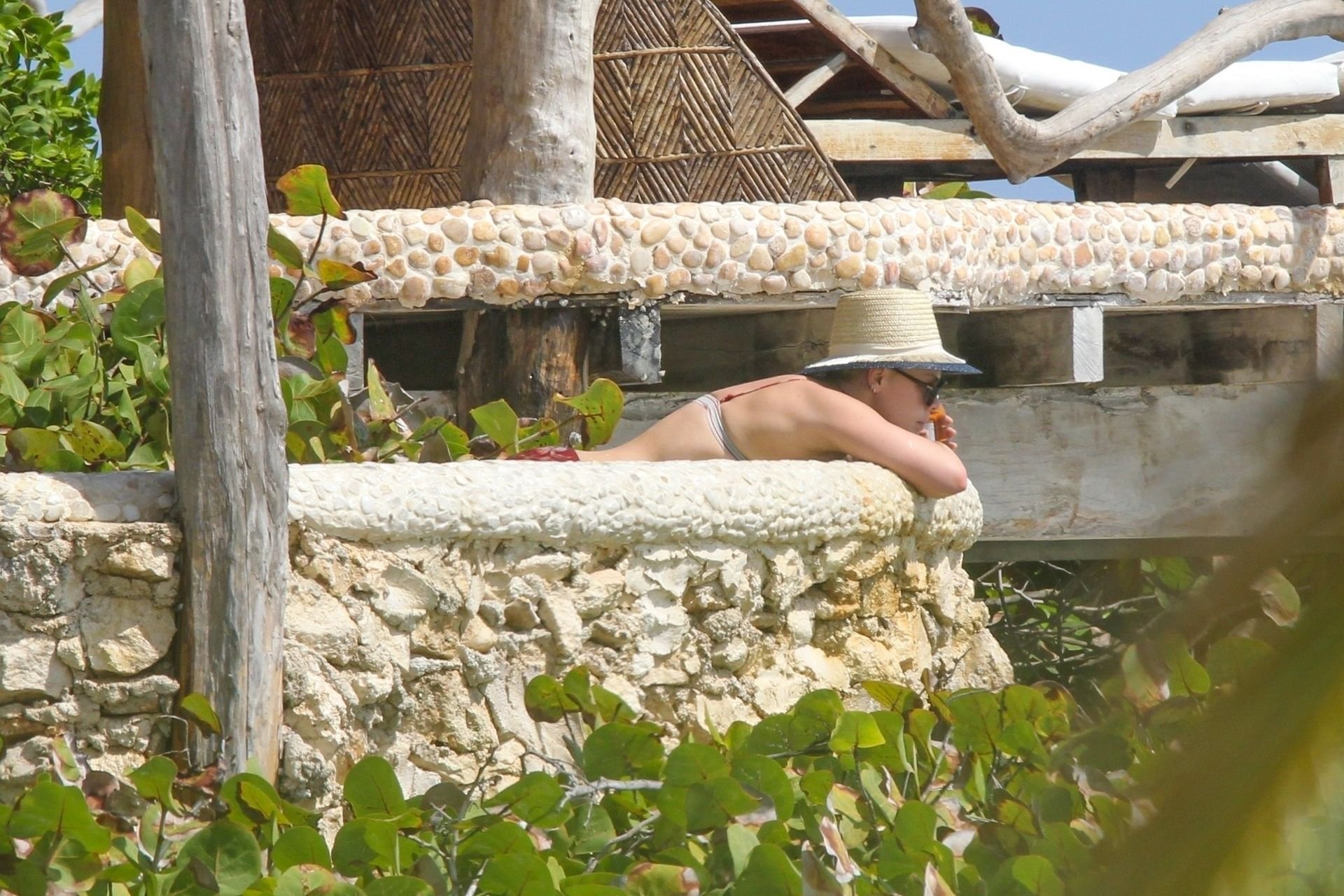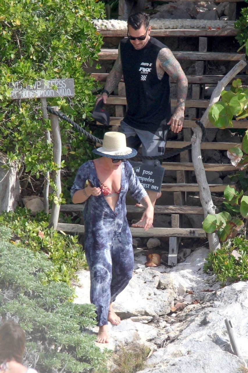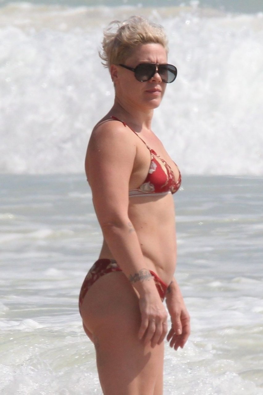 A cantora P!nk e Carey Hart estão aproveitando a boa vida enquanto bebem cerveja e tomam sol em Tulum, México, 25/02/2019.