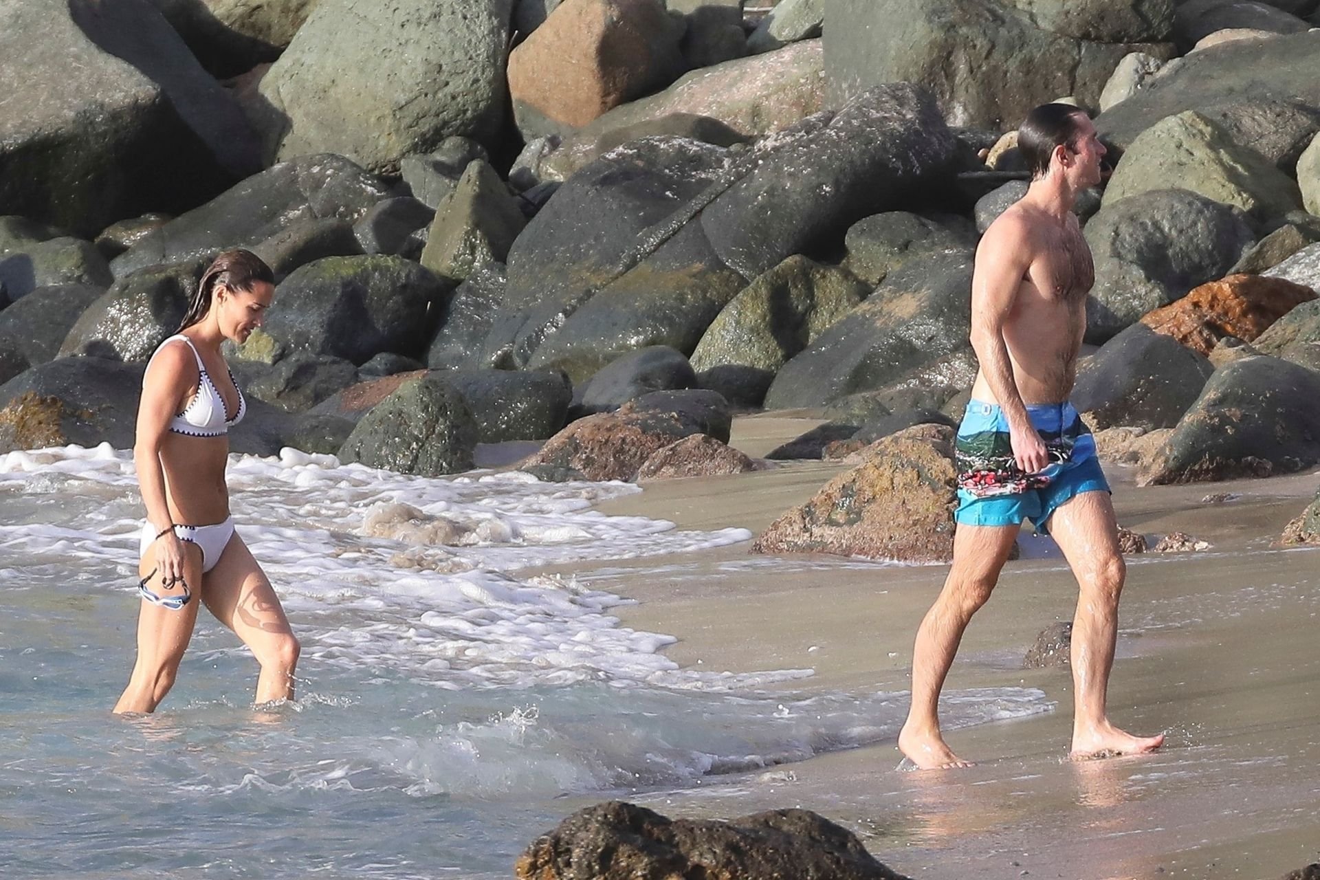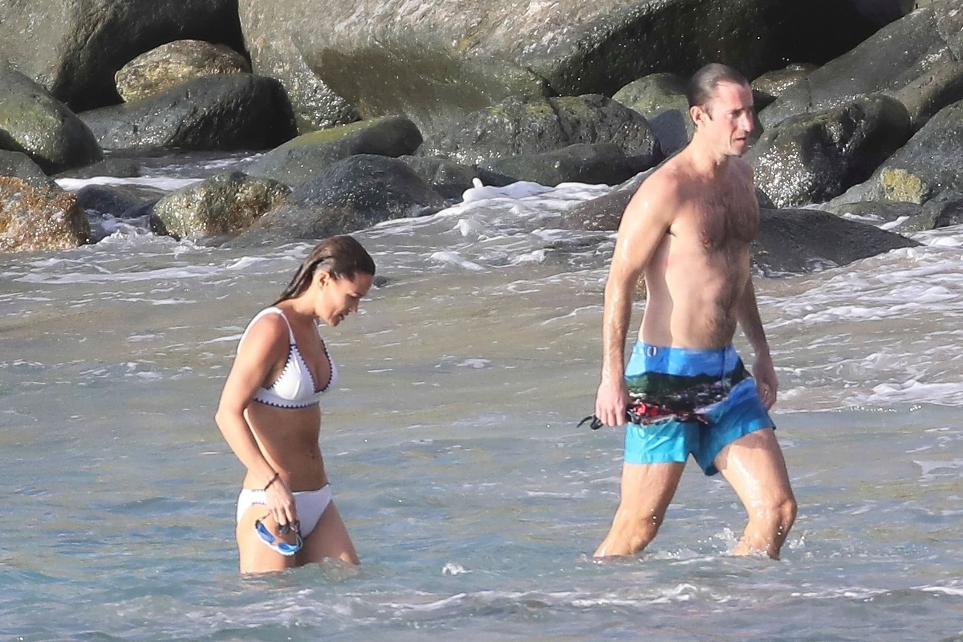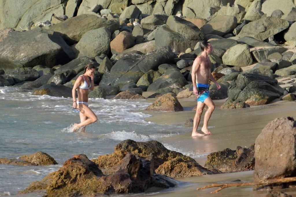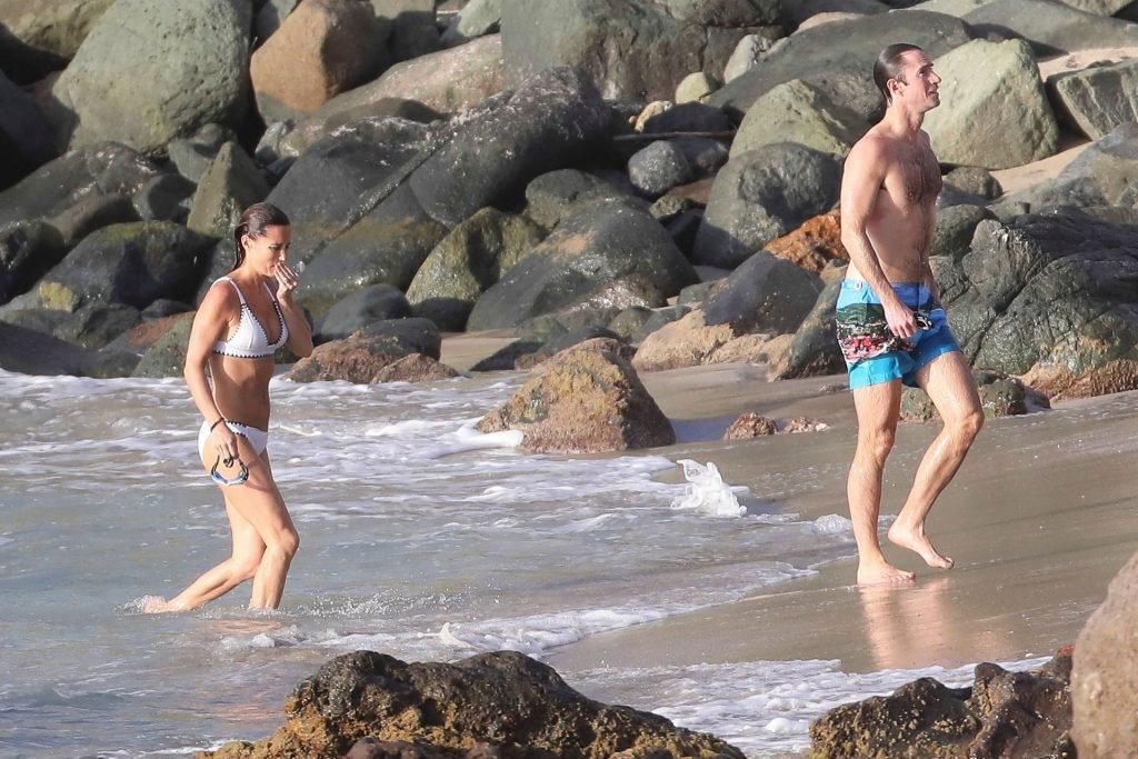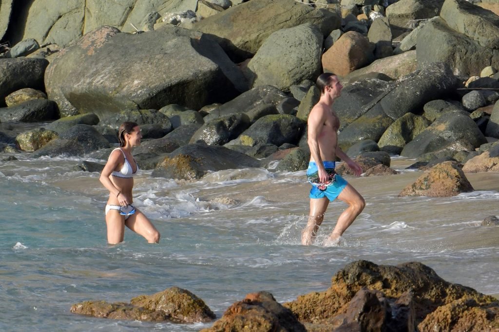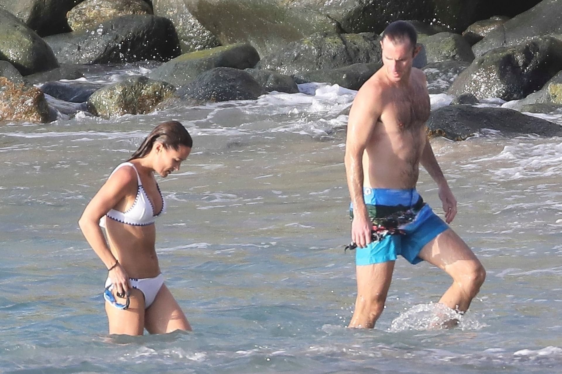 Nova mamãe Pippa Middleton tira um tempo para relaxar com seu marido na ilha do Caribe, 01/02/2019. Na foto, ela exibe seu corpo esguio usando um biquíni branco enquanto nada com seu marido.