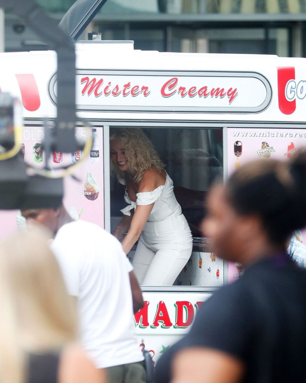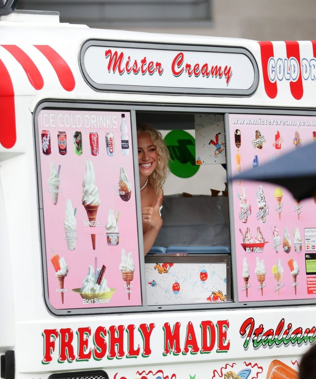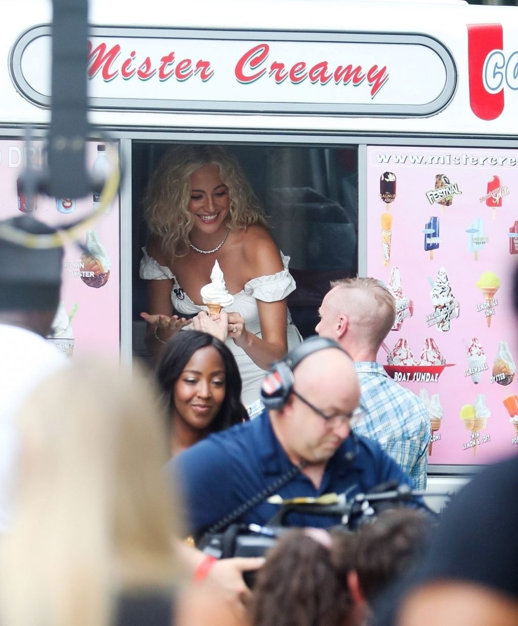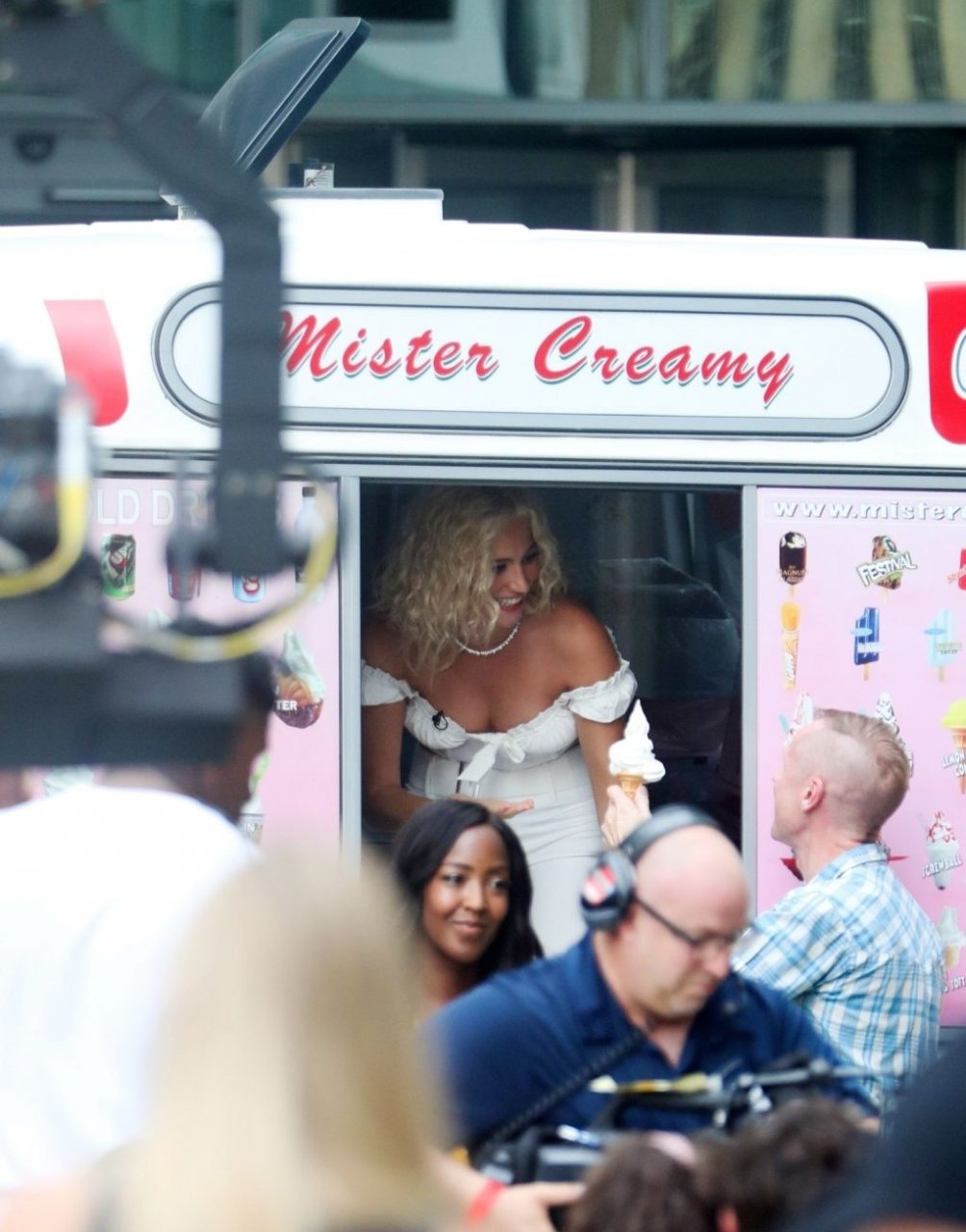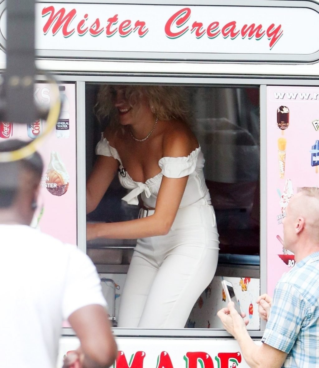 Pixie Lott faz uma aparição muito ousada arriscando um desastre no guarda-roupa enquanto serve sorvete ao vivo no The One Show durante o horário de pico de audiência – Londres, 25/07/2019.