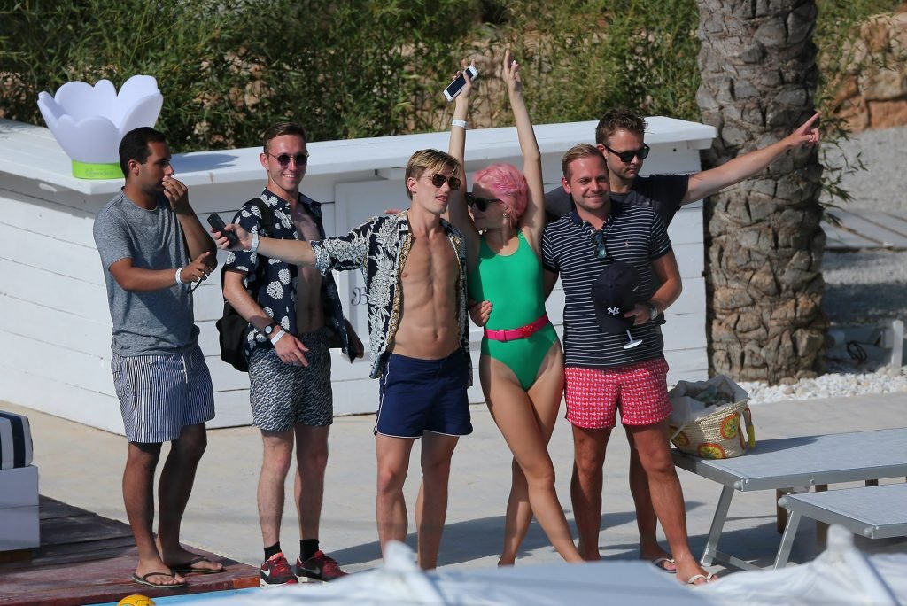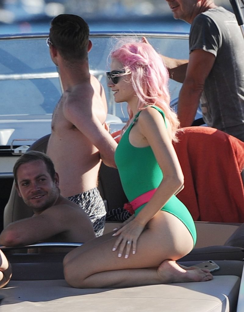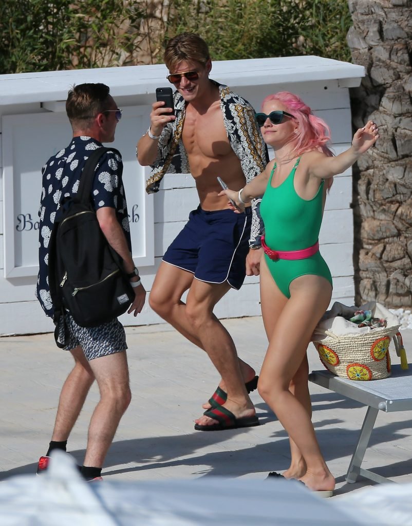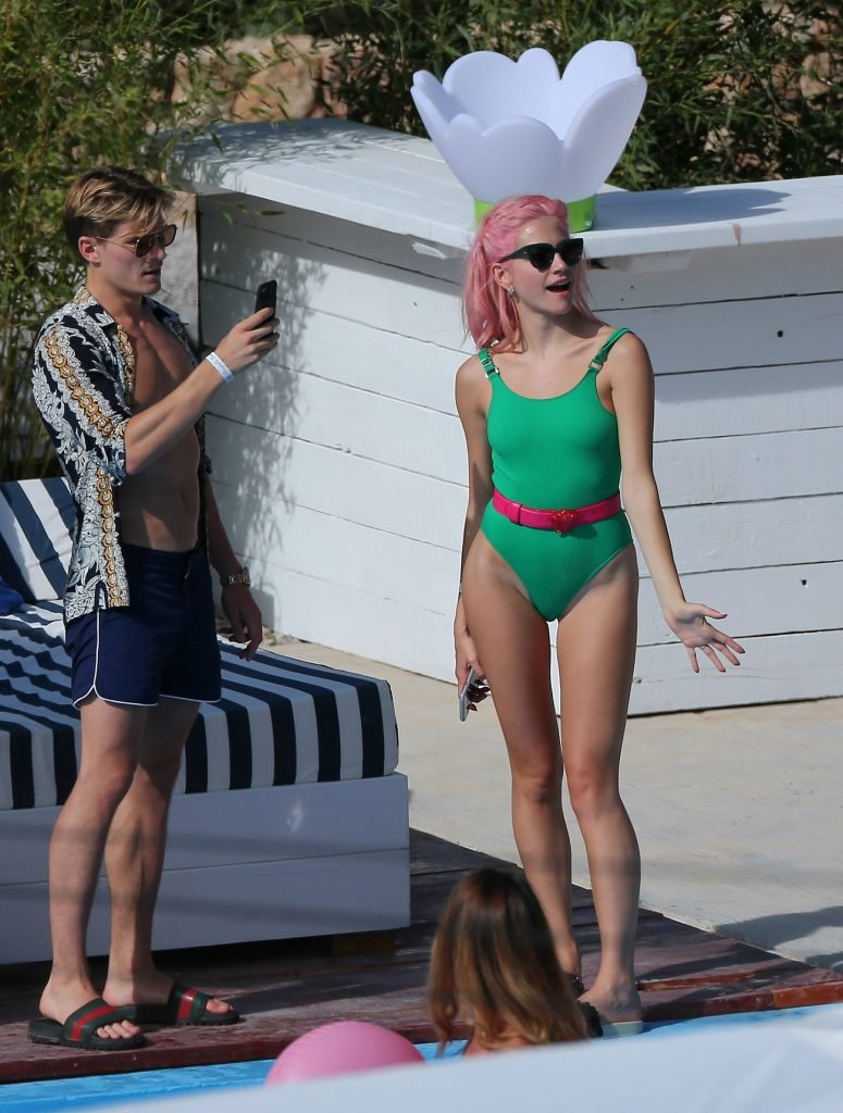 Pixie Lott usa um maiô verde durante férias em Ibiza, 01/07/2017. Pixie Lott é uma cantora/compositora, atriz de Londres. Idade: 26.